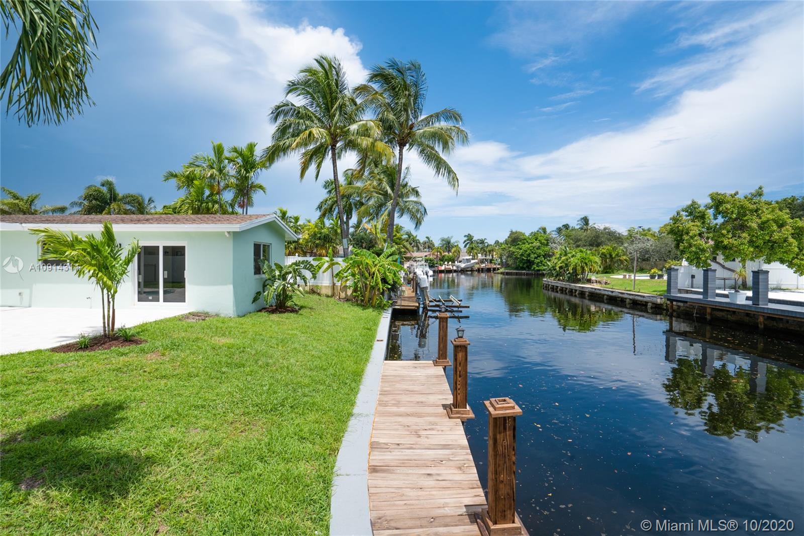 Live on an island! 3/3 completely remodelled split floor plan. New kitchen with stainless steel appliances, quartz counter tops. New baths, new A/C, new electrical, brand new pavers in the driveway and back deck area, new dock with custom lighting throughout. Spacious master bedroom and bath. Impact windows and doors. Lots of natural light. Freshly painted. Unrestricted ocean access. Federal highway bridge only minutes away. Survey available.