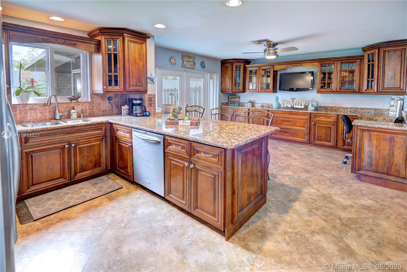 SPECTACULAR 3 BED 2.5 BATH 2 CAR GARAGE FAMILY HOME IN SOUGHT AFTER SCARBOROUGH IN DAVIE, FL. IMPECCABLY AND COMPLETELY UPGRADED WITH EXTENDED KITCHEN CABINETRY, GRANITE CTR TOPS, STAINLESS STEEL APPL, SNACK COUNTER BAR/SEATING, NEUTRAL FRESHLY TOUCH-UP INTERIOR/EXTERIOR PAINT, HIGH IMPACT WINDOWS THROUGHOUT EXCEPT FRONT DOOR/FRENCH DOORS (PANELS), REMODELED BATHROOMS, LARGE MASTER, WAINSCOTING IN BEDROOM, CROWN MOLDING, WOOD FLOORING STAIRS AND UPSTAIRS, COMPLETE PRIVACY IN BACKYARD WITH NO REAR NEIGHBORS, SHADOWBOX FENCING, ENCLOSED SCREENED IN/COVERED PATIO AREA, SPACIOUS YARD, AWESOME STORAGE SHED INCLUDED. IDEALLY LOCATED IN HEART OF DAVIE SUPER CLOSE TO 595 ACCESS, GREAT SHOPPING AND GREAT SCHOOLS.