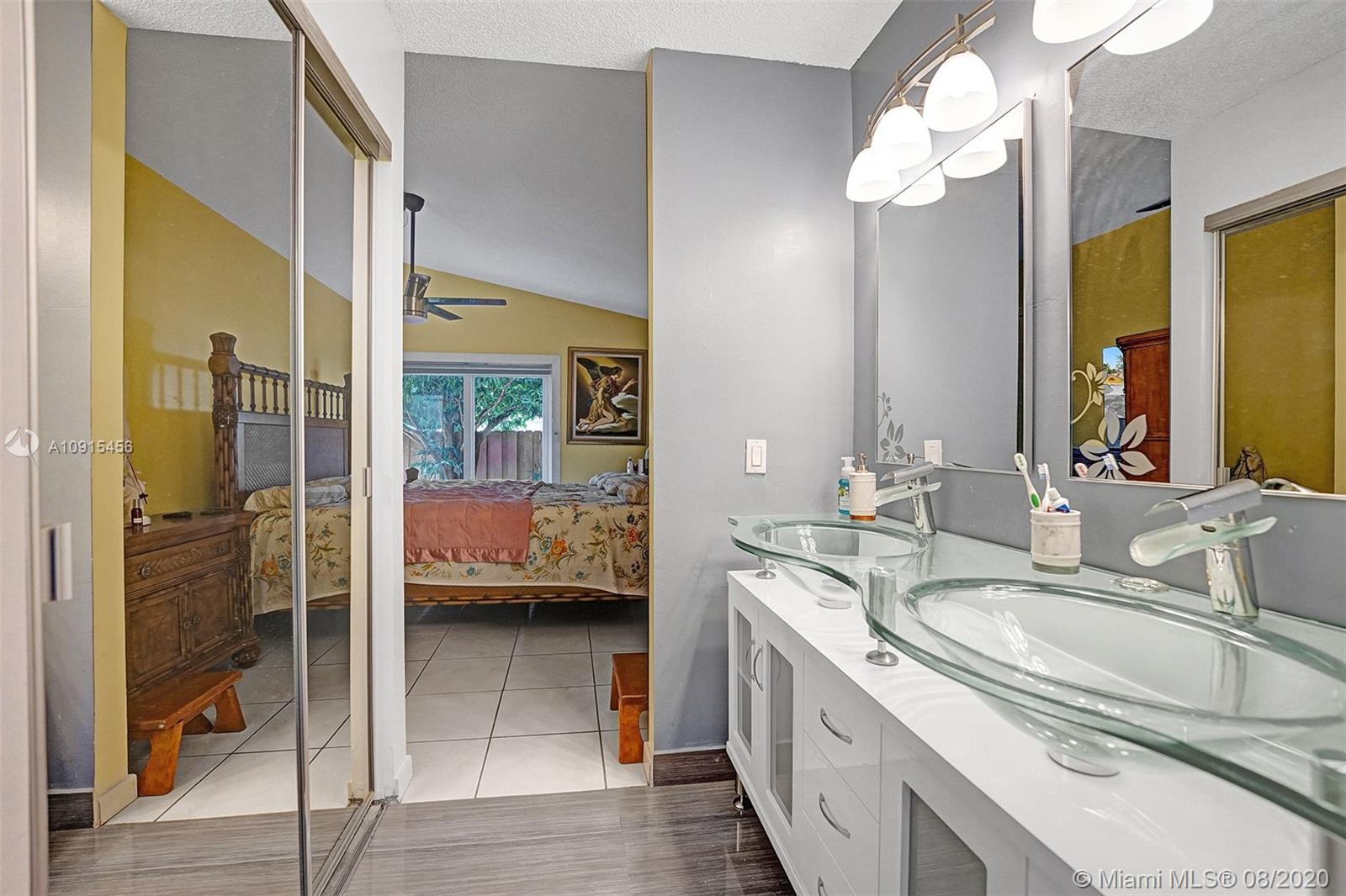 Patio home in Ivanhoe, Davie, rarely available move in ready 2/2. Perfect for retirees that still want a backyard or a couple's first home. Beautiful sitting area in the entrance, Brick pavers in the back patio where you can barbecue. Upgraded kitchen with stainless steel appliances, beautiful quartz and backsplash. Split level bedrooms with double sinks in master bathroom and upgraded tiles. Impact windows throughout the house. Excellent neighborhood. Community pool. Low HOA.