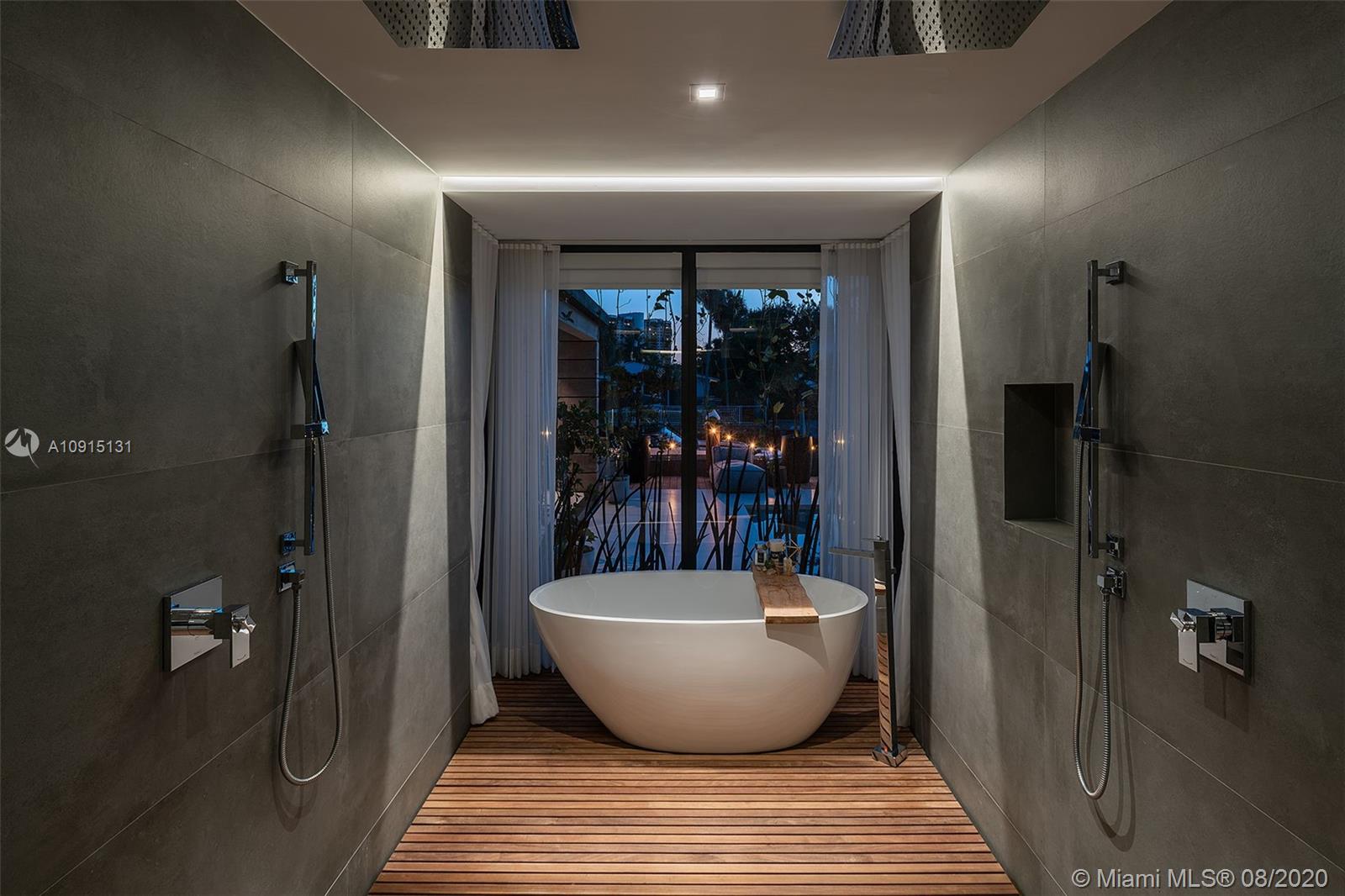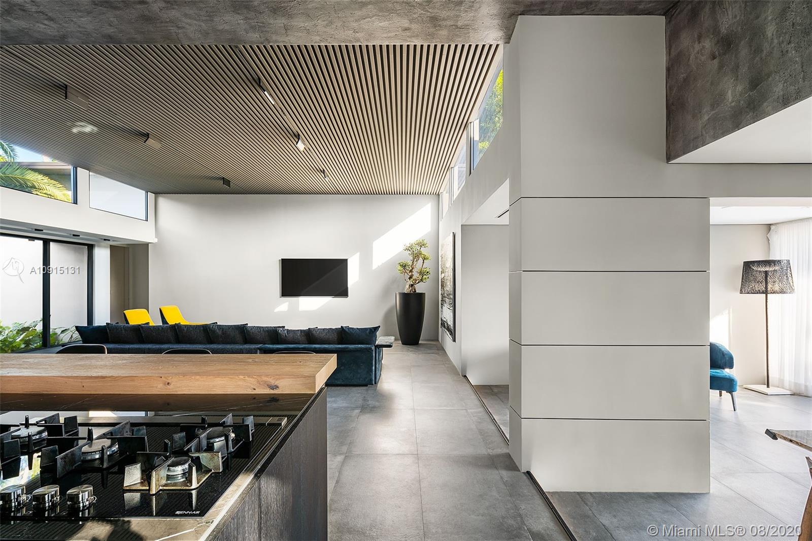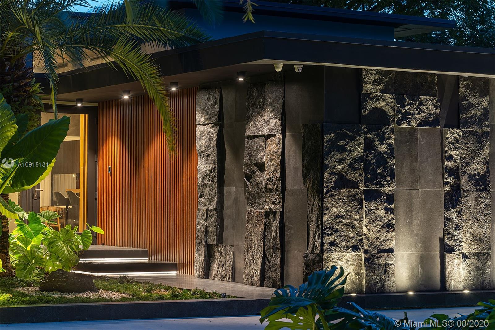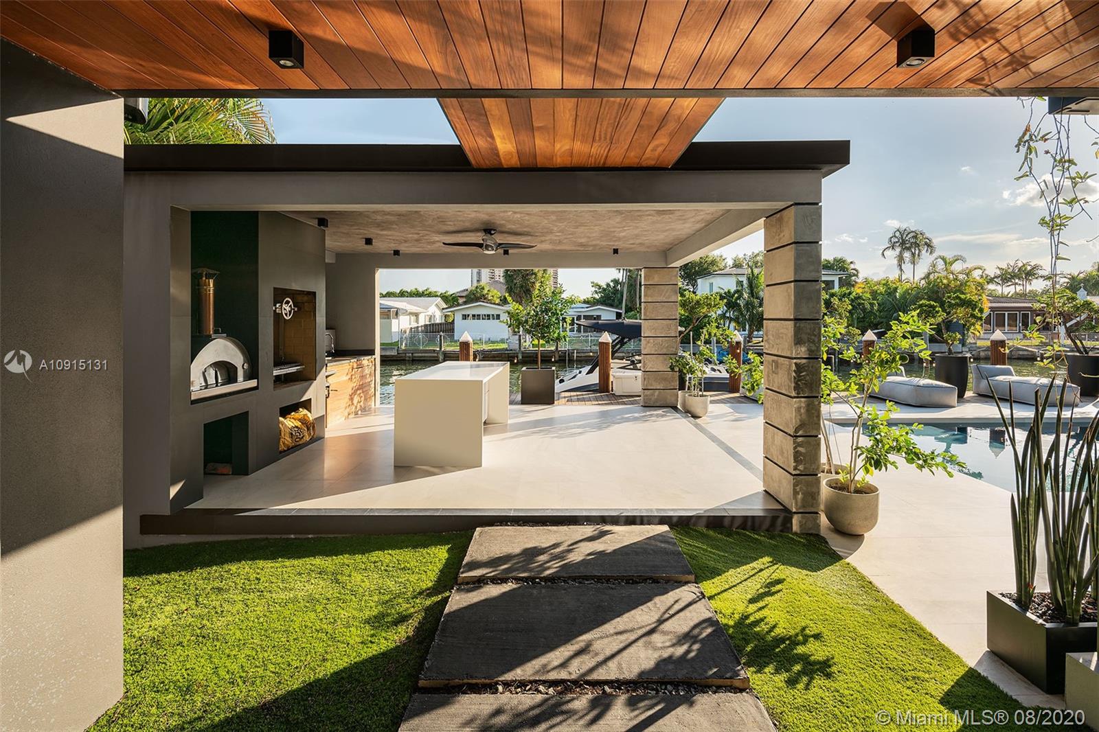 Black is always the new black! Above average, impeccable finishes, powerful vibes! Find yourself in the private community of San Souci Estates, couple of minutes away from Bal Harbour. Delightful split floor plan for this waterfront one-story home with 12 ft. ceilings. Completely renovated in 2018, this home offers new Italian custom-made kitchen with gas appliances, costume made closets, salt water pool, new roof, pluming, electrical, mosquito system, and unique use of stone and microcement throughout. Backyard easily enjoyable and ready to entertain with pizza oven, Chinese wok, commercial BBQ grill, and outside kitchen. Enjoy the best sunsets Miami has to offer. 75 ft on the water with brand new dock. Words are not enough to describe this STATEMENT! NO HOA!