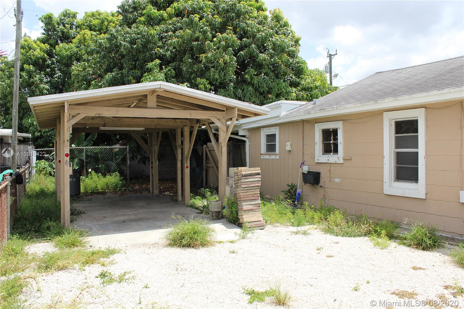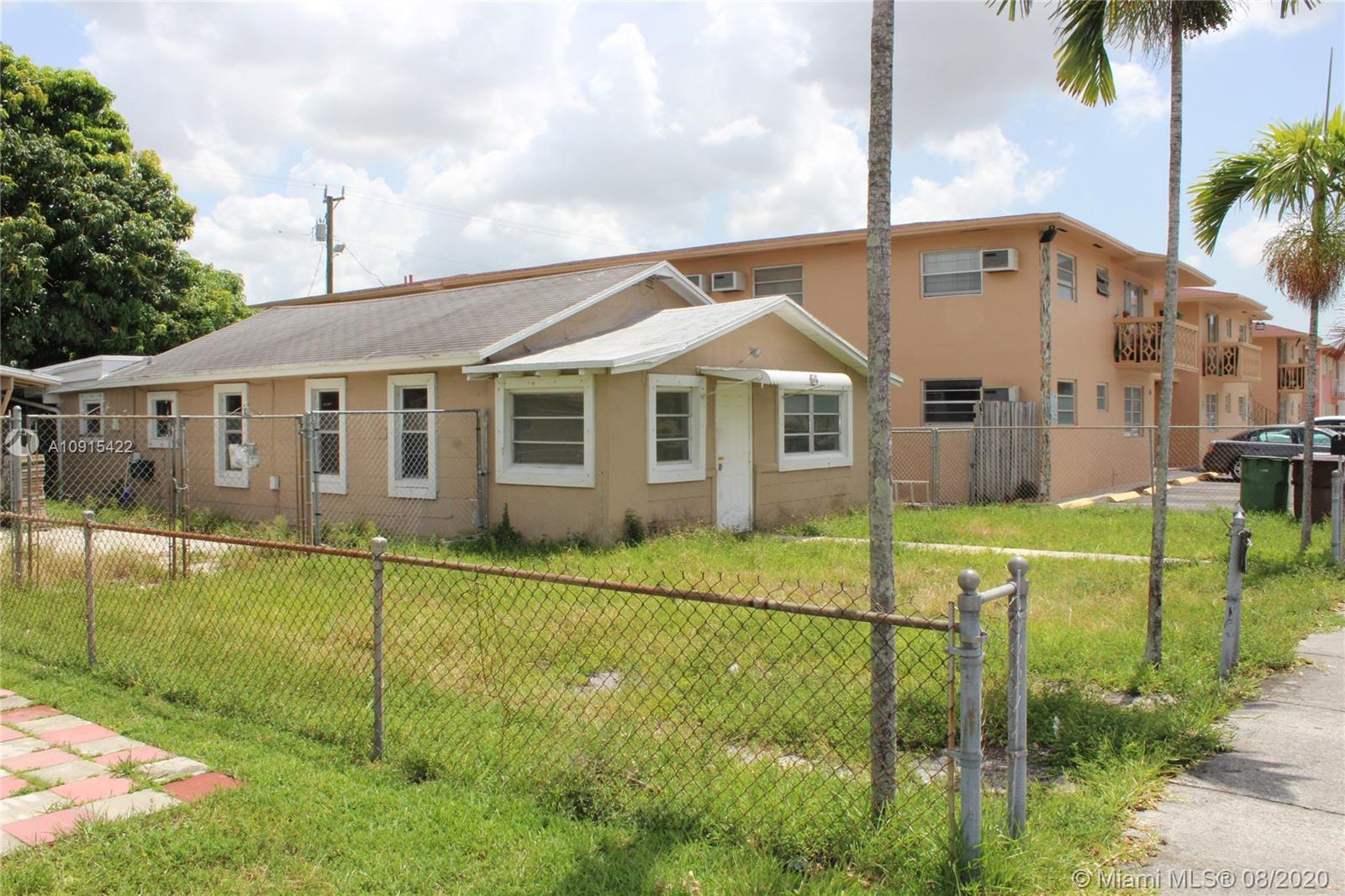This frame house has 3 bedrooms, 2 baths, central air, circuit breakers, a detached carport, and separate storage building at the rear of the lot and is being sod "AS IS". The value in this property is in the lot. The Hialeah Planning & Zoning Department has advised that up to 4 units can be built with the current zoning on this lot.