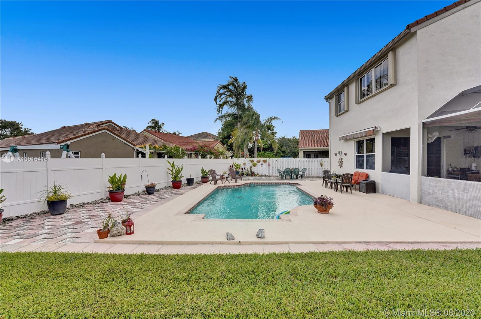COMFORTABLE home with EXTRA OUTDOOR SPACE for play & entertaining. AMAZING home sitting on UNIQUE & SIZABLE lot with SPARKLING POOL & ROOM TO SPARE! BEAUTIFUL INTERIOR, functional and WELL PLANNED LAYOUT, foyer staircase, AMPLE SIZED BEDROOMS, excellent storage, separate living, dining & family rooms. Featuring ALL NEW FLOORING, UPDATED KITCHEN with breakfast bar, stylish stone counters & stainless appliances. SPACIOUS OWNER'S SUITE with large walk-in closet, ensuite bathroom with soaking tub and separate stall shower. The exterior boasts a SCREENED & COVERED PATIO for "al-fresco" dining and LOTS OF PRIVACY with a TOTALLY FENCED BACK YARD. Best location, WALKING DISTANCE to community pool, EASY ACCESS to Eagle Point park & Elementary school, inside bus service to middle & high school