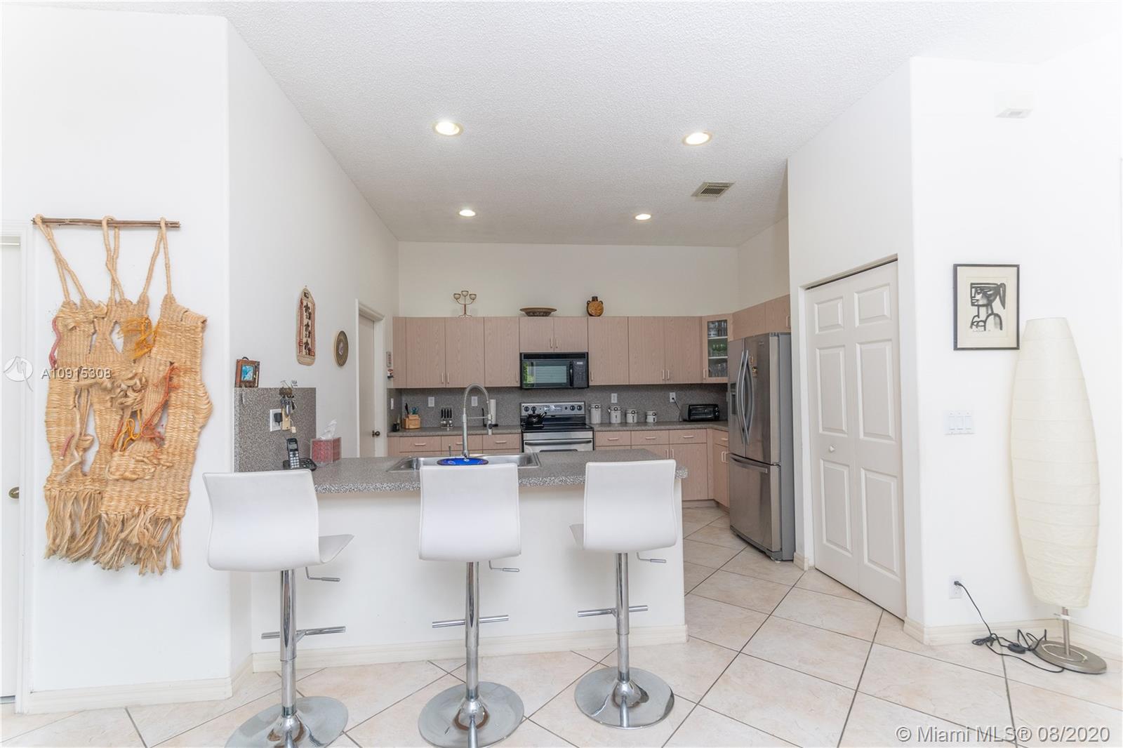 Mapleridge community in Hollywood. 3BD + LOFT (can me turned into an office or room)/2.5BATH/ 2 car garage single family home with over 2,000 sqft under AC. Home is on a corner lot. Pride of ownership. Home is in immaculate condition. Home features: High 20 ft ceilings as soon as you walk in. Tile throughout 1st floor and wooden floors on 2ND. Lots of windows for natural light. Open kitchen with stainless steel appliances. Fenced in backyard that has enough space for a pool or for a big family get together. Guest parking is adjacent to backyard with access. New water heater. Separate laundry room. Community features: Gated w/ security guard. Pool and kids’ playground. Home is only minutes away from the Hard rock casino, grocery stores and restaurants. Low HOA at only $159.00.