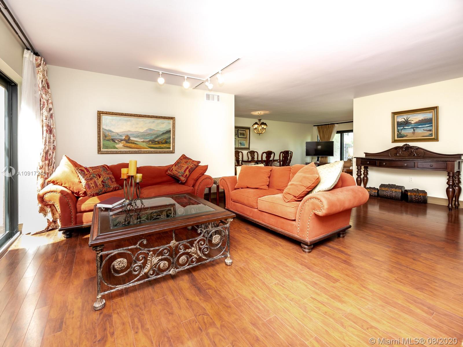 Stunning Golfcourse view! Walk into your new home thru the new decorative aluminum entry gate...Into beautiful travertine courtyard & lighted landscaped area plus a built in Fresco grill!Hurricane impact windows and doors including accordians!!The roof is poured concrete,there is a 2 car garage! Chamberlain garage remotes will open from your cell phone & turn on security lights!! Interior floors are engineered wood & kitchen is the tile wood look...Kitchen updated with wood cabinets,granite counters&backsplash, stainless appliances and bonus matching bakers rack! Both bathrooms highly upgraded featuring travertine,marble,and Graff and Groehe fixtures! Zoned A/C's with Germicidal UV lights!Custom window treatments,smooth ceilings,(no popcorn!)Solid wood doors thru out and new bifold doors.