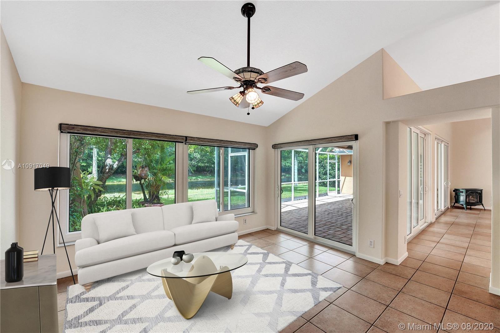 Fabulous opportunity @ highly sought-after "Laguna Springs 2" Updated 1 level waterfront home, unique architectural details, expansive living areas with high ceilings, picture windows with motorized blinds & tall sliding patio doors, calming views of waterfront & greenery, true S Florida indoor/outdoor lifestyle. Updated large kitchen, updated master bath with soaking tub & separate stall shower. Large screened & very private patio overlooking a peaceful setting. Newly installed ($40,000+) Impact & energy efficient windows & doors + newer roof, wired for back-up power during black-outs. Located in a small, quaint & centrally located enclave, resort style community pool. Walking distance to Indian Trace Elementary, Tequesta Trace Park facilities, Middle school, shopping & houses of worship.