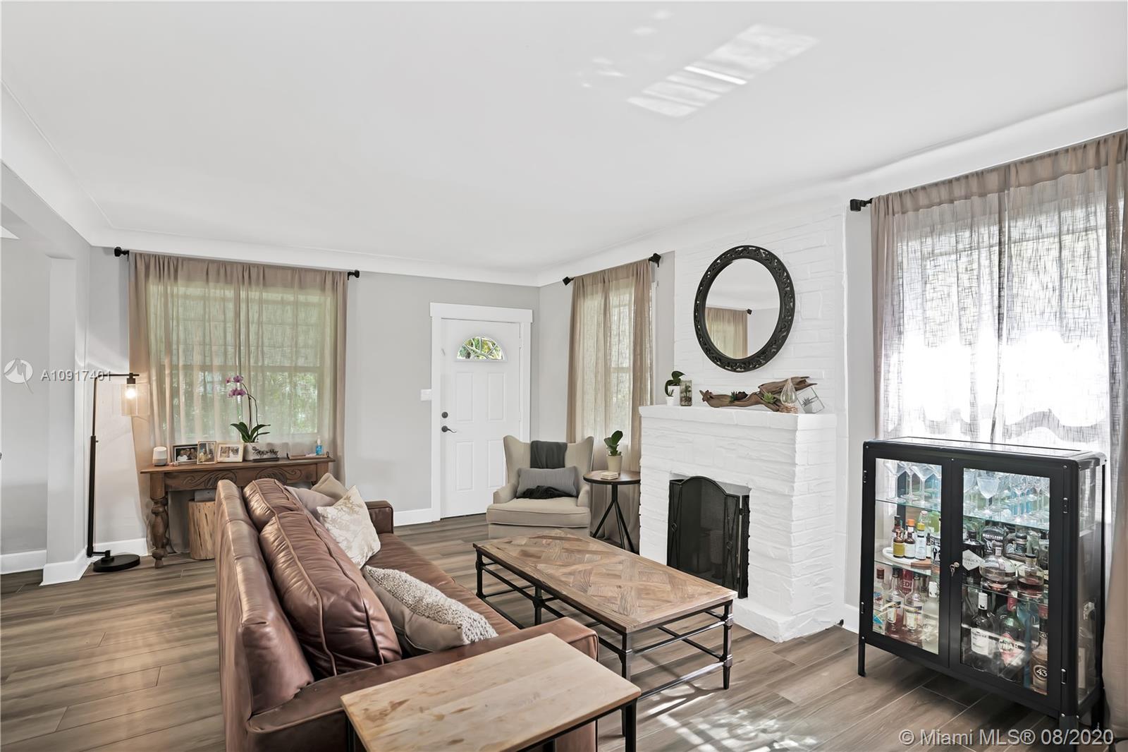 The total interior renovation of this old Florida home was done with style and taste! The open floor plan shows off new ceramic "wood" floors, crown molding, a decorative fireplace, and a spectacular chef's dream kitchen. Anchored by an oversized slate blue island with gleaming white quartz countertop and brass hardware, the kitchen features a 5-burner gas oven, French Door refrigerator/freezer, wine cooler fridge, open shelving, soft close drawers, glass front cabinets, and recessed lighting. The master bedroom features a uniquely designed huge walk-in closet. A/C system from 2016. Tank-less gas water heater. The large newly fenced corner lot is enhanced by a private interlock brick patio by the kitchen door as well as a charming circular patio with fire pit. Gated access to carport.