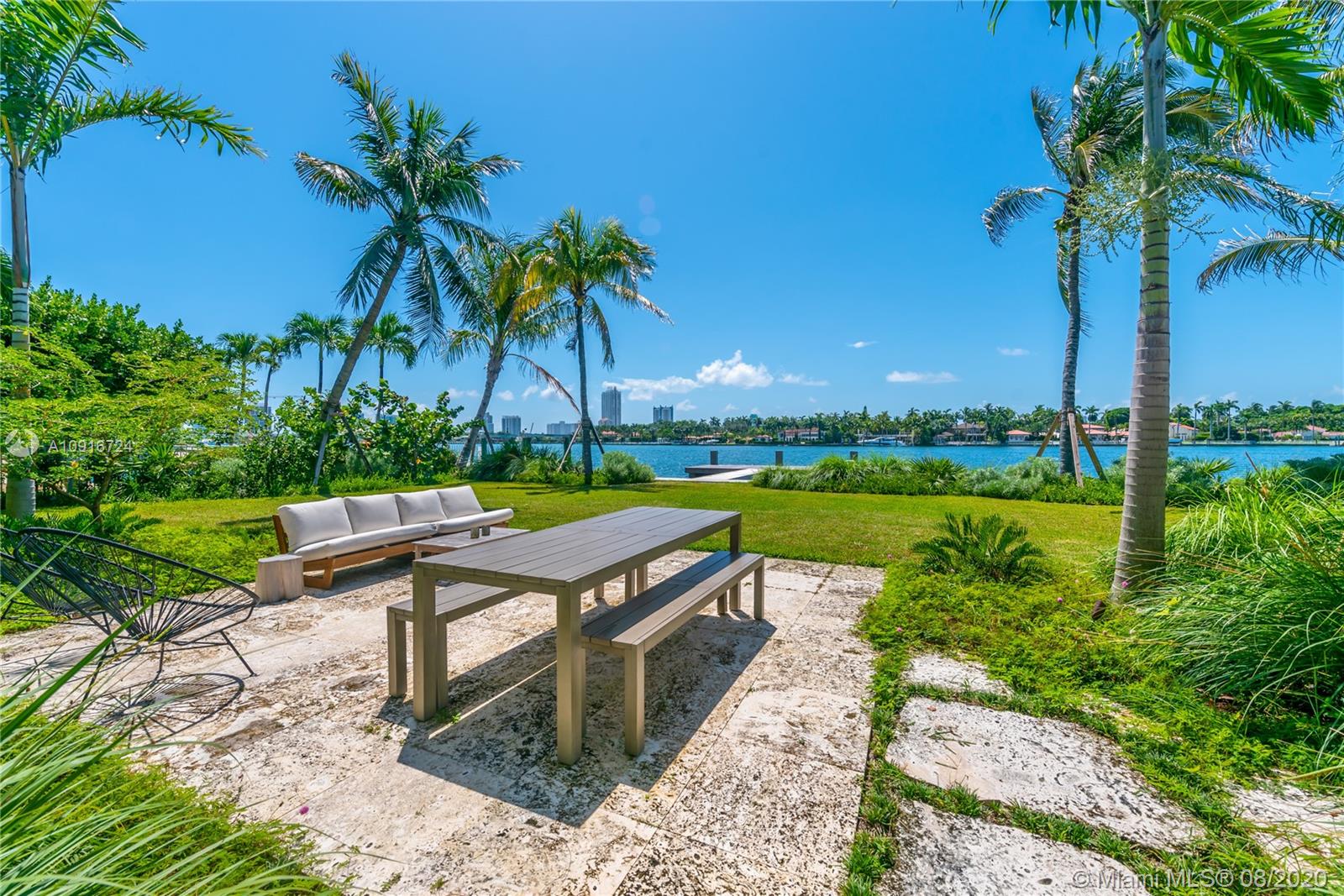 Beautifully renovated to perfection, this mid-century modern gem is located on the wide bay in Miami Beach. From the moment you step inside, you feel serenity from the captivating water views to the intimate setting created by lush landscaping. The house has been modernized while maintaining its architectural details and original era charm. SE exposure adds an abundance of natural light. Features include Terrazzo and new white oak floors, telescope doors in living room and master, Miele appliances, honed Statuary marble kitchen counters, spa-like bathrooms, impact windows, 85ft water frontage with a brand new seawall and Ipe dock and plenty of room for a pool. Open concept living areas and covered patio great for entertaining. One car garage. 2,339/SF per architect.