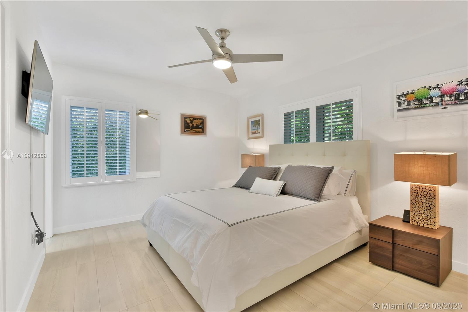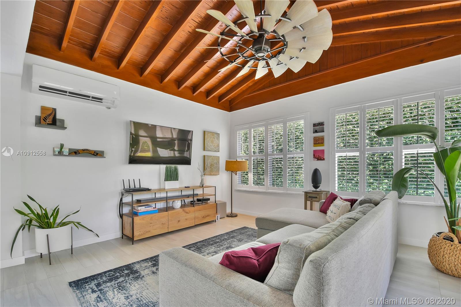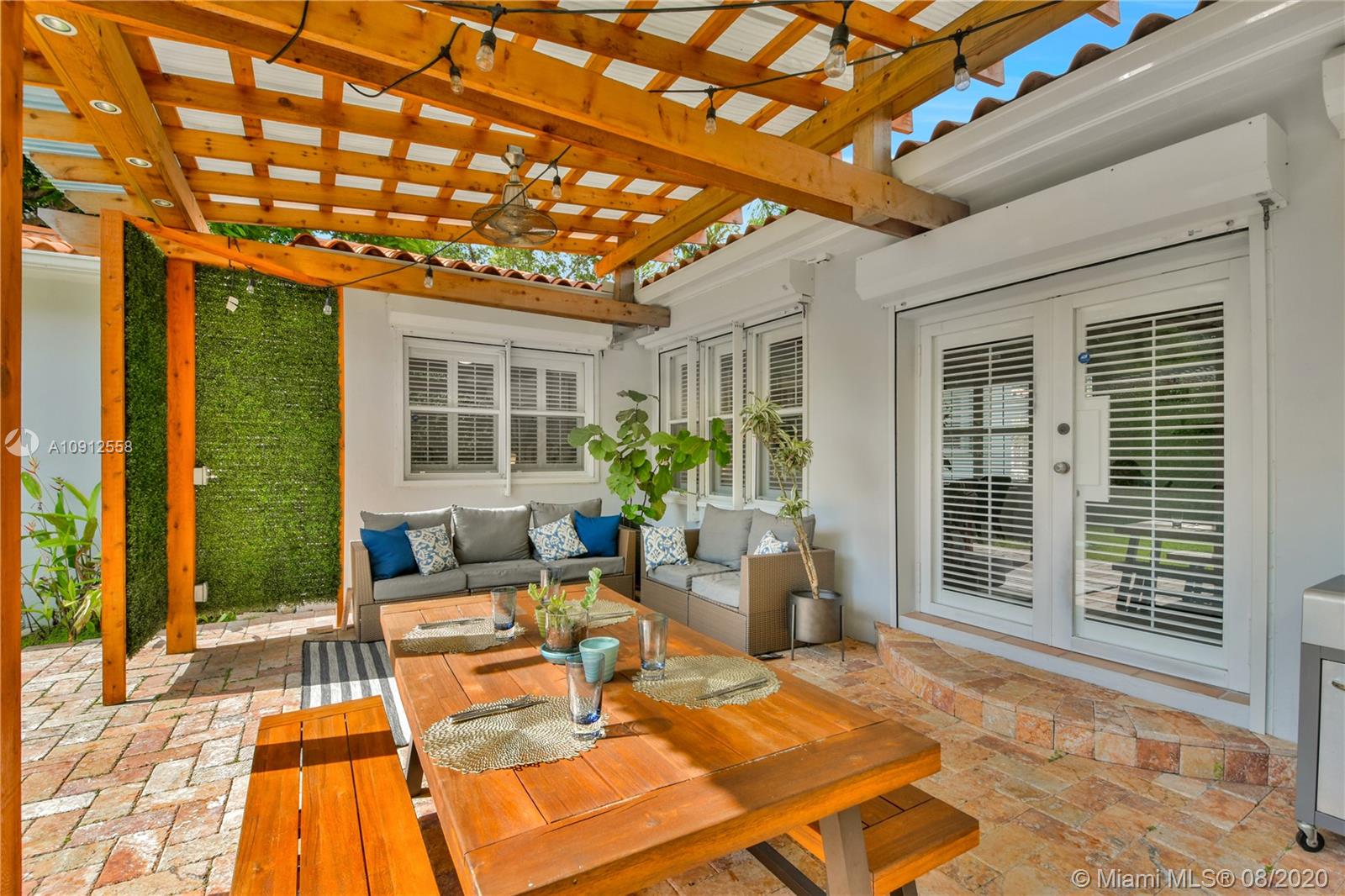 This elegant and lovely Mediterranean/Modern home sits on a quiet dead end tree-lined street in the heart of Coral Gables. The seamless spacious floor plan is truly amazing, with lots of natural bright light shinning throughout. Exquisitely remolded with Italian porcelain tile across all rooms with a state-of-the-art kitchen, which includes top of the line Bosch oven, microwave, cook-top, and downdraft. White cabinetry and a 12-ft quartz island with a waterfall finish, including a stainless steel farmhouse sink, while the kitchen sidebar includes a wine fridge. Enjoy your private and delightful oasis of tropical landscaping for relaxing and entertaining under your beautiful natural cedar wood pergola. Close to Miracle Mile, which is filled with world class restaurants and art galleries.
