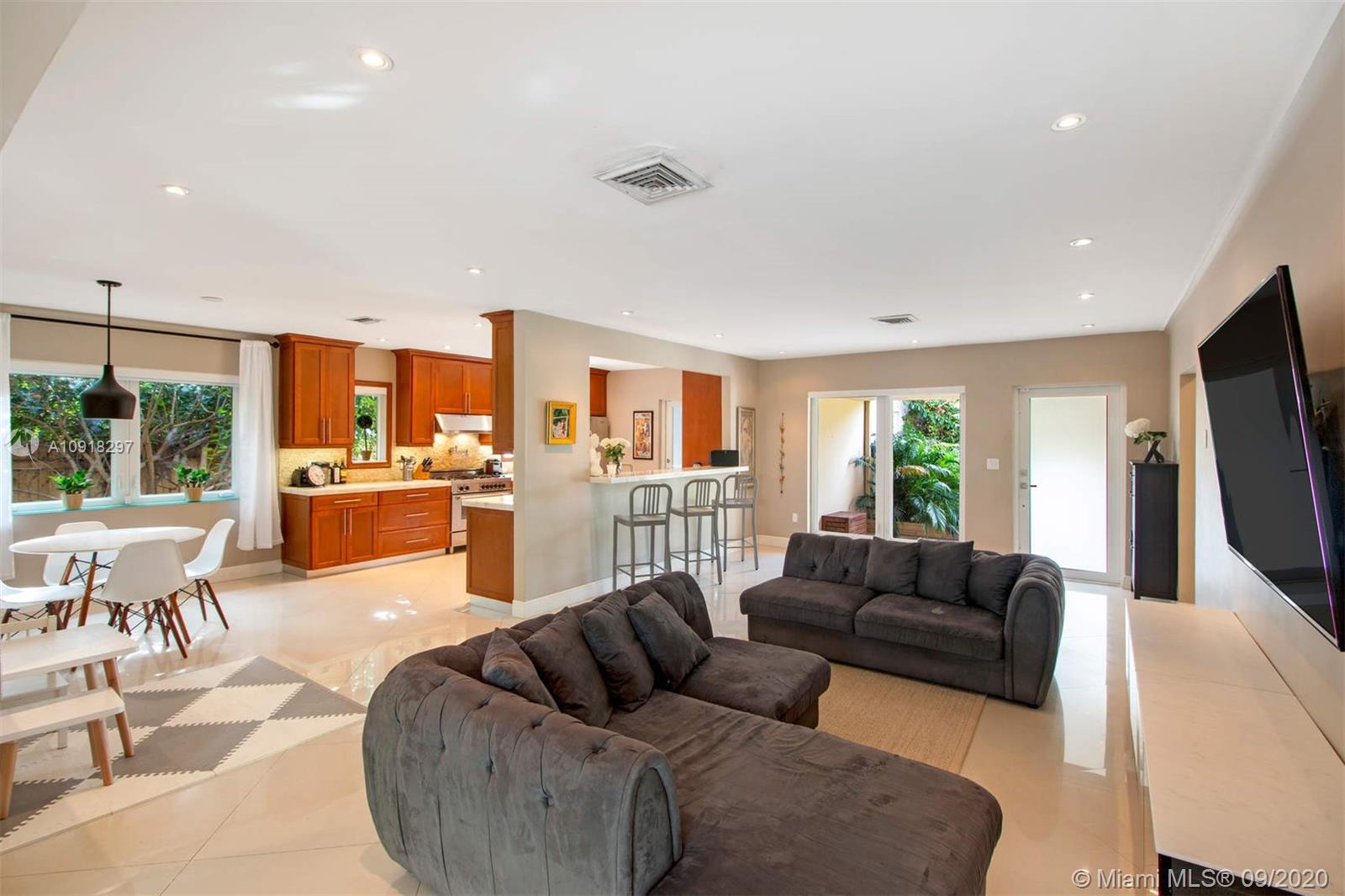 Location! Location! Location! WALKABILITY! Walk to everything! OPEN FLOOR PLAN! Custom professional grade kitchen w/ 40 inch/oversized upper cabinets & custom counters, breakfast bar, eat-in area & formal dining area also that opens to amazing, private back yard & pool. master suite + bath opens to the back yard also! 1 car garage/storage or space to expand.recently updated flooring.back yard area.covered front porch & back yard relaxing areas too! impact windows.Custom pool and patio areas with privacy landscaping.side area off garage offers kayak storage also.Walk to shops, cafes, restaurants of Miami Beach Normandy Isle....bike to the beach, kayak launch area is across the street at Rue Notre Dame.*check video link for video tour*