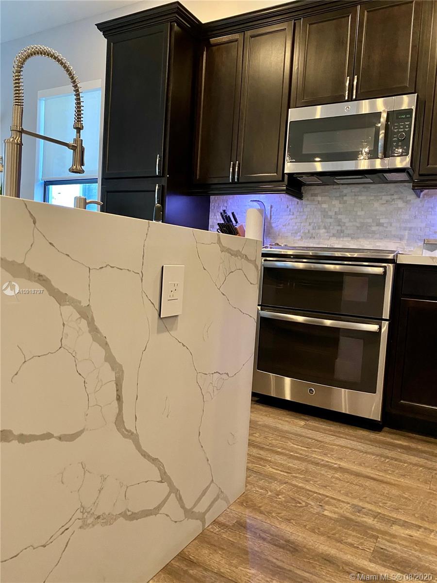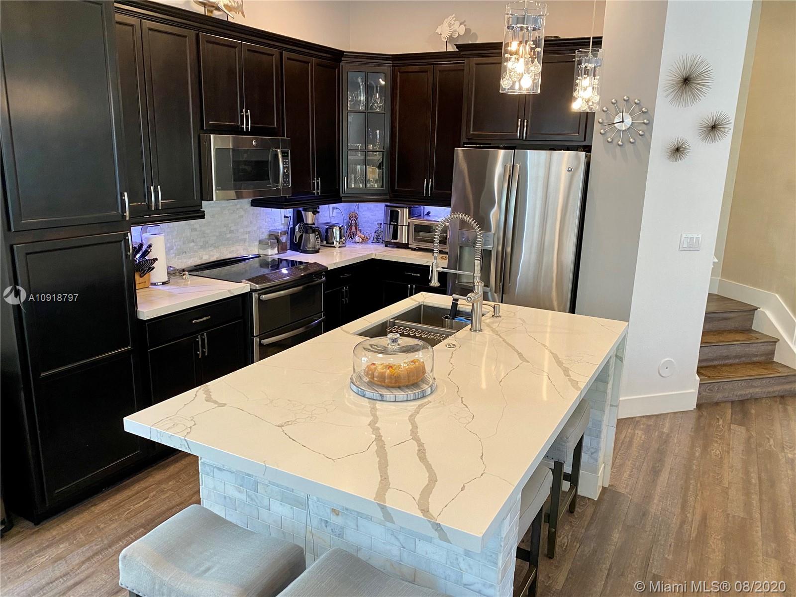 Move in ready elegant and unique home in Bonterra.This 2,609 Sq Ft.home has 3-bedroom, 2 1/2 bathrooms, a 2-car garage fully equipped with elegant epoxy flooring and 2 ceiling racks for a convenient and functional space. This open concept home has elegant flooring in the entire house, a fabulous kitchen with calacatta quartz countertops, top of the line stainless steel appliances, carrara marble showers, upgraded kohler faucets, toilets and bathroom accessories, designer class bathroom vanities, beautiful and modern upgraded light fixtures and fans, a covered terrace, a beautiful fenced garden with pet friendly artificial turf, front load washer/dryer, modern windows treatments (2 are motorized), SmartHome kit included and more. Do not miss the opportunity to own a home ready to move in.