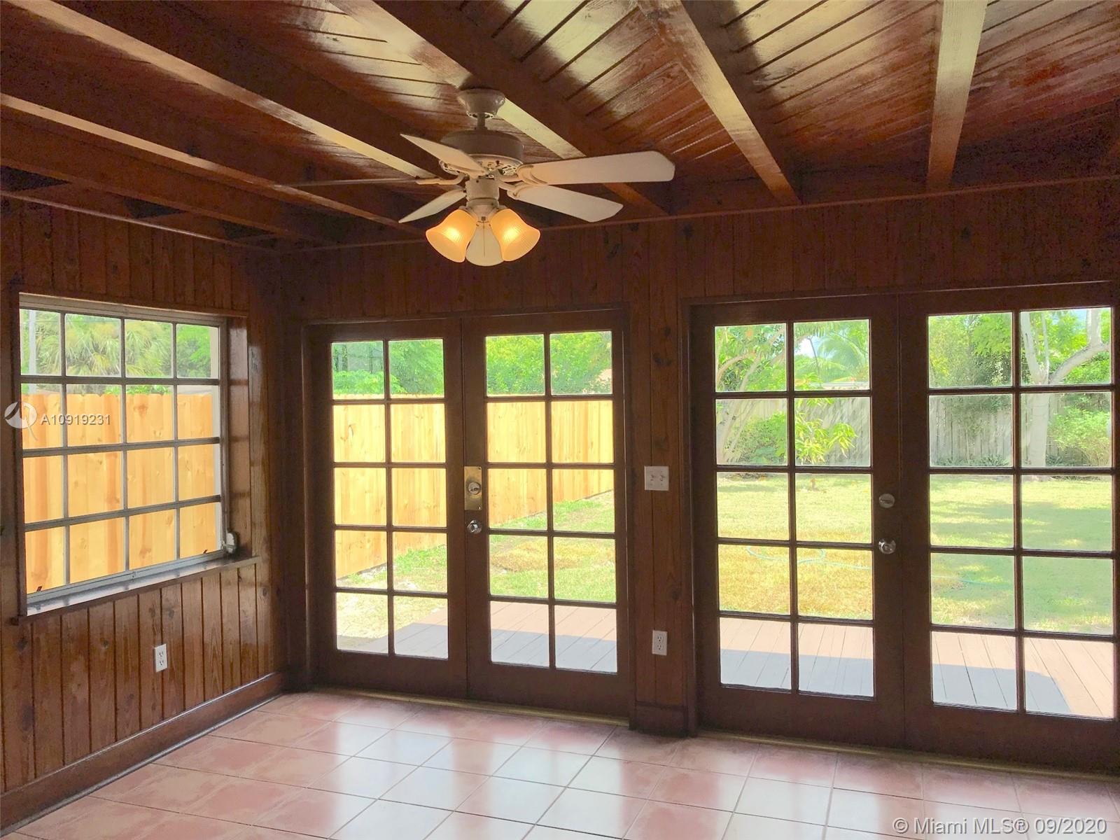 Move-in condition 3/2 + DEN, Open Wood & Granite kitchen . . . Cozy knotty wood paneled family room with 4 French doors overlooking deck & big fenced back yard. Elevated lot, high ground level gives home a unique breeze. New Roof. Storage shed. Garage was converted with permit . . . Large median strip street with plenty of entertaining parking . . . Super Location . . About 1.5 miles to New Costco, New Publix, Whole Foods, Target, Home/Office Depot’s, Panera, Starbucks, Ross, Barry U. & so much more . . . SEE YOUTUBE VIDEO link in broker remarks