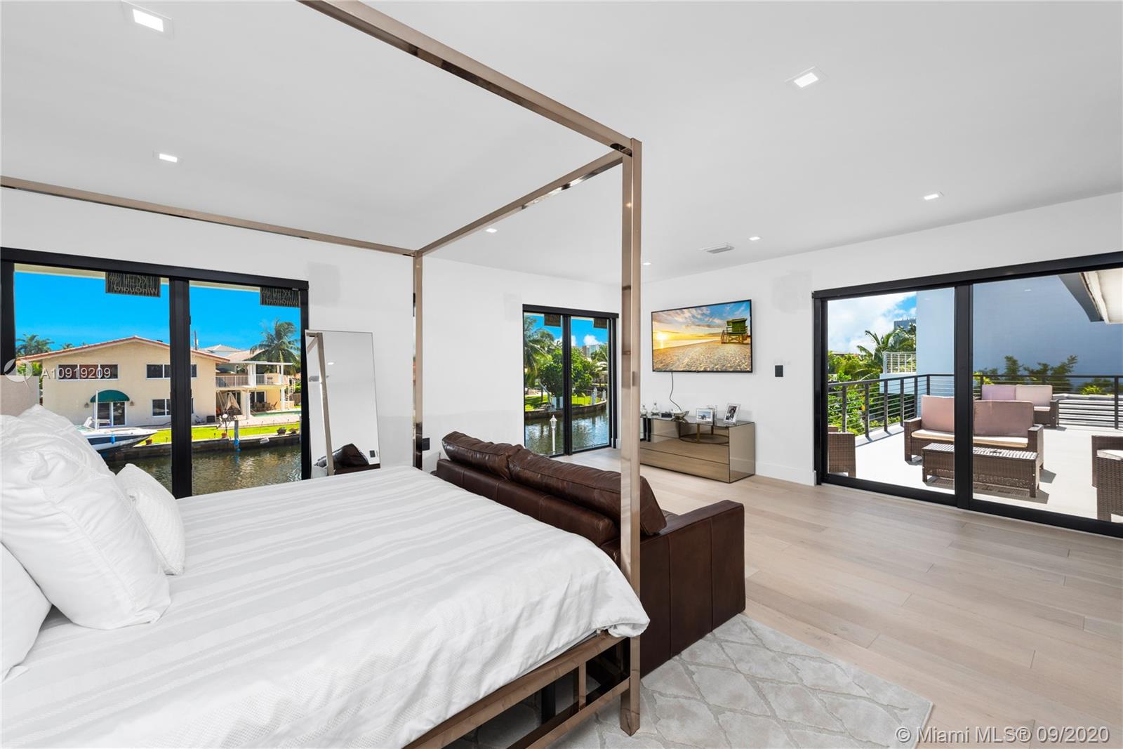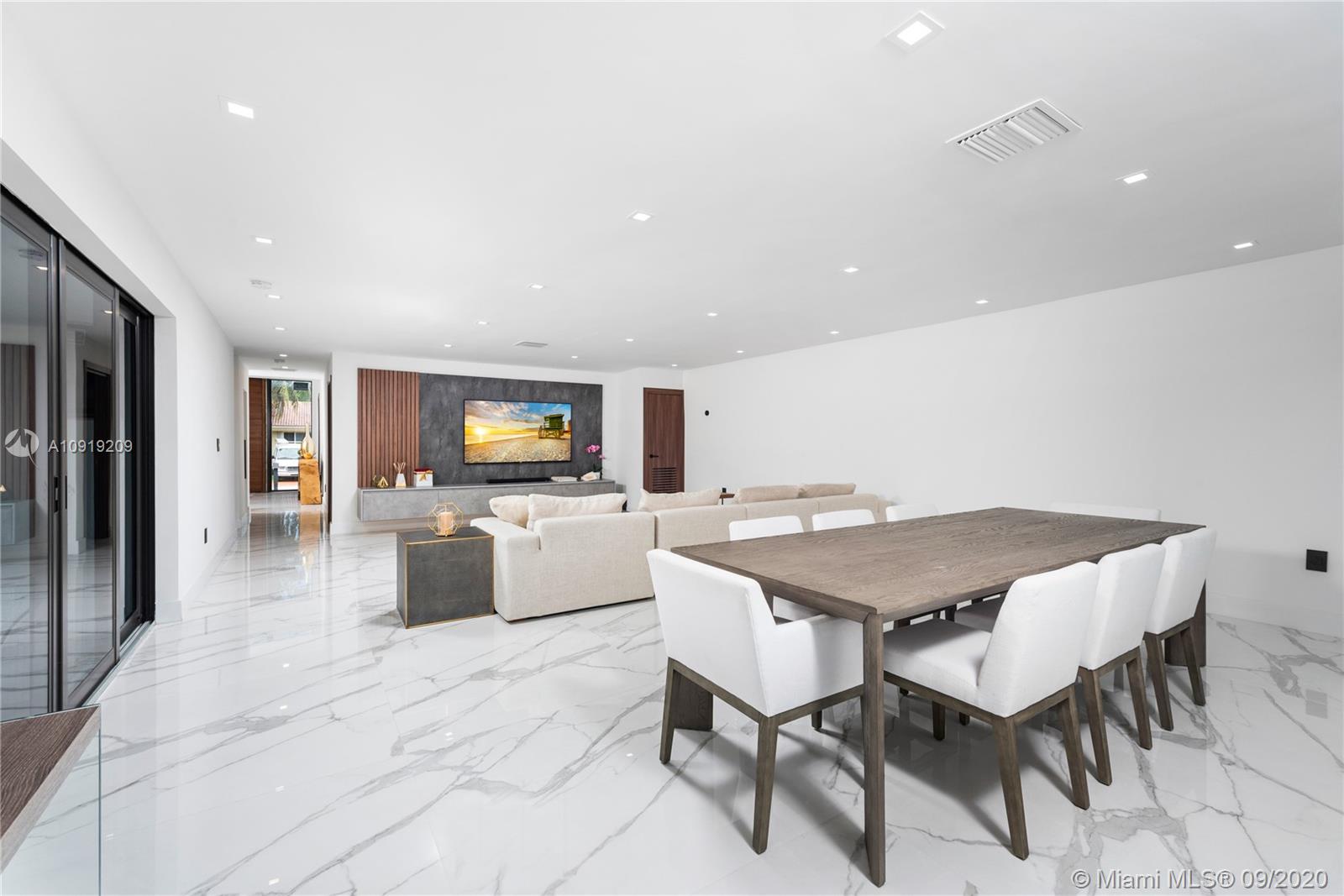 This fully remodeled, 5,650 sq ft home is situated on an oversized lot with one of the best views and more than 90 ft of water prime frontage in the heart of Eastern Shores - boasting 6 bedrooms, 7 bathrooms, a gym, office, movie theater, staff room and 2 car garage. The home has been renovated from the studs and done to the nines with no expense spared, this move-in ready home is filled with brand new AC units, new concrete tile roof, PGT hurricane impact windows, brand new 35 x 15 pool with brand new jacuzzi and energy efficient equipment. Interior finishes such as custom 48 x 48 Italian floors, a true chef’s imported kitchen equipped with subzero/wolf/Miele appliances and Dekton countertops plus custom features throughout the property make it the perfect turnkey home for a quick move-in