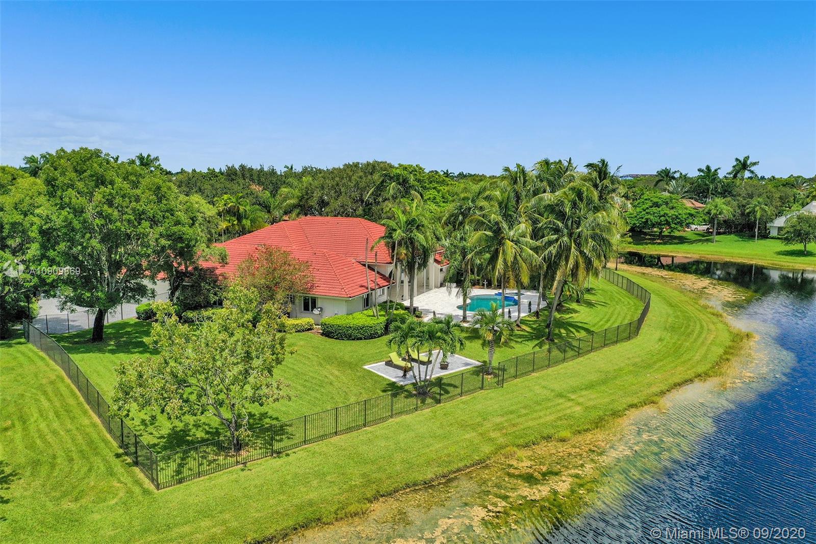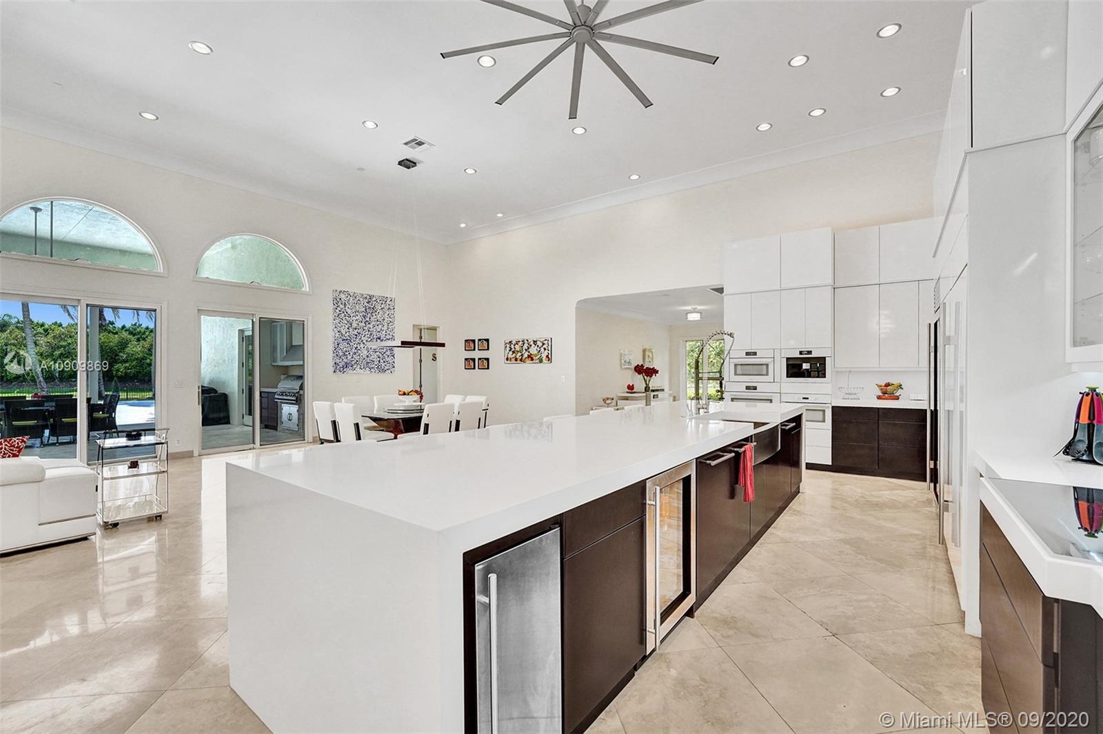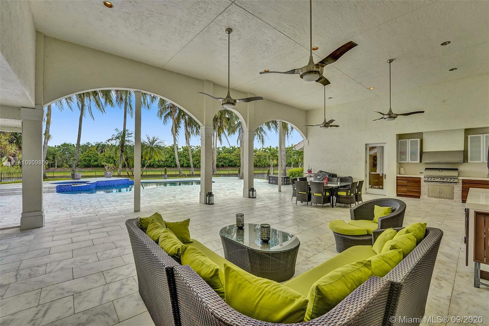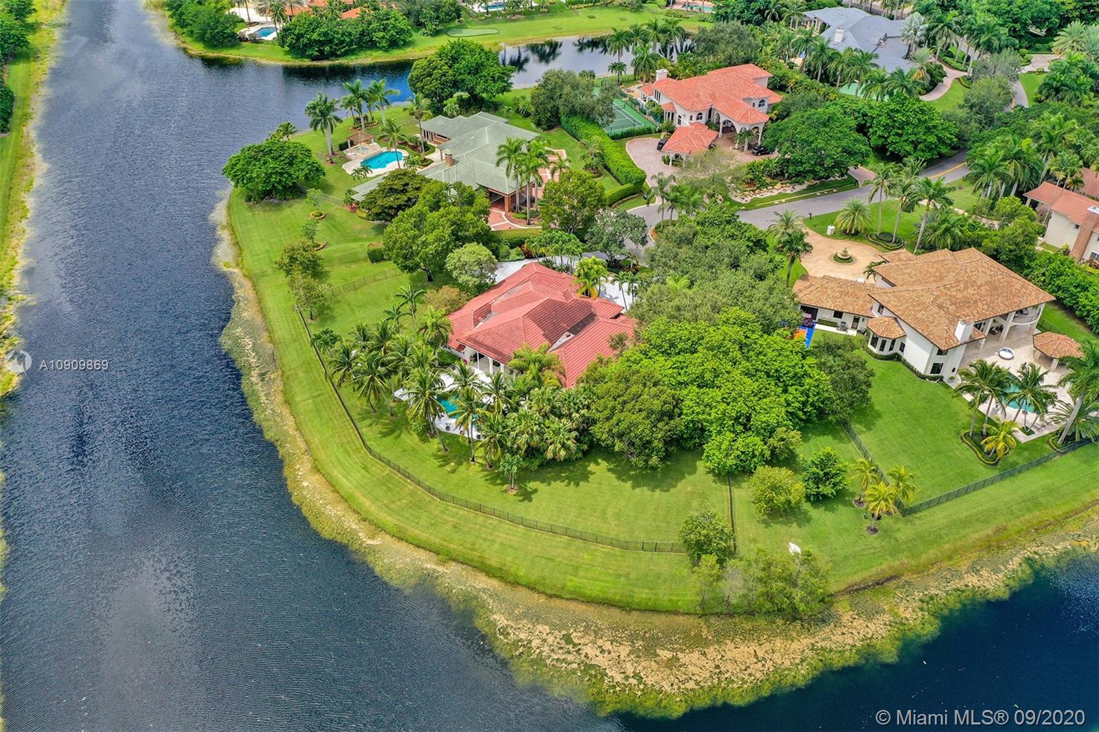 Tucked in the exclusive gated community of Windmill Ranch Estates. Point water lot with wrapping lake views on an oversized 1.25-acre cul de sac lot. 4,981 sq ft under air. Open-concept floor plan with 15' Volume Ceilings, double split bedroom plan. State of the art kitchen recently renovated with custom cabinetry, SubZero refrigerator, beverage center, ice maker & full-size wine cooler. Miele ovens regular oven, steam oven, and combo microwave, 2 Bosch dishwashers. Built-in piped Miele coffee maker. Marble & wood floors flow throughout Expansive covered patio w/summer kitchen. Recently renovated heated salt pool with spa. 6th Bedrm has a private entrance for office/in-laws/nanny quarters.