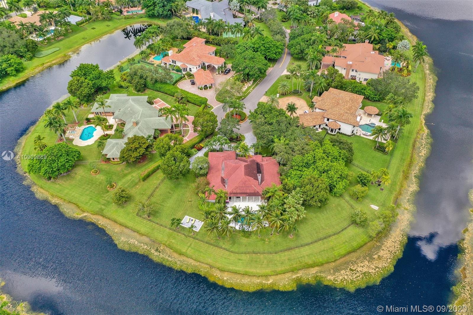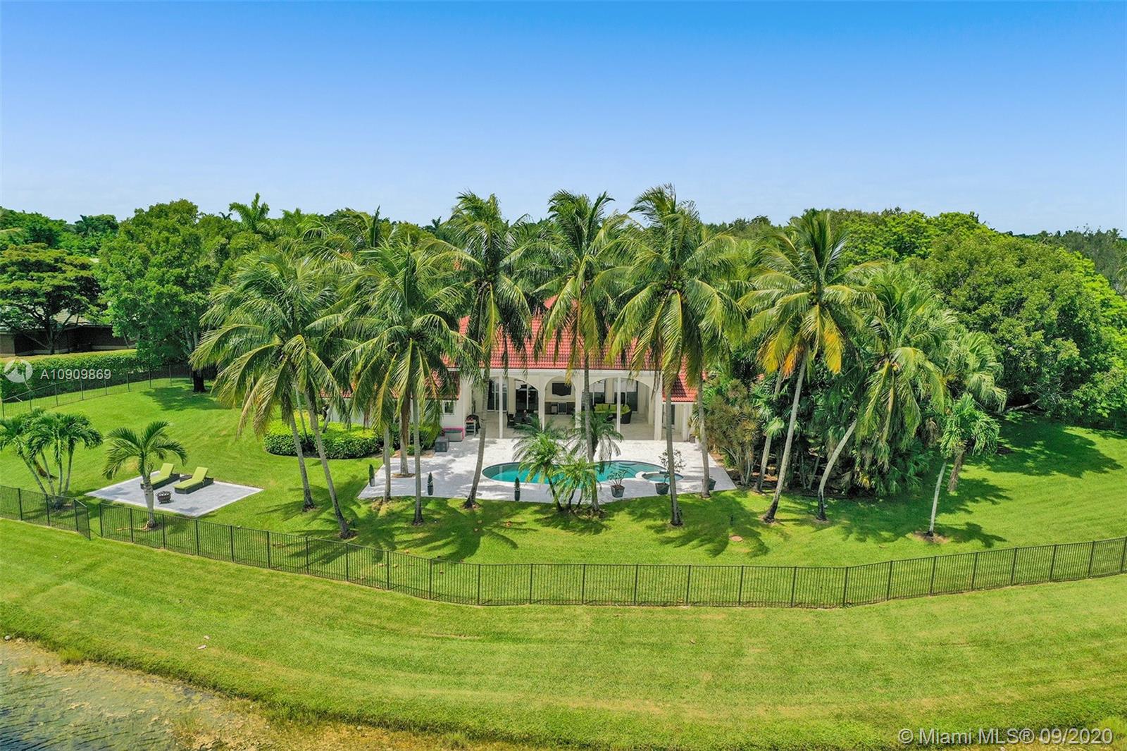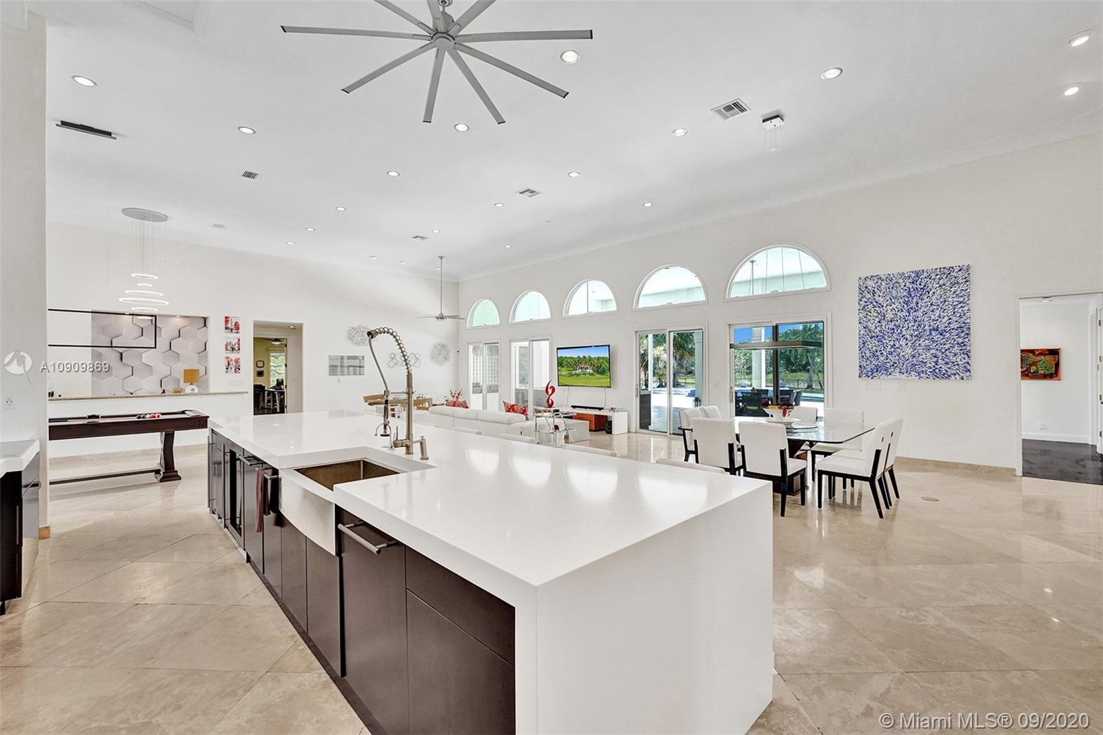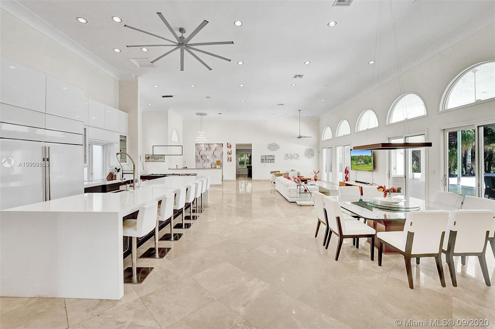 Tucked in the exclusive gated community of Windmill Ranch Estates. Point water lot with wrapping lake views on an oversized 1.25-acre cul de sac lot. 4,981 sq ft under air. Open-concept floor plan with 15' Volume Ceilings, double split bedroom plan. State of the art kitchen recently renovated with custom cabinetry, SubZero refrigerator, beverage center, ice maker & full-size wine cooler. Miele ovens regular oven, steam oven, and combo microwave, 2 Bosch dishwashers. Built-in piped Miele coffee maker. Marble & wood floors flow throughout Expansive covered patio w/summer kitchen. Recently renovated heated salt pool with spa. 6th Bedrm has a private entrance for office/in-laws/nanny quarters.