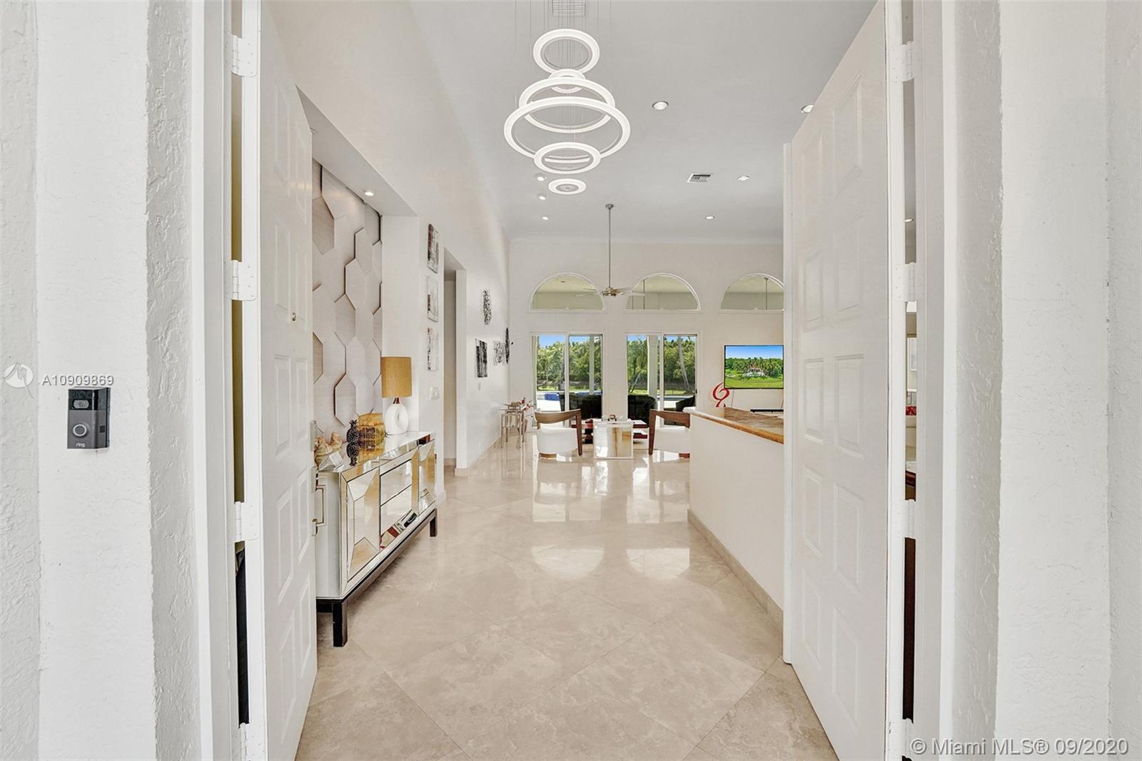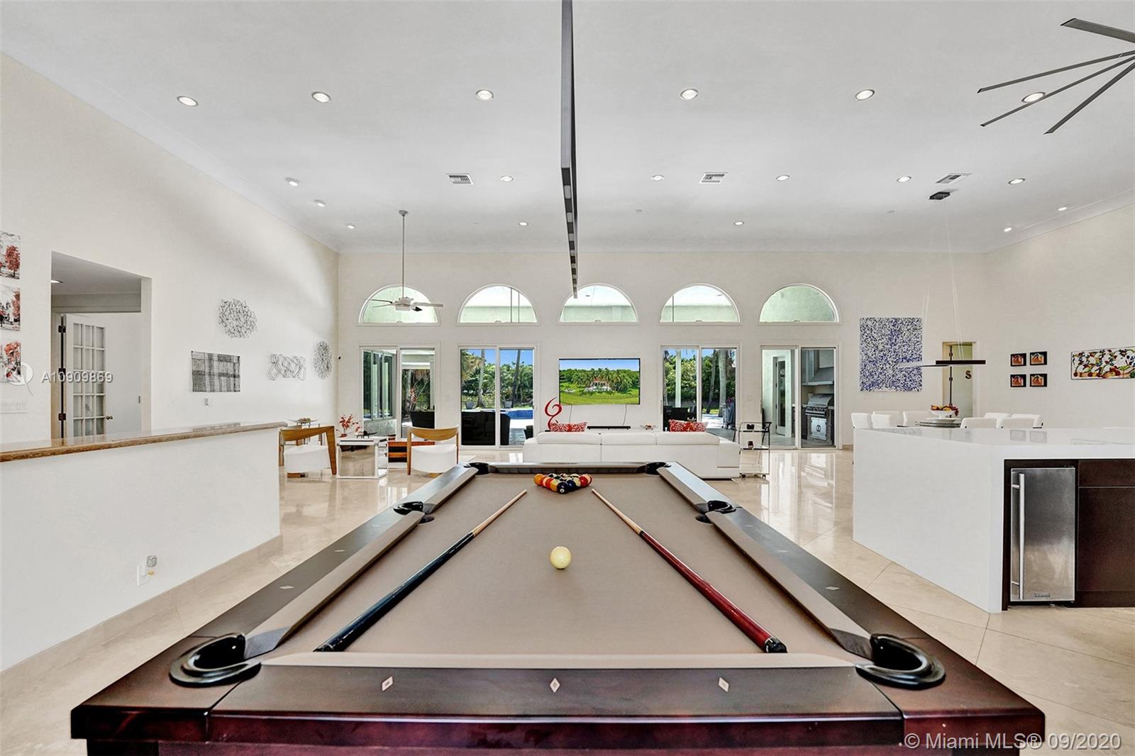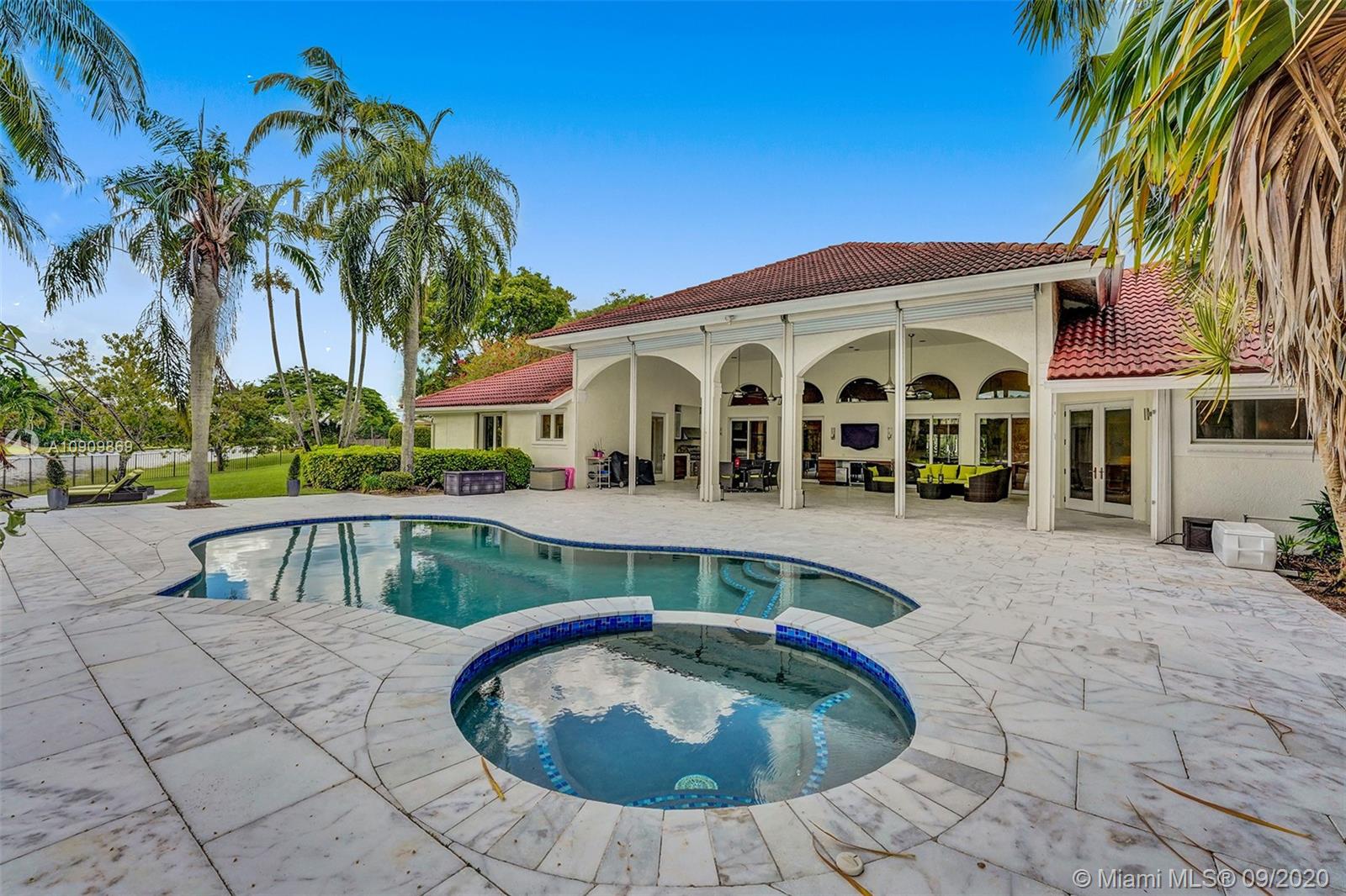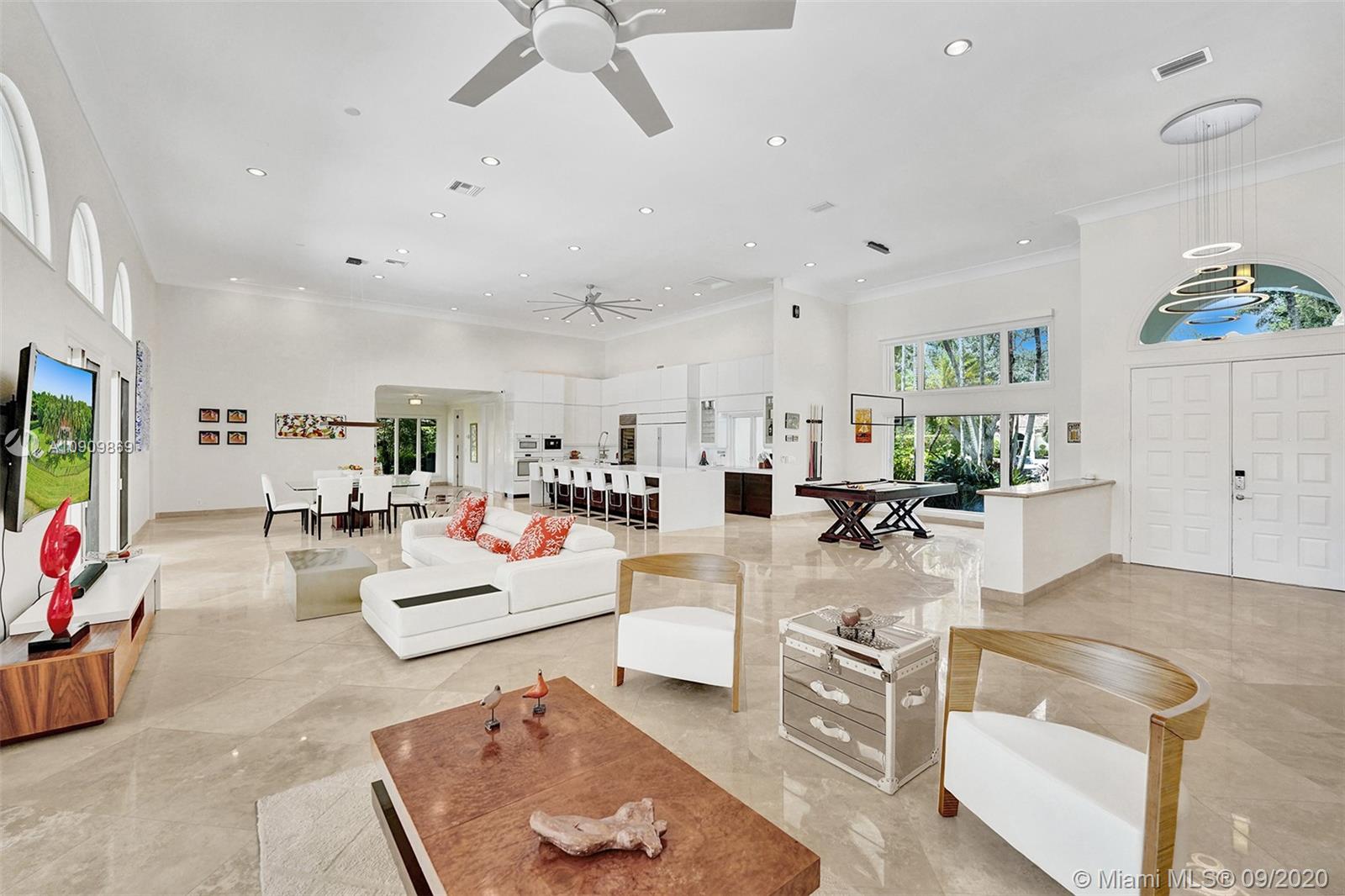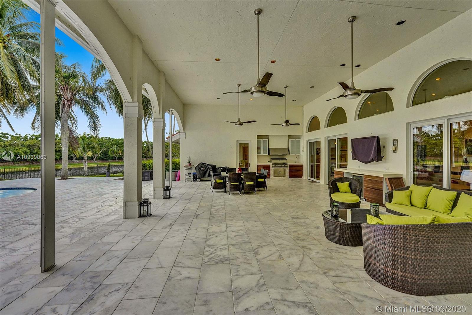 Tucked in the exclusive gated community of Windmill Ranch Estates. Point water lot with wrapping lake views on an oversized 1.25-acre cul de sac lot. 4,981 sq ft under air. Open-concept floor plan with 15' Volume Ceilings, double split bedroom plan. State of the art kitchen recently renovated with custom cabinetry, SubZero refrigerator, beverage center, ice maker & full-size wine cooler. Miele ovens regular oven, steam oven, and combo microwave, 2 Bosch dishwashers. Built-in piped Miele coffee maker. Marble & wood floors flow throughout Expansive covered patio w/summer kitchen. Recently renovated heated salt pool with spa. 6th Bedrm has a private entrance for office/in-laws/nanny quarters.