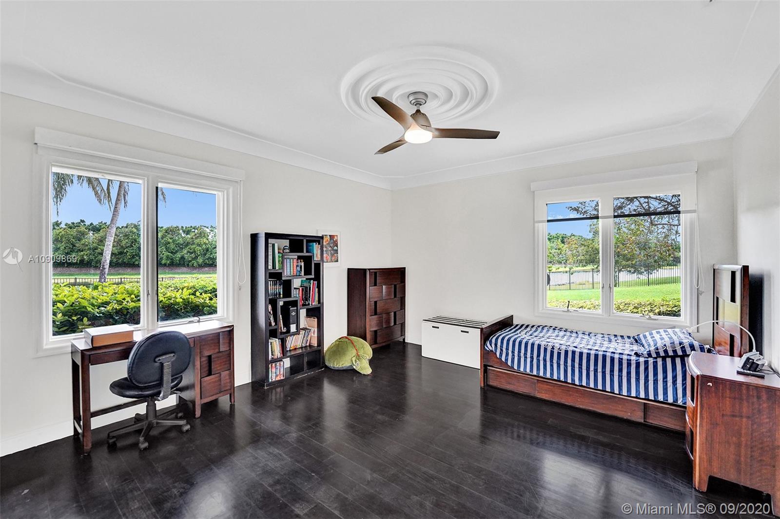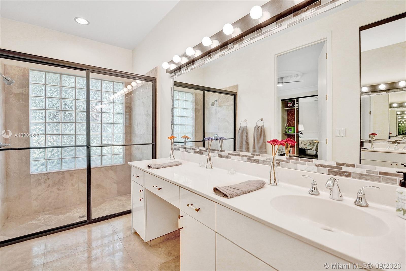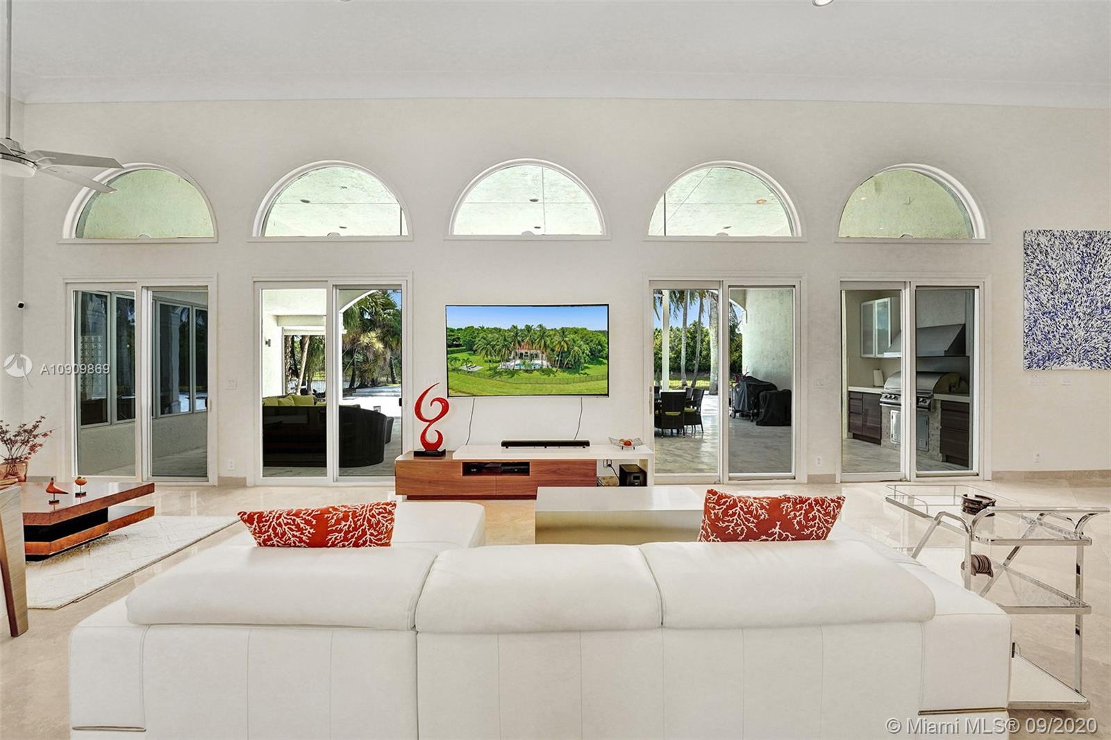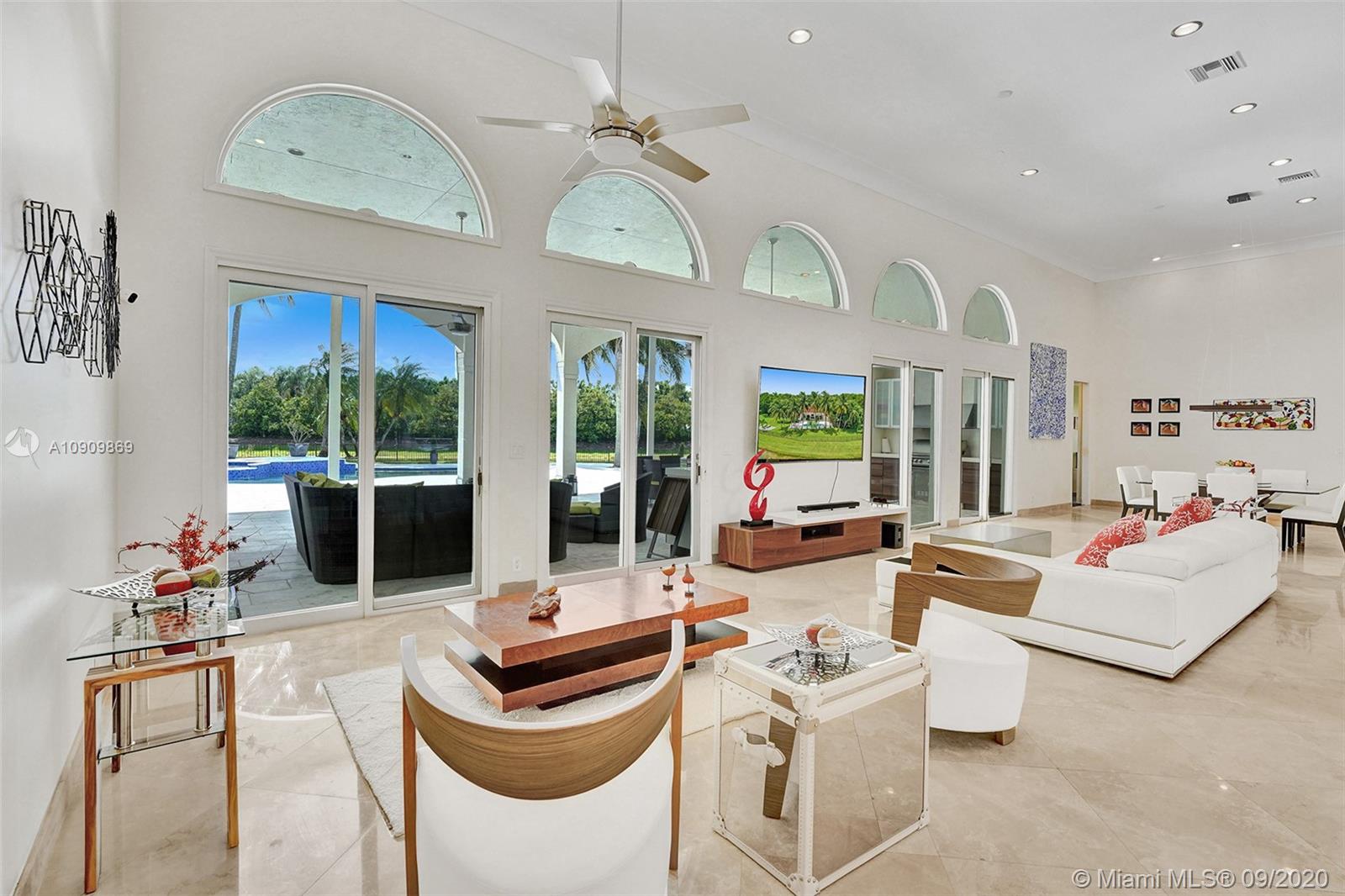 Tucked in the exclusive gated community of Windmill Ranch Estates. Point water lot with wrapping lake views on an oversized 1.25-acre cul de sac lot. 4,981 sq ft under air. Open-concept floor plan with 15' Volume Ceilings, double split bedroom plan. State of the art kitchen recently renovated with custom cabinetry, SubZero refrigerator, beverage center, ice maker & full-size wine cooler. Miele ovens regular oven, steam oven, and combo microwave, 2 Bosch dishwashers. Built-in piped Miele coffee maker. Marble & wood floors flow throughout Expansive covered patio w/summer kitchen. Recently renovated heated salt pool with spa. 6th Bedrm has a private entrance for office/in-laws/nanny quarters.