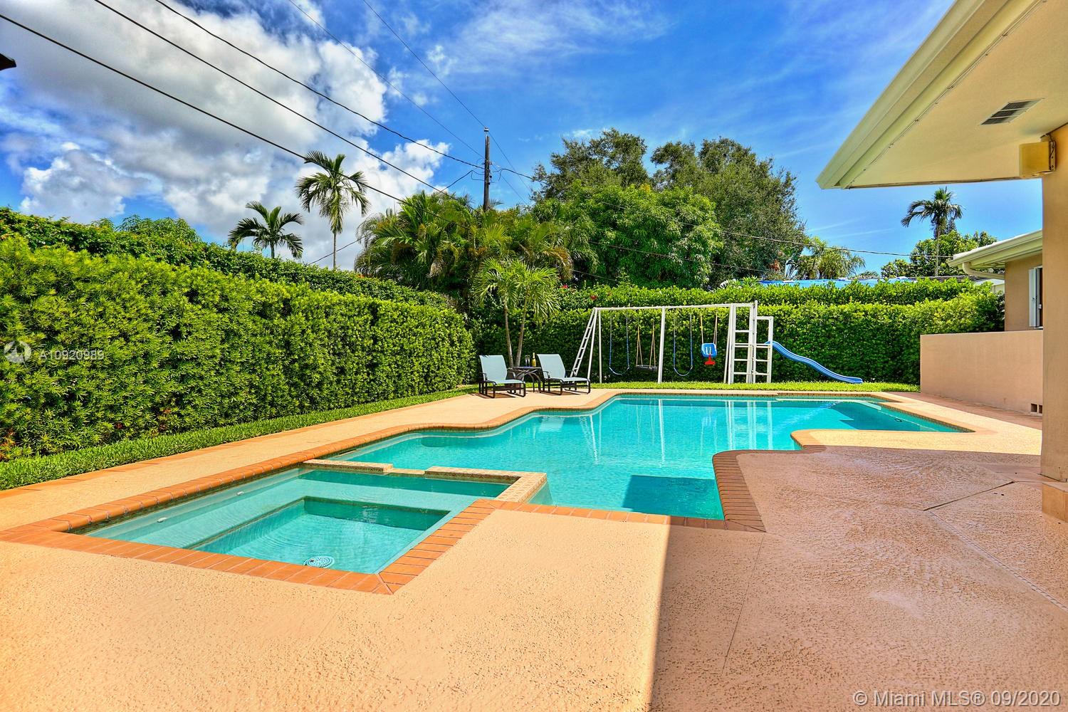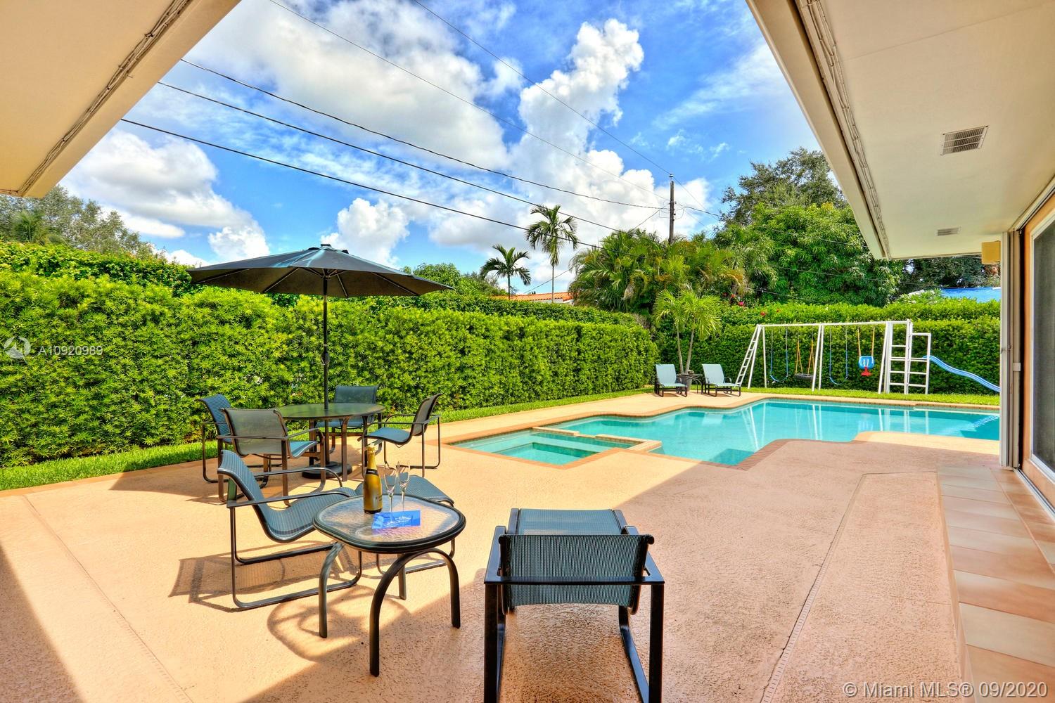 Immaculate and spacious home in THE CITY BEAUTIFUL, Coral Gables, conveniently located near UM and Doctor’s Hospital. Huge master suite addition overlooking sparking pool has sitting area, lavish bath with jacuzzi tub/separate shower & cedar-lined walk-in closet. Split floor plan w/a second master suite offers a remodeled bath & large walk-in closet. Impact Doors & Windows + accordions for added protection, updated kitchen w/SS appliances, tile & Bamboo floors throughout. Large open spaces flooded w/natural light make this home cheery & bright! Updated children’s bath is gorgeous w/double vanity & large Kohler tub. Beautiful landscaping on double lot with privacy hedge, 2-car garage, Flood Zone “X”, termite warranty and recently painted are just a few of the extras. THIS IS A GREAT HOME!
