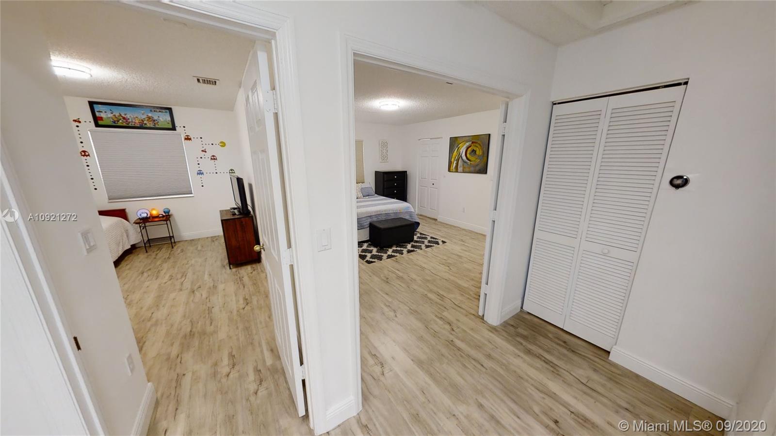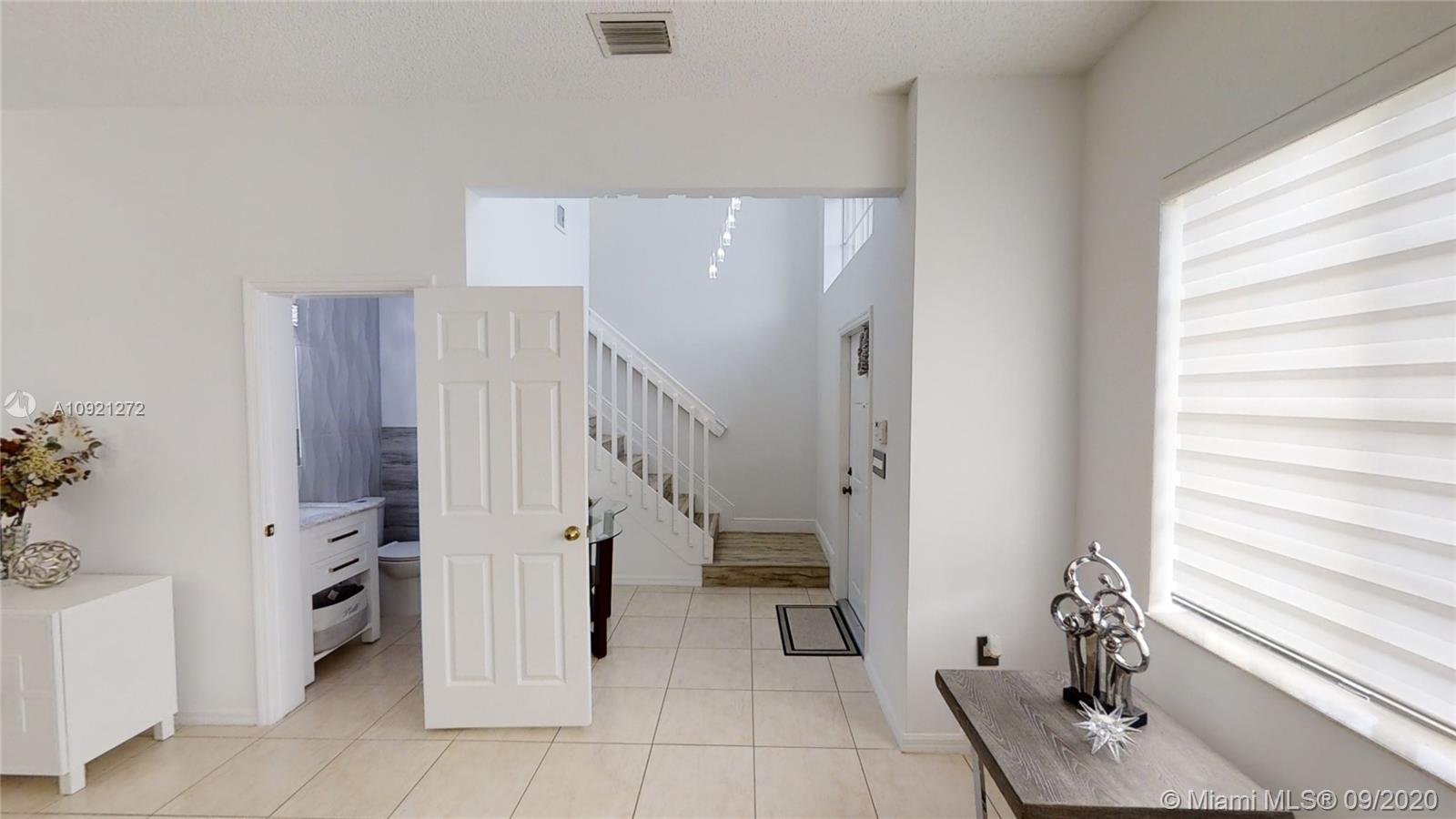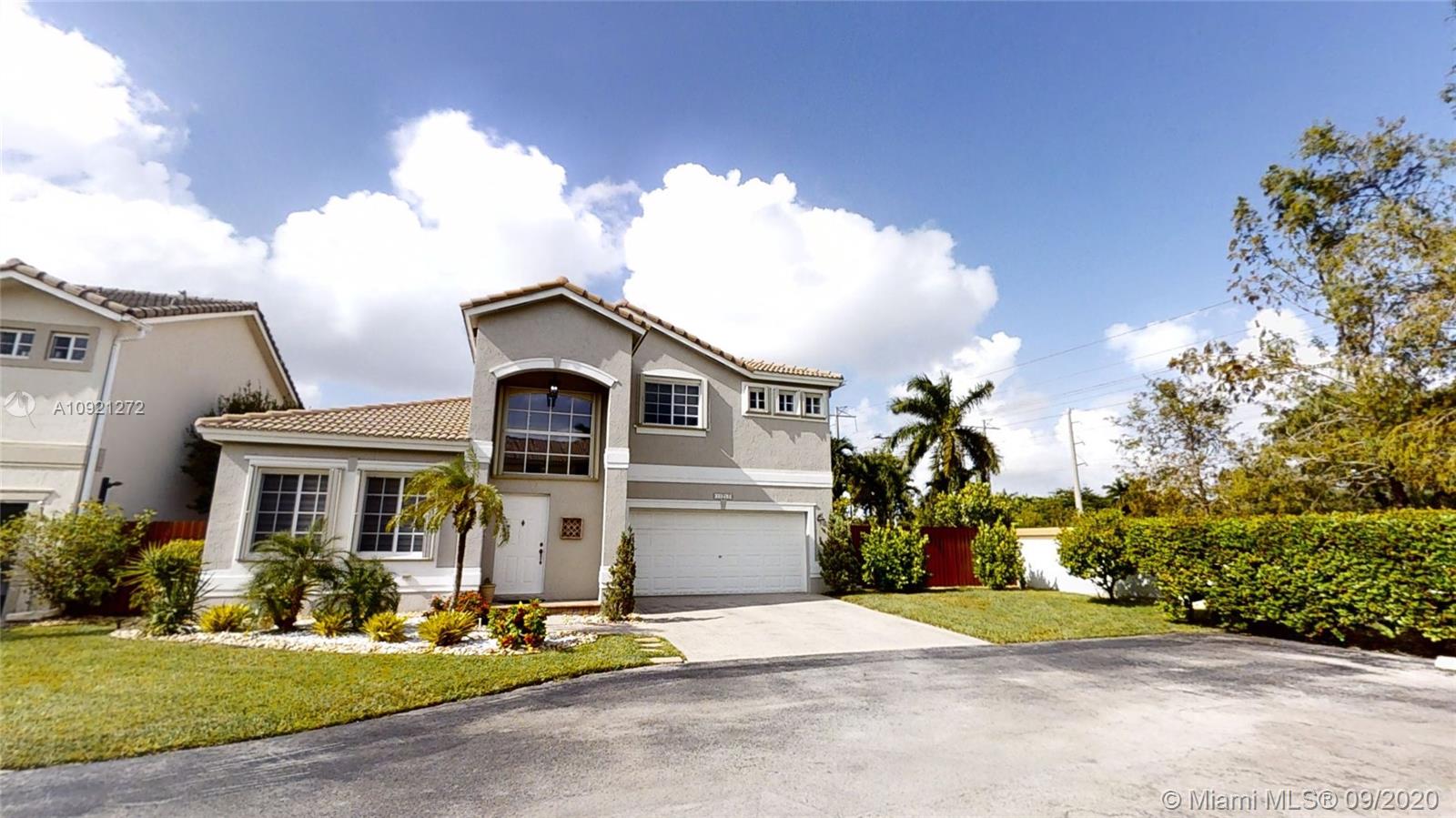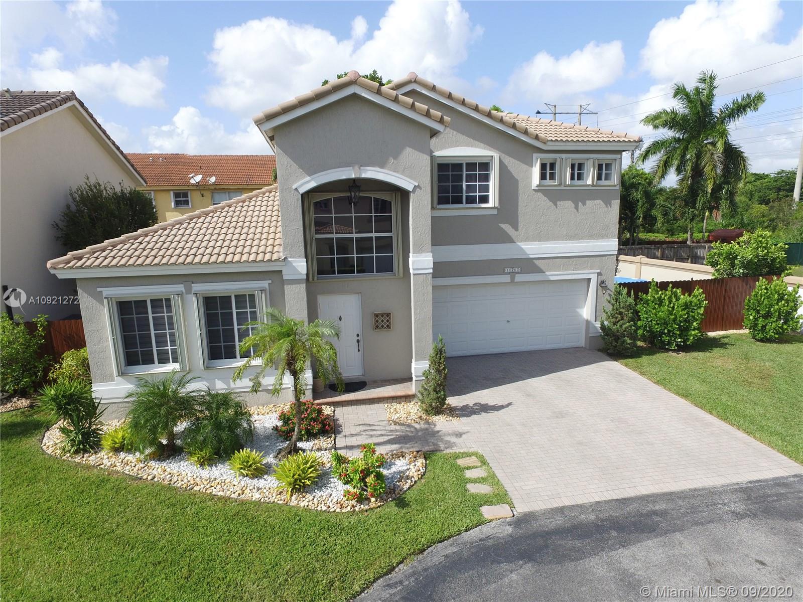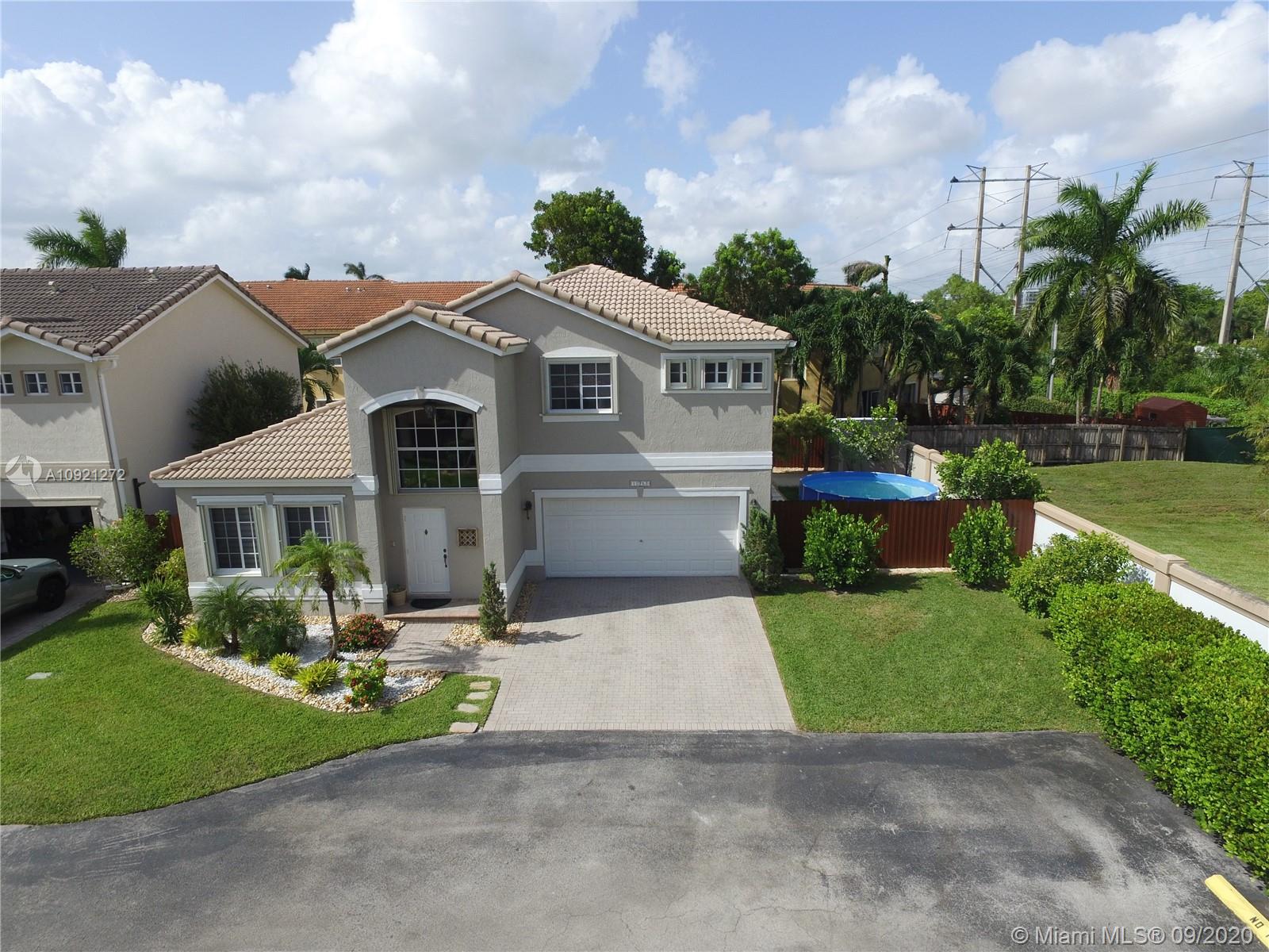 Impeccable Single-Family Home; 4 BR - 3.5 BA / 2,680 SQ/FT (Total Area) at Doral Garden; gated community build 2001. Corner lot with a pool above the ground. 1 bedroom downstairs & 3 bedrooms upstairs modern and renovated bathrooms and kitchen; stainless steel appliances, wood cabinetry, quartz backsplash-countertop & modern lighting fixtures. Garage conditioned under A/C, laundry utility double set of washer/dryer ( Upstairs and downstairs). Very low property taxes, home insurance, and HOA $240 monthly (include; cable, internet & security) Community situated in 107 AVE at City of Doral, just minutes away from Miami International Airport, several major highways, Dolphin and International Mall