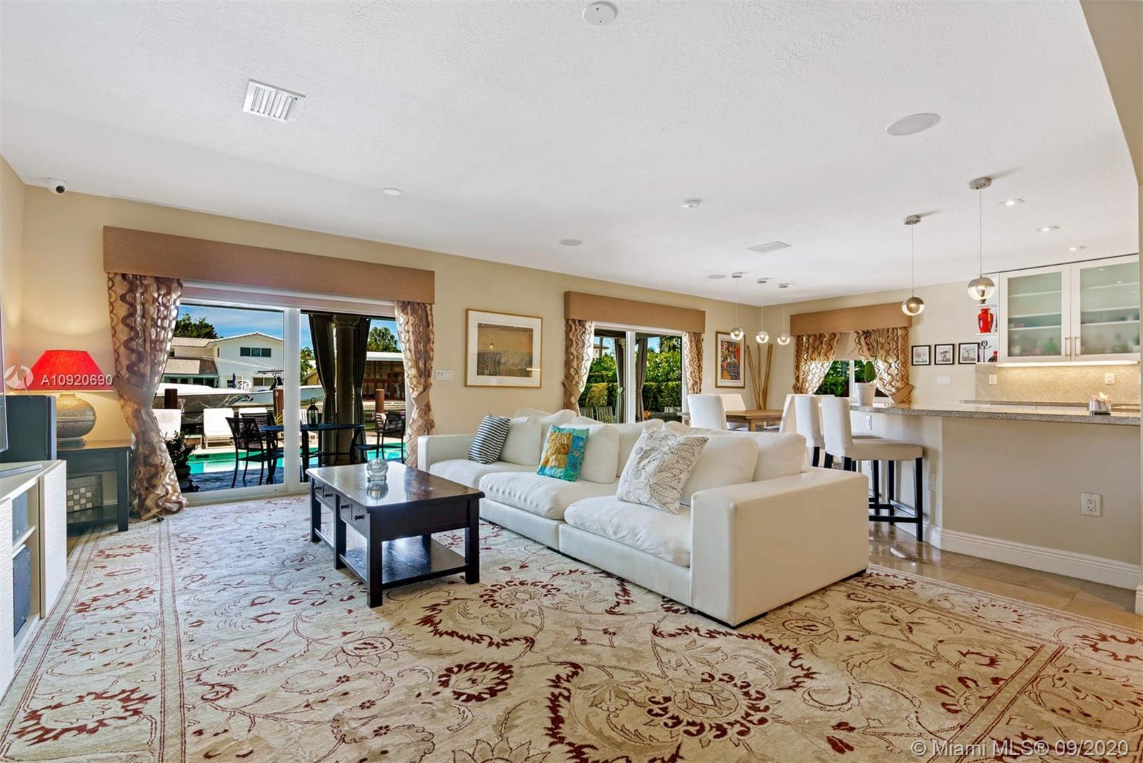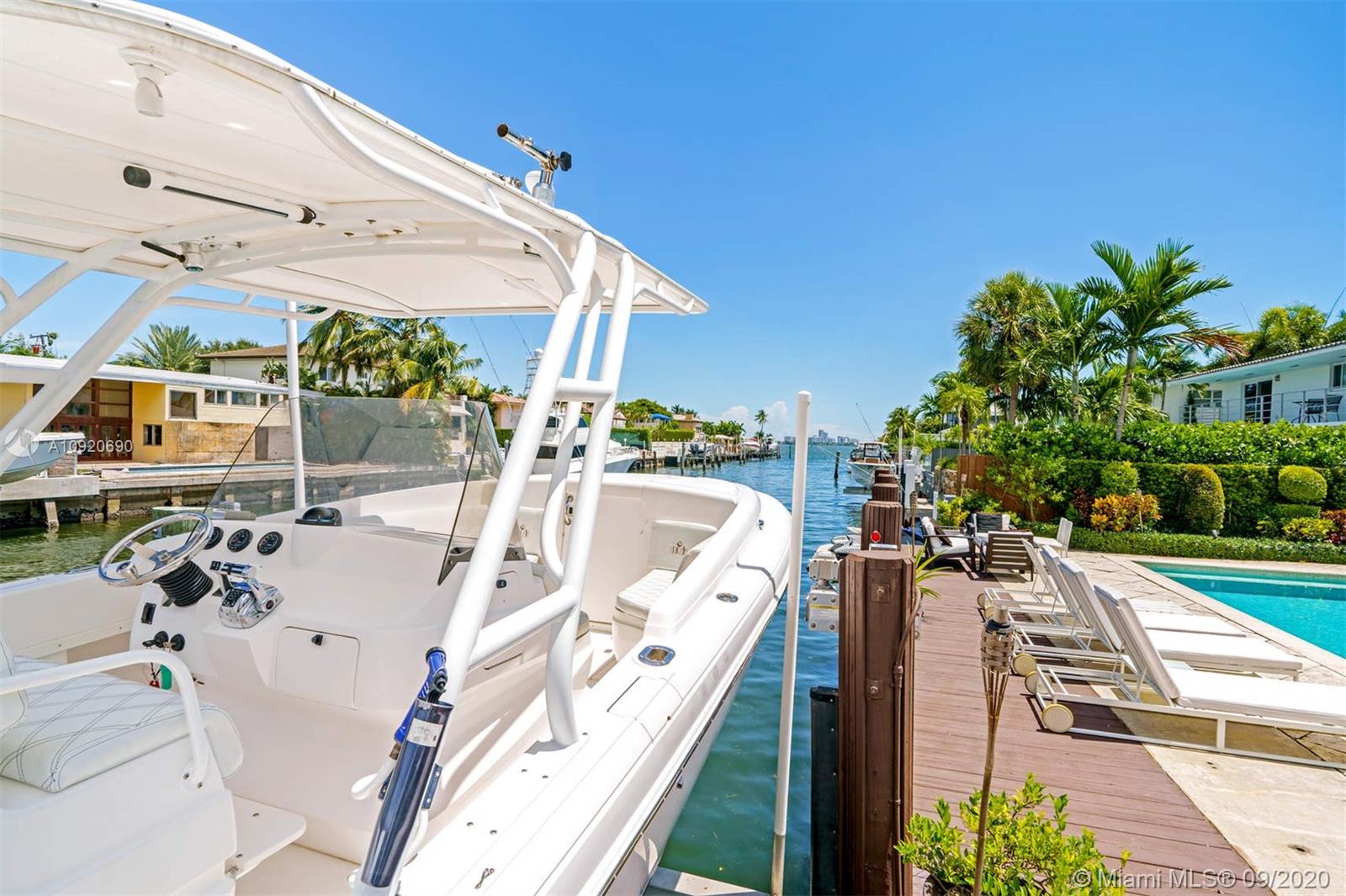Enjoy indoor/outdoor living in the easy elegance of this 4BD/3BA home completely re-built in 2010. Classic contemporary move-in ready one-story home with garage. 3,458 sq ft of indoor living area on 9,375 sq ft lot with 75 ft. of wide canal, just a few houses to open bay, boasting a new seawall and 20,000 lb frameless boat lift. Newly equipped saltwater pool, shady covered lanai, and outdoor kitchen grill/bar gazebo. Triple split layout, large master suite, huge closets, travertine marble floors and bathrooms. Open gourmet kitchen, granite countertops, stainless steel appliances. 2-zone central A/C, hurricane impact windows and doors throughout. Conveniently located in gated San Souci Estates, close to Whole Foods, Aventura Mall, airports, beaches, and highways.