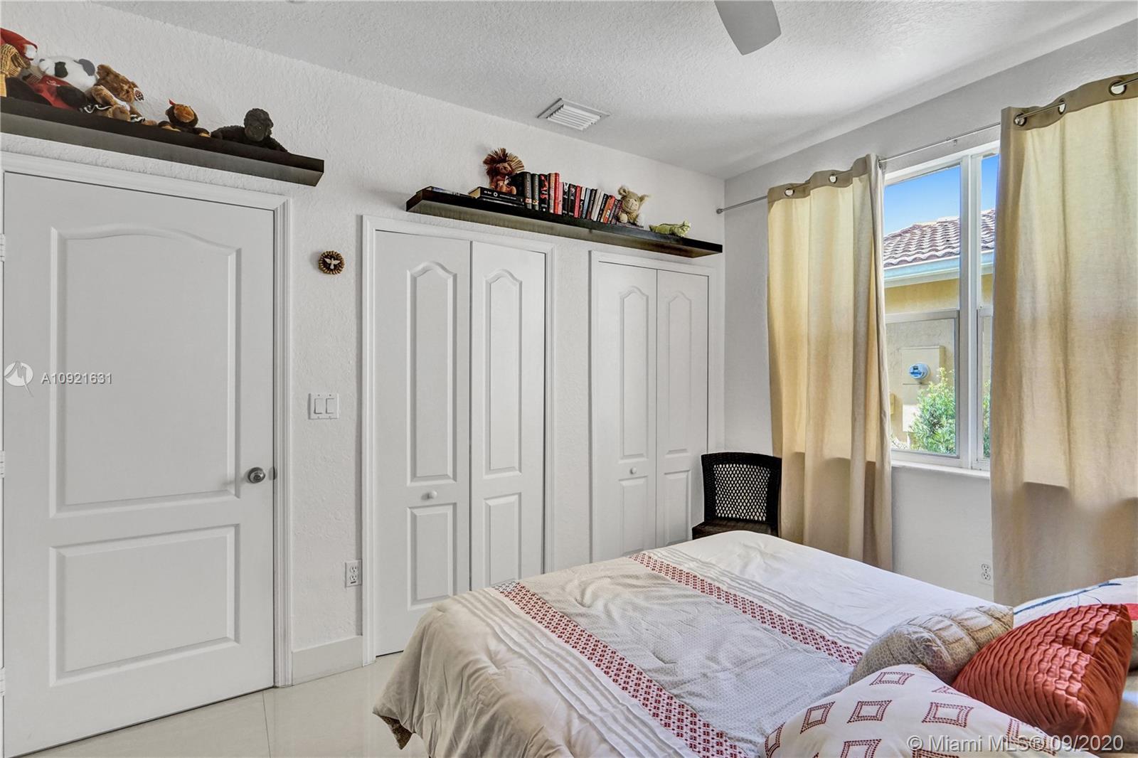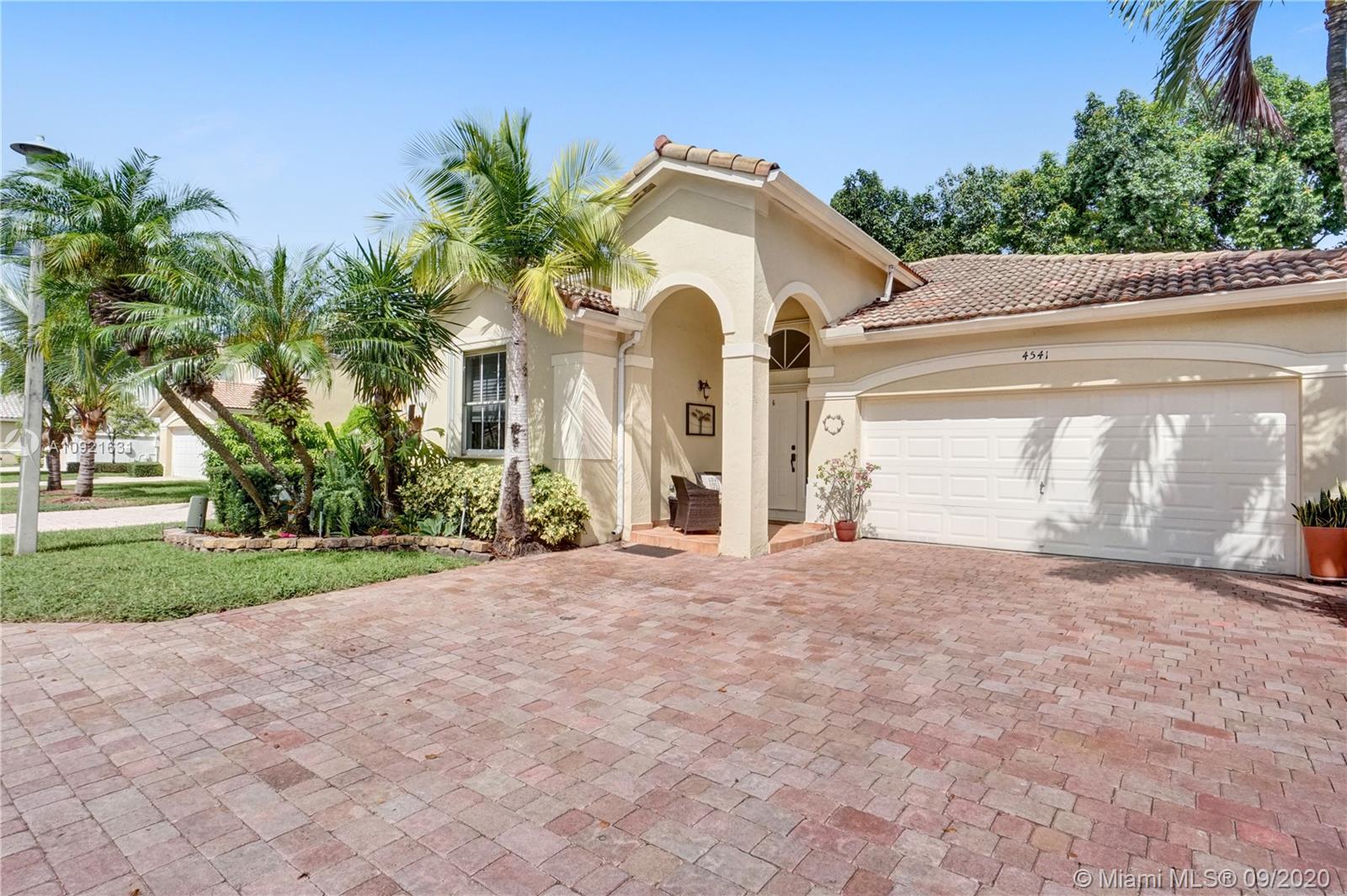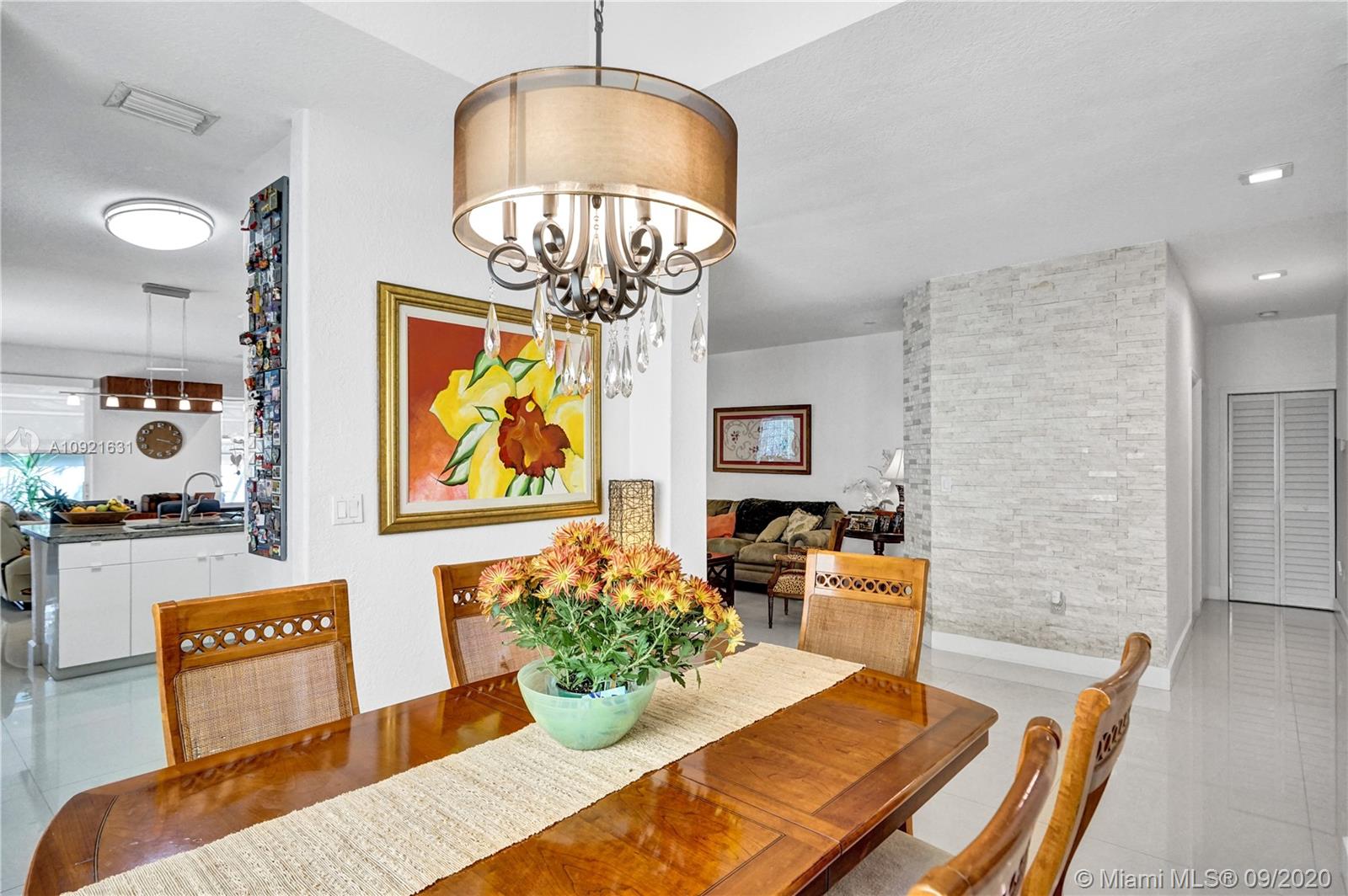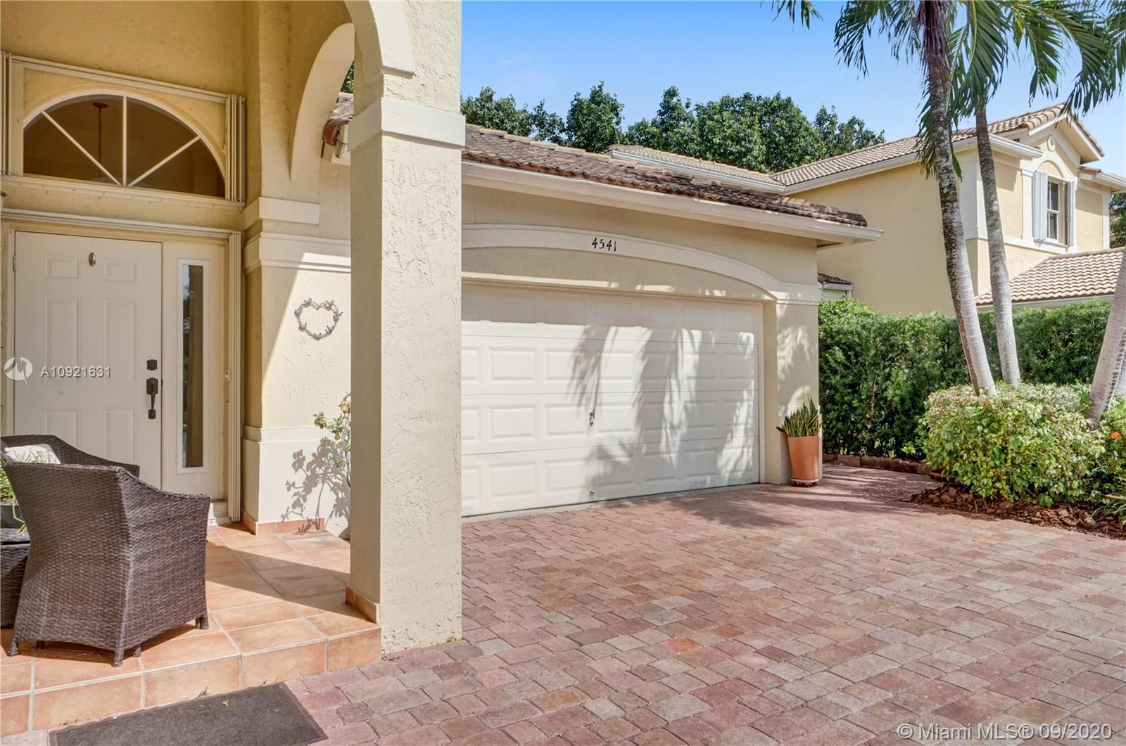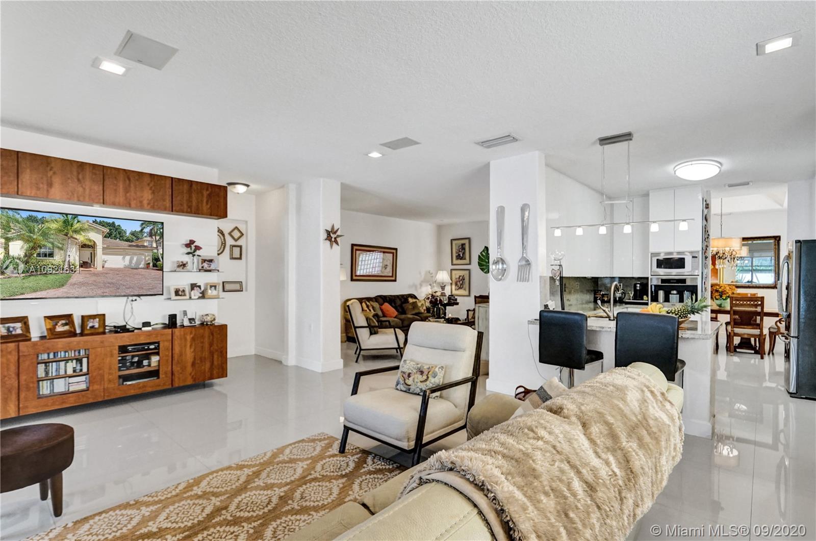 Charming one story home situated in a quiet gated community of Goldvue at Doral. NO NEIGHBOR in the back. Featuring 4 bedrooms 3 baths, 2 car garage + driveway for 2 more cars. Exquisite remodeled home with upgraded kitchen with stainless steel appliances, cover screen terrace. Low maintenance fee includes 24 hours security, common areas, basic cable, alarm monitoring, community pool.