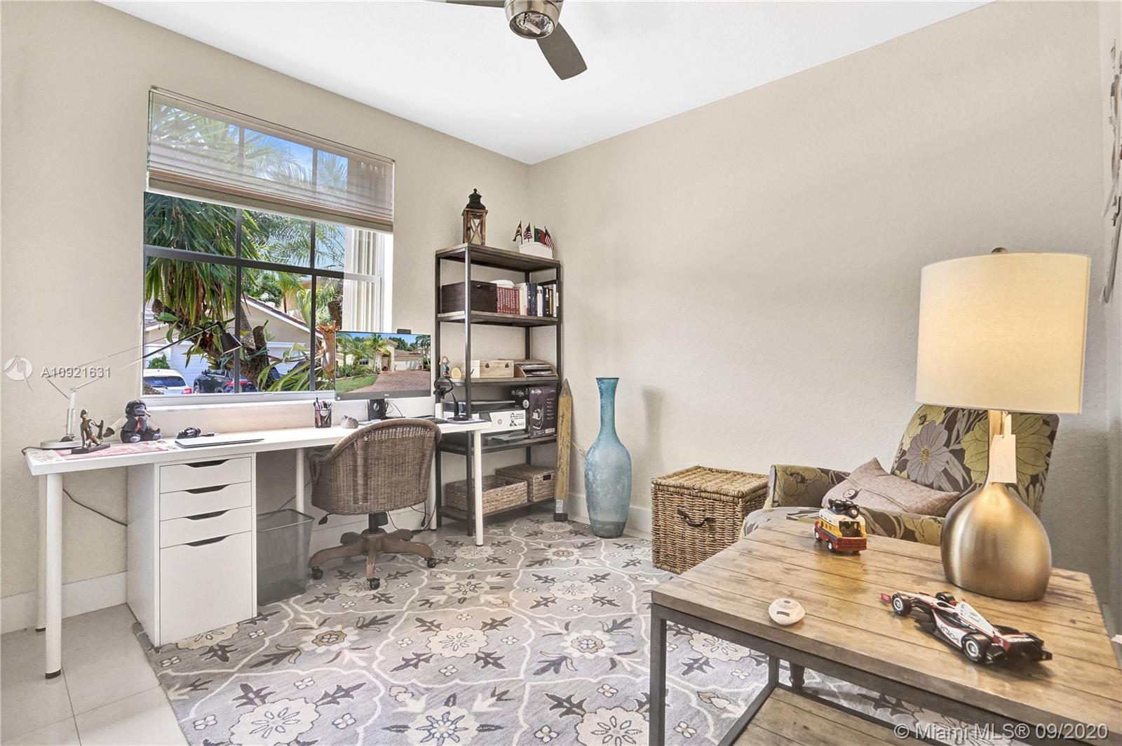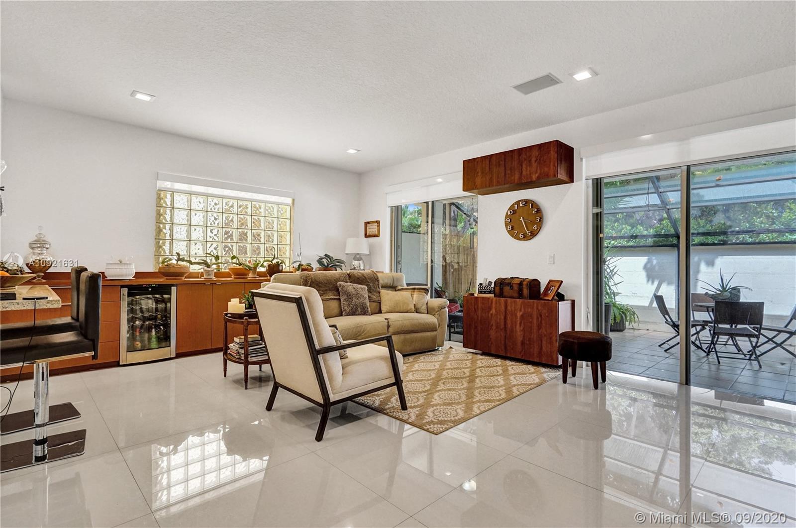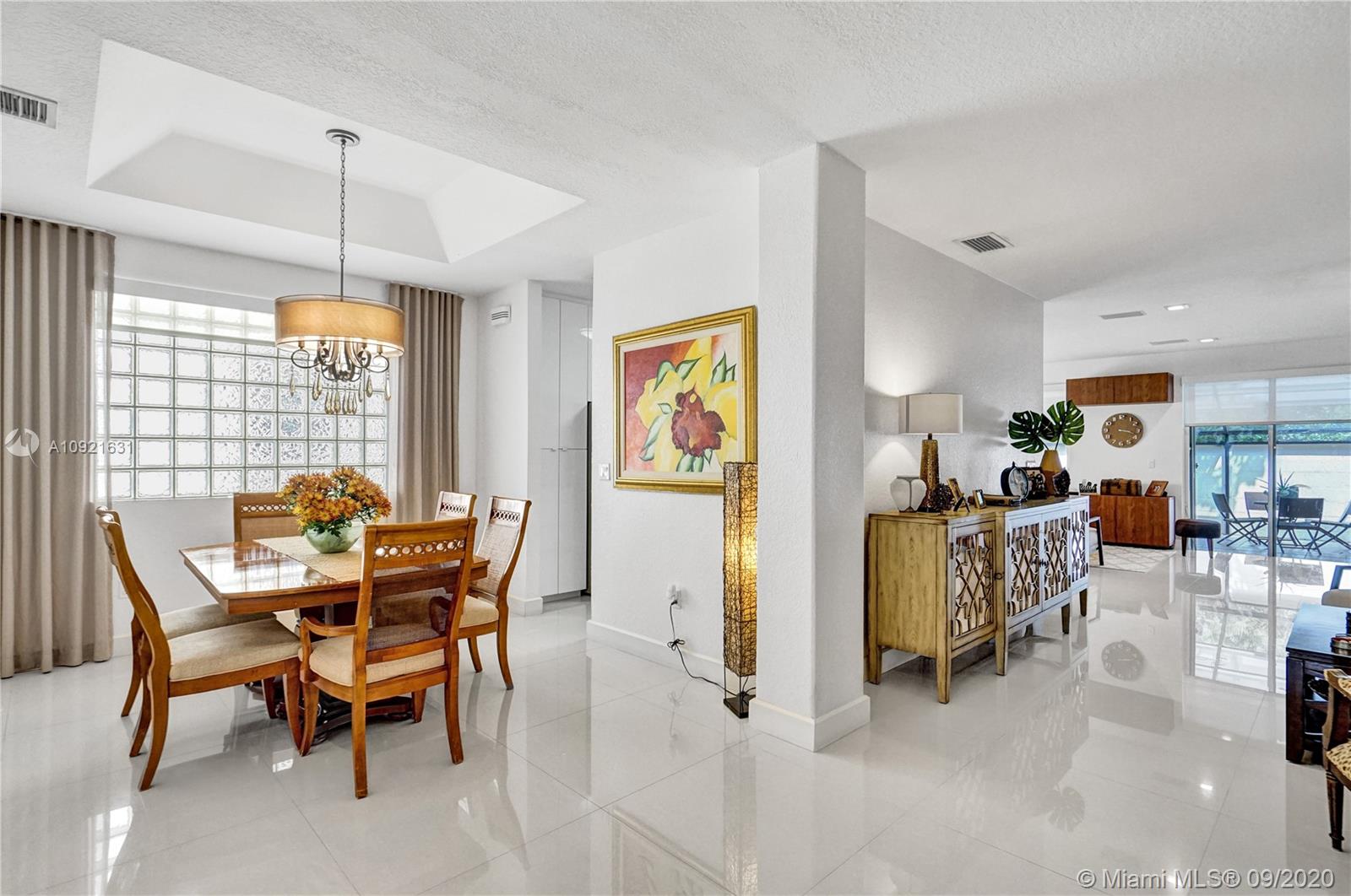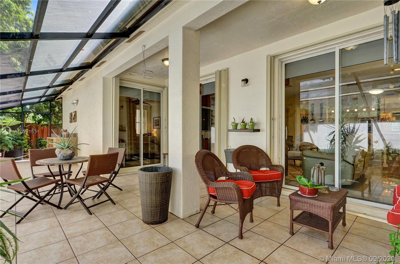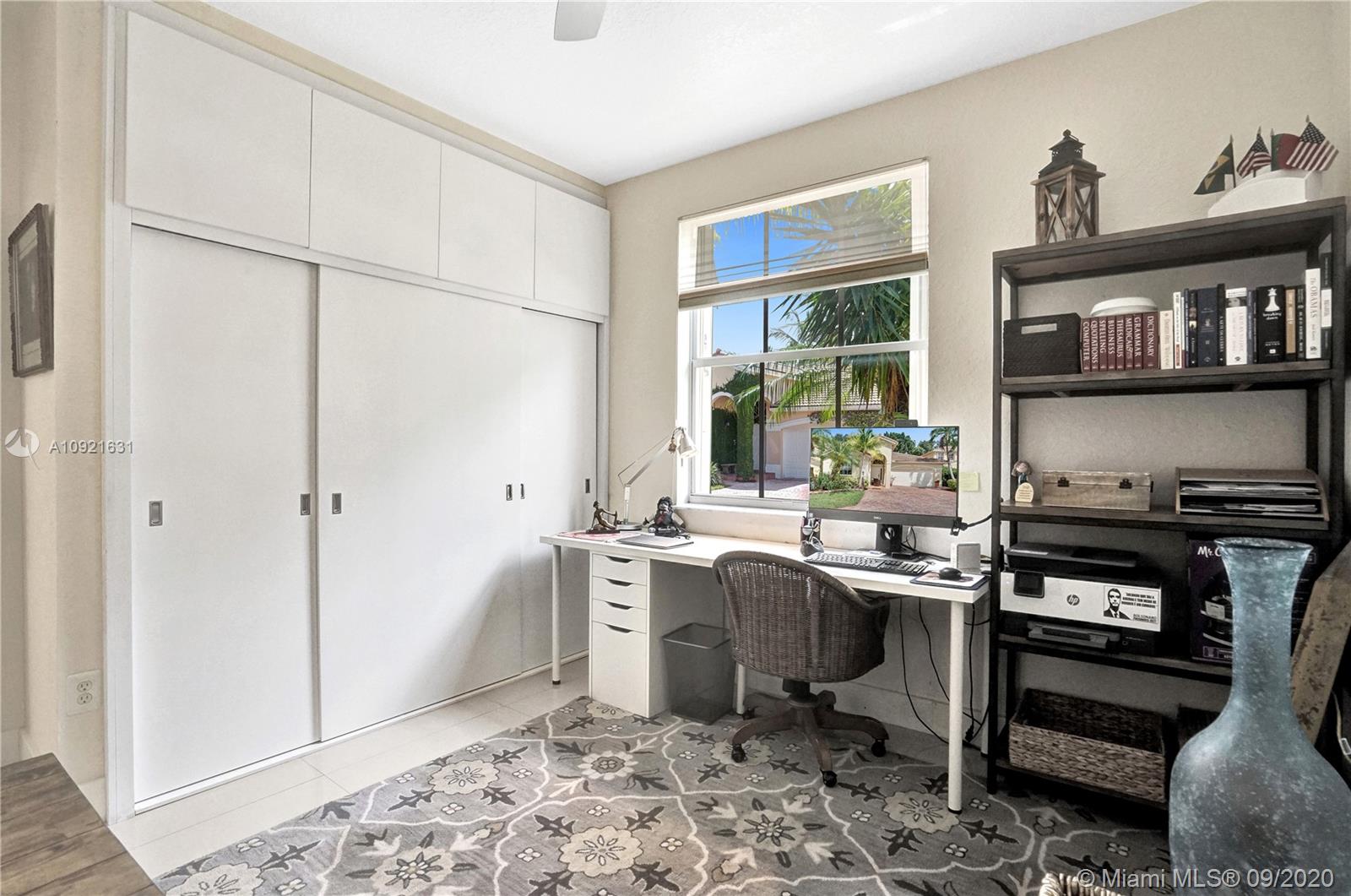 Charming one story home situated in a quiet gated community of Goldvue at Doral. NO NEIGHBOR in the back. Featuring 4 bedrooms 3 baths, 2 car garage + driveway for 2 more cars. Exquisite remodeled home with upgraded kitchen with stainless steel appliances, cover screen terrace. Low maintenance fee includes 24 hours security, common areas, basic cable, alarm monitoring, community pool.