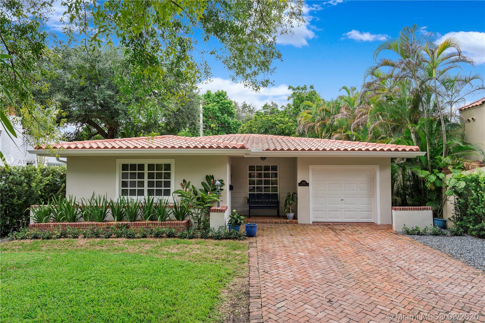 PRICED TO SELL, IN A QUIET STREET!!! Spectacular three bedroom/ two bathroom 1621 adj. sqft. home that feels like coastal living, with an open floor plan that rivals larger homes offering a foyer entry, formal living room, dining room, family room and new eat-in kitchen. Plenty of closet space with two generous linen closets. Master bedroom features walk-in closet. One-car garage. Chicago brick driveway and pavers, charming patio garden oasis with putting green and mamey tree, newly landscaped. Brand-new roof, and recently tented. Quiet tree-lined street. Excellent location in the heart of Coral Gables Walk to the Granada golf-course or El Prado. Ready to move-in. MUST SEE!! Only serious buyers with pre-approval letter. Call for appointment!