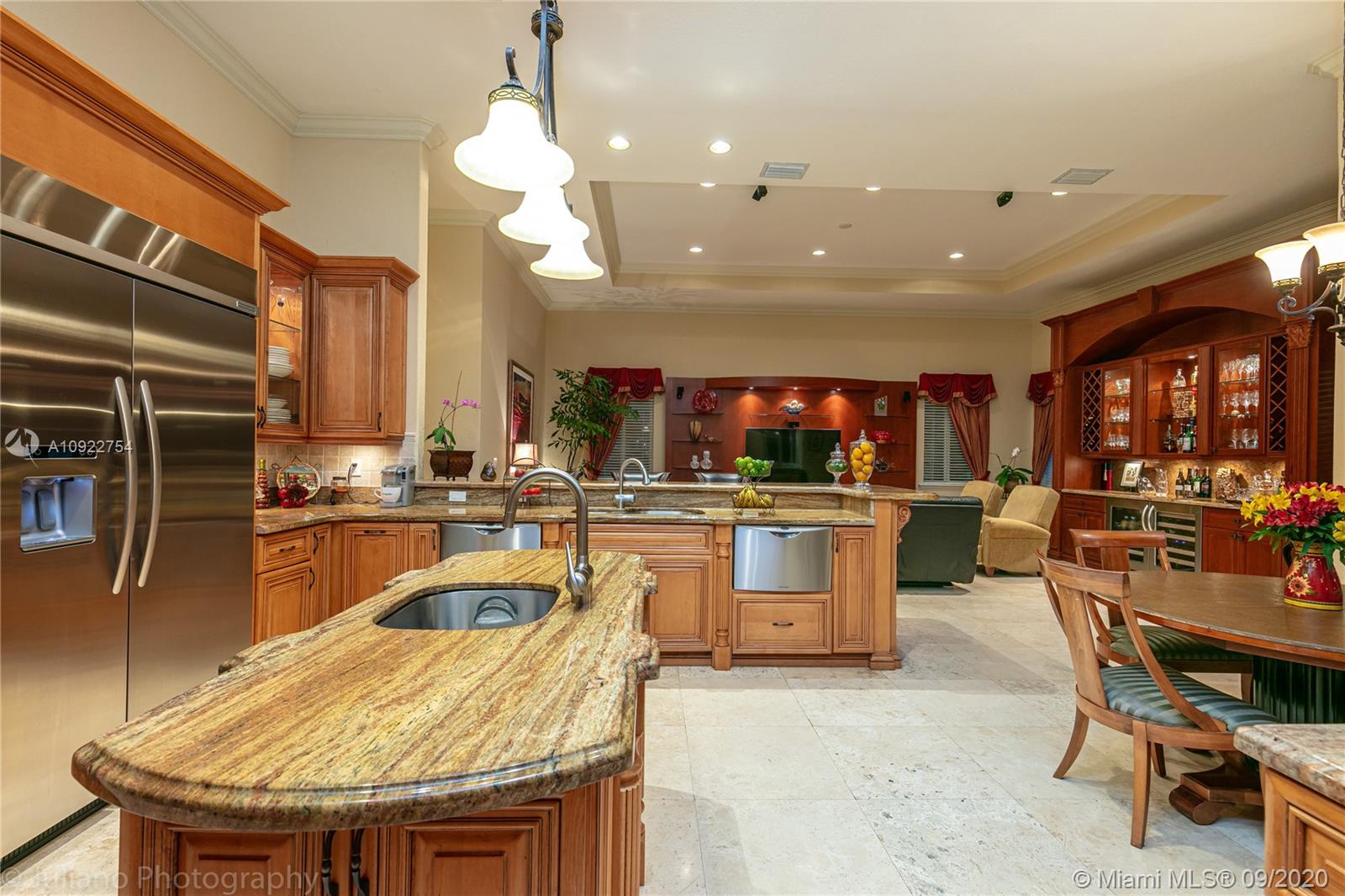 Priced to sell: One story Pinecrest estate with superb details!. Custom built by owners in 2007, first time on market. Mediterranean style 5/4, 2 car garage, soaring tray ceilings, travertine floors throughout, impact windows & doors, porte de cochere, free-form pool with cascade, all on lush 17K lot with fruit trees. This is THE perfect home for a family who loves to entertain! Spacious kitchen has custom built solid wood cabinets, S/S appliances 2 dishwashers, double sinks. It opens to FL room with built-in bar & TV wall unit. Inviting large master suite has his/her walk-in closets, vanities, jacuzzi + shower, it overlooks the gorgeous pool & backyard. Surround sound system inside and in patio remain. USE SHOW ASSIST, 24 hours notice a must. Bring your pickiest buyer, this home is a gem!