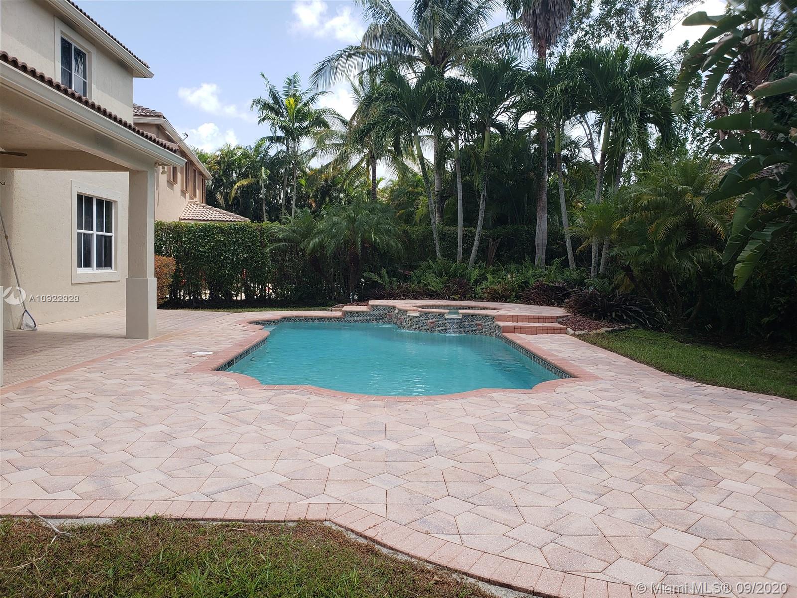 Gorgeous house in a cul-de-sac location. Large swimming pool with a spa. Beautiful landscaping. The garden is all fenced with the privacy of ficus surrounding it. The kitchen has granite counter tops and a double oven layout. Ample family room area. One full bathroom downstairs. Laundry room that has also a tub inside the house. Upstairs the house has 5 bedrooms. The master bedroom has a very good size w/two walking closets. Master bath has a separate shower and a roman tub. One of the bedrooms has a private bathroom. And there is an addition of a loft upstairs. Plenty of storage/closet space.