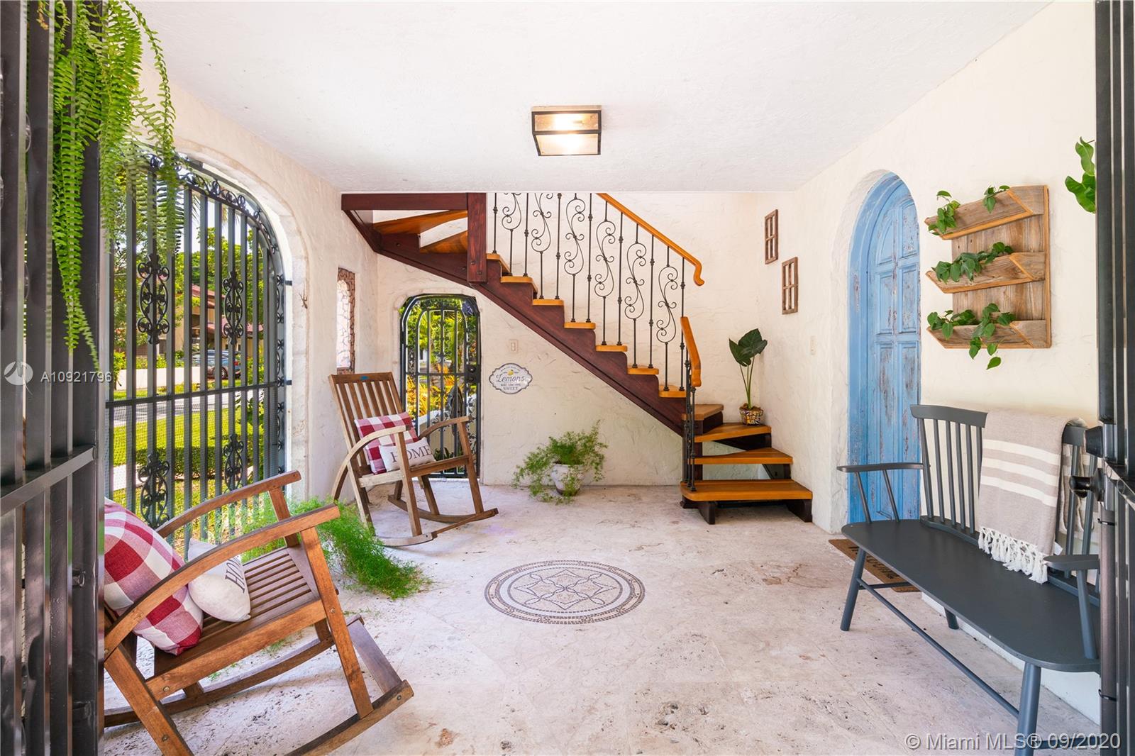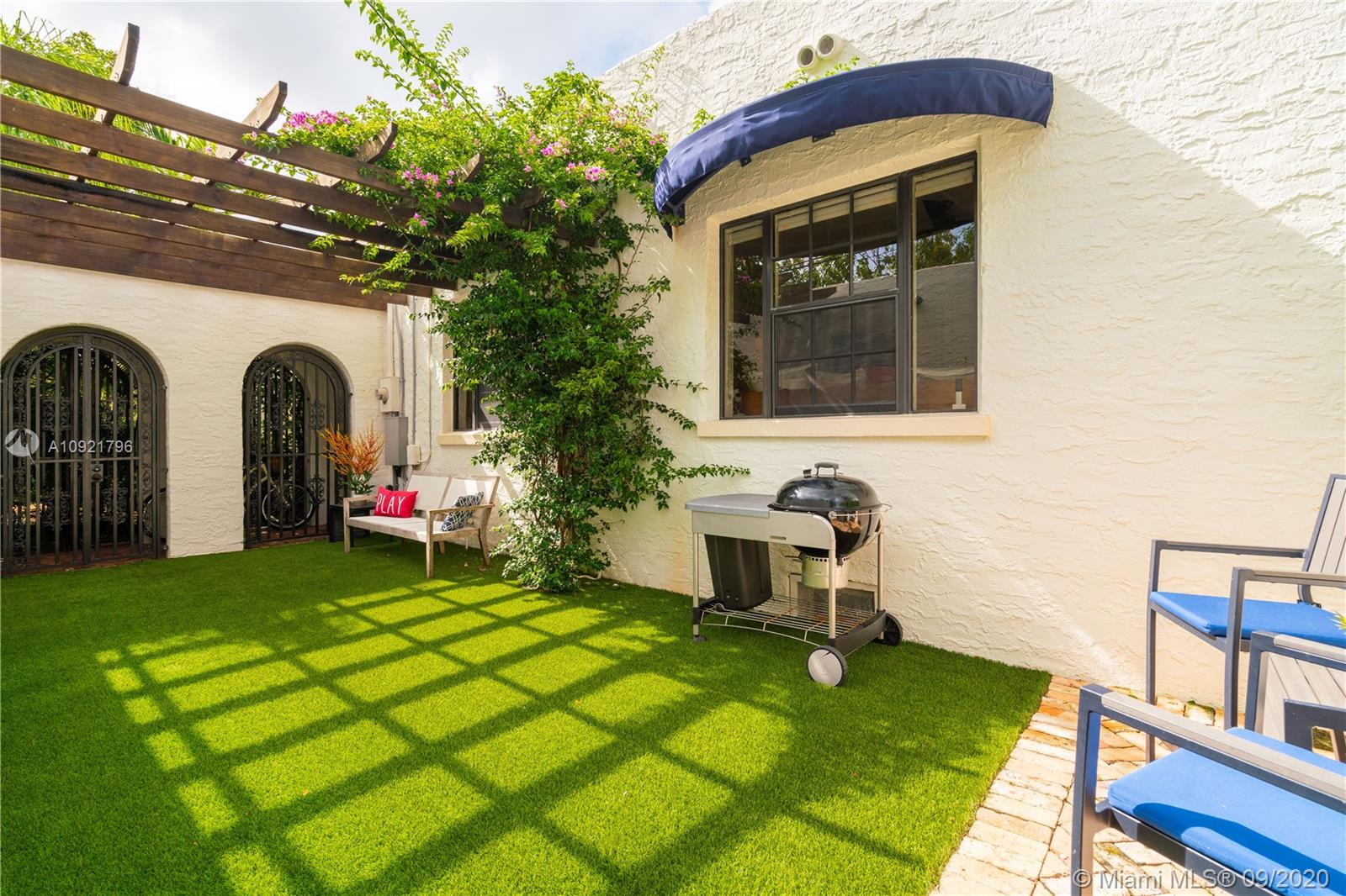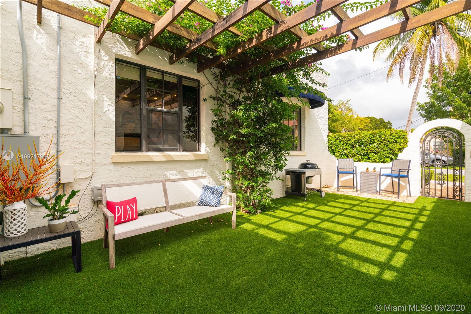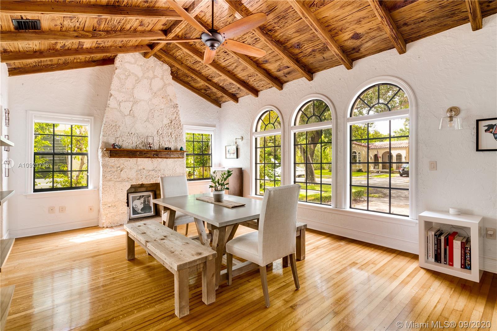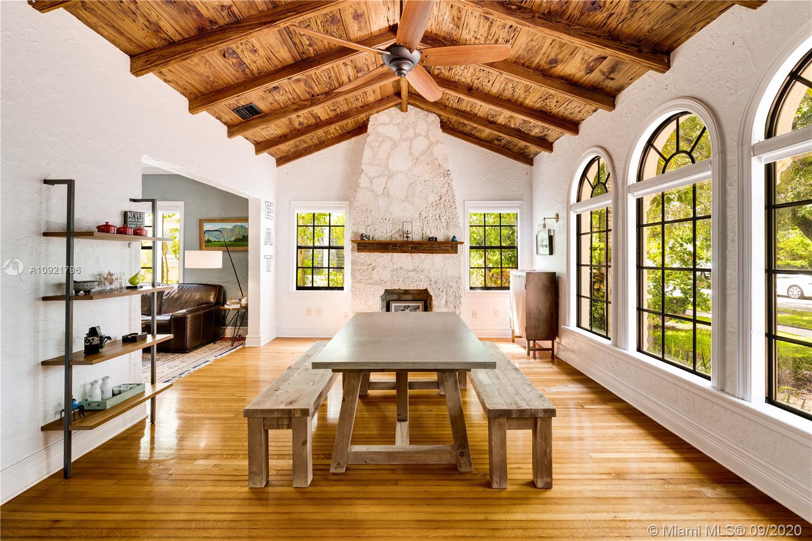 Beautiful Mediterranean style home designed by one of Coral Gables’ most renowned architects, H. George Fink, offers modern comfort with classic style. Lovely restored and updated elements highlight the home’s wonderful layout. A gated loggia provides the entry into a spectacular room with a fireplace, pecky cypress ceiling, and grand windows overlooking the garden. The home features 2 bedrooms and 2 recently renovated bathrooms as well as a second-floor office/studio. There is a newly updated kitchen with adjoining laundry. The property also includes a charming courtyard for BBQ’s and outdoor entertaining and a connecting breezeway to a 1/1 guest house & an air-conditioned garage. Plumbing and electrical have been updated. Almost all windows are impact. A Very Special Home.