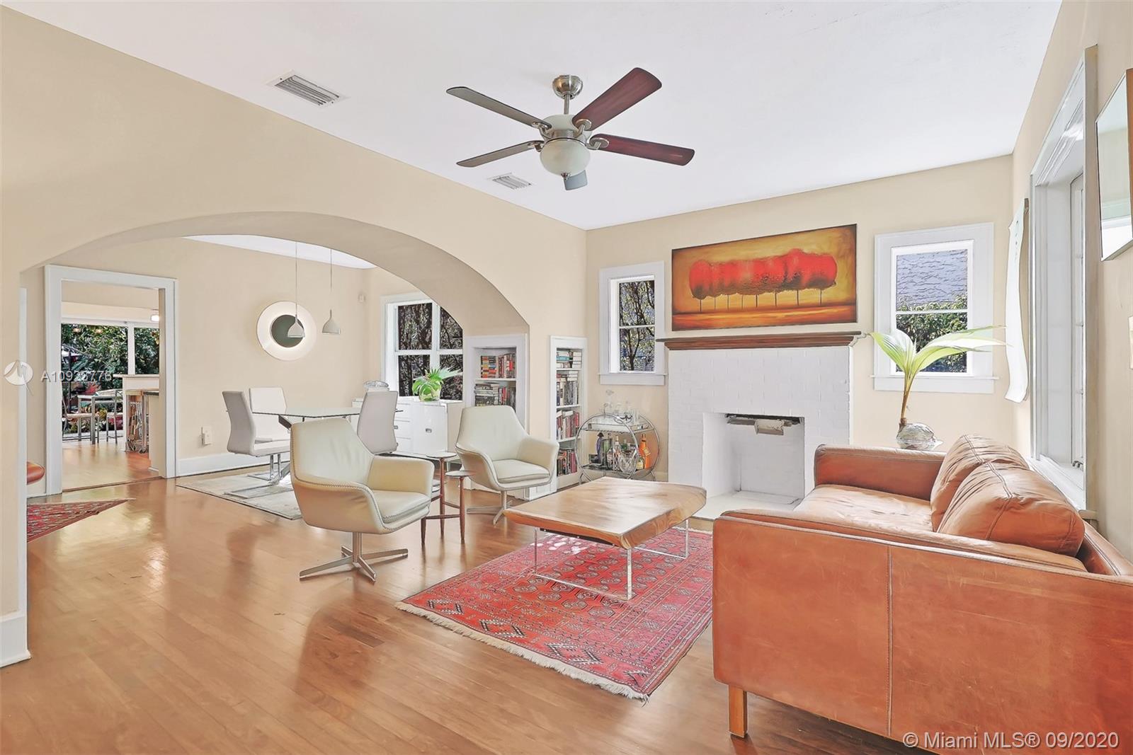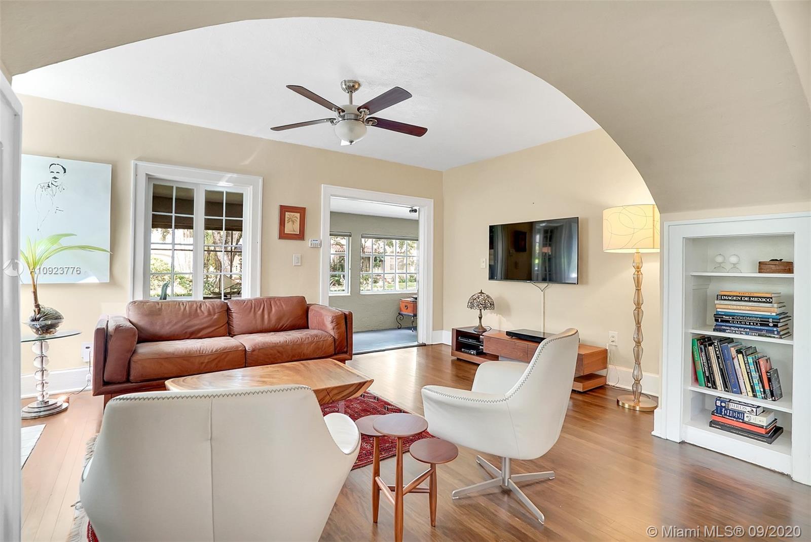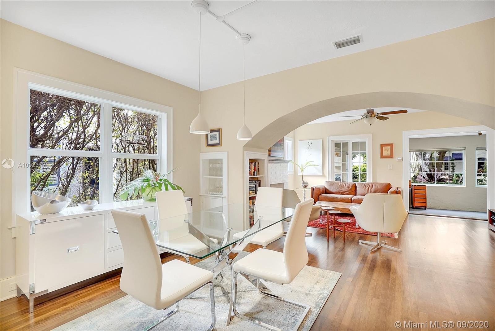 Tastefully renovated 1924 Old Spanish on a quiet tree-lined street in Coral Gables. This architectural gem was lovingly preserved & perfectly blends original charm with modern upgrades. Features include beautifully restored hardwood floors, impact windows & doors, a convenient carport & a spacious sunroom. Light & bright floor plan w/ high ceilings & sun-filled living spaces. Enjoy the lush & private chicago brick patio- the perfect tropical getaway. 3/1 main house + detached 1/1 cottage. 3rd bdrm would make an ideal den/office or nursery. Newer roof (2017). Come live a quiet, yet urban lifestyle walking distance to Gables’ parks, cafes & restaurants.