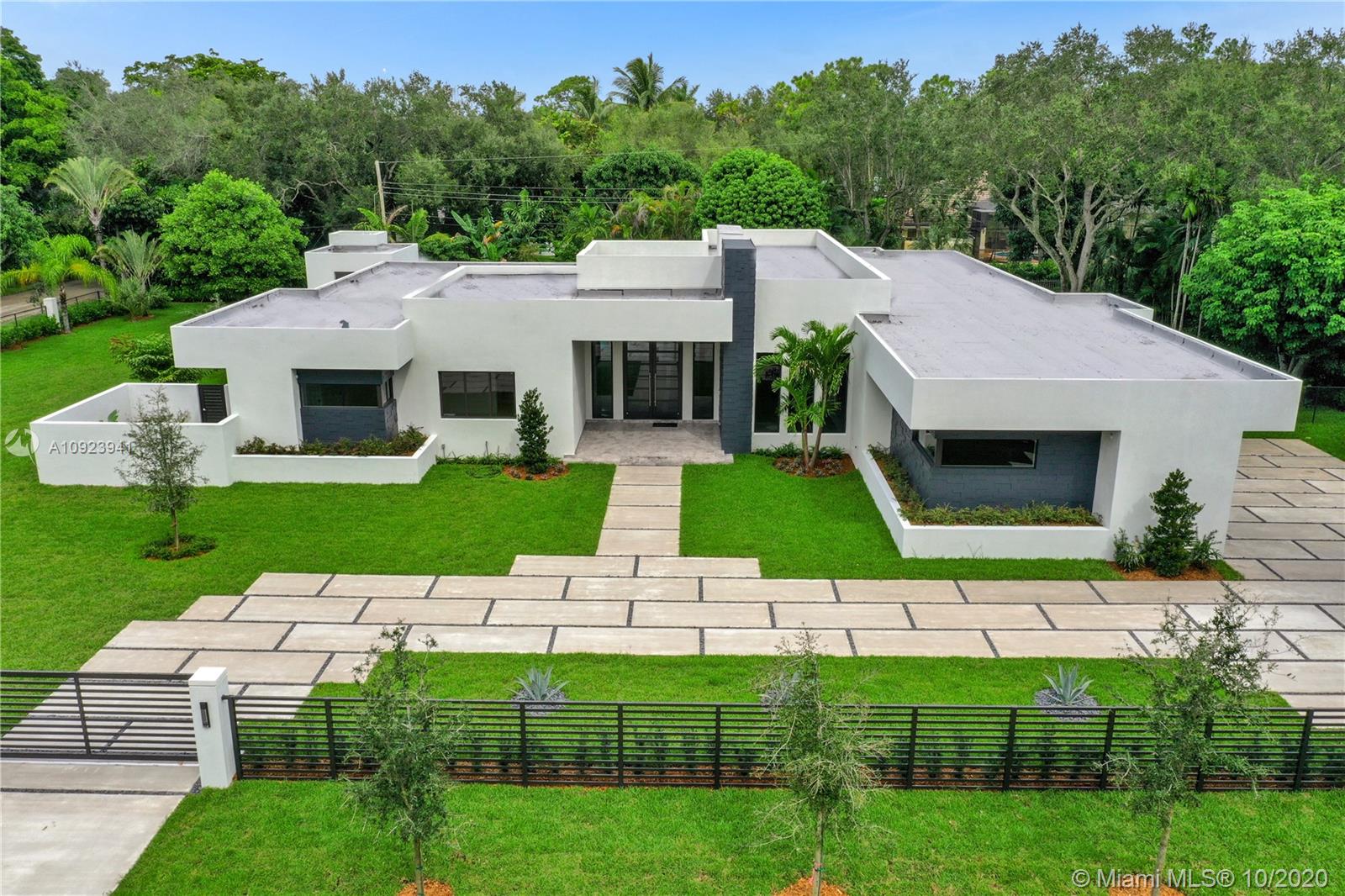 New Modern/Contemporary Home in Desirable North Pinecrest situated on a 34k SF corner lot W/ a total of 6880 SF of construction. This Luxury home showcases 6BR and 7.5BA with 5,422 SF of Living area. Featuring a Gourmet Kitchen W/ Miele Appliances, Great for entertaining or your private retreat with open floor Plan that flows directly to a huge terrace, Pool, Jacuzzi and Cabana area which includes outdoor summer kitchen. The Master Suite features grand entrance, 2 large walk-in closets w/ a stunning Marble bathroom, a soaking tub, double sinks, large shower, & private terrace. Living area has LED fireplace, Wine Cellar and is smart house ready. Maid's quarters, spacious 3 car garage w/ side entrance and large driveway for ample parking. No details overlooked in this Home, easy to show.