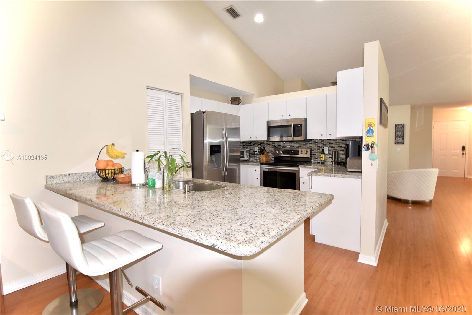 SAN REMO AT WESTON BEAUTY, GREAT LOCATION, Move-in condition! 3 BR, 2 bath, with AN AMAZING WATER-LAKE VIEWS, kitchen with lake views opens to family room with lake views, nice utility room with sink, Remodeled kitchen includes granite counters, & stainless appliances. Remodeled master bath includes two sinks, and shower enclosure. Laminated Flooring in living areas and in bedrooms. 'A' Rated Schools! Subdivision Amenities include pool and playground. Walking distance to shopping, banking, restaurants & more! Great location!