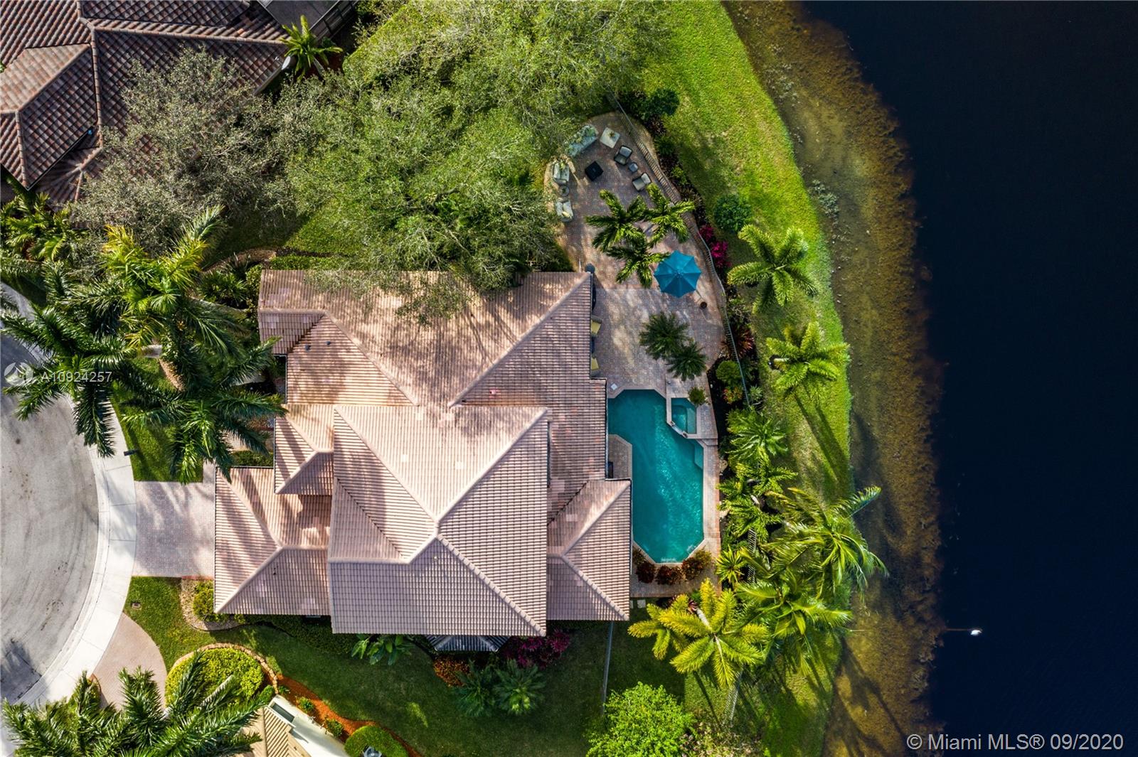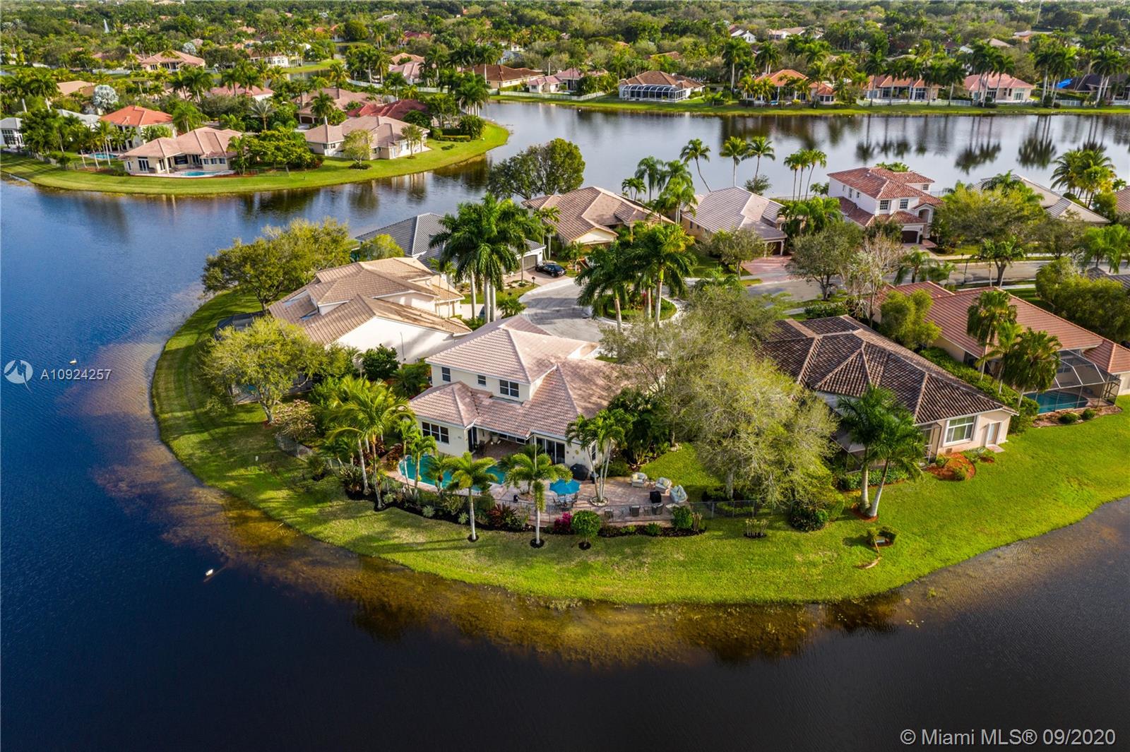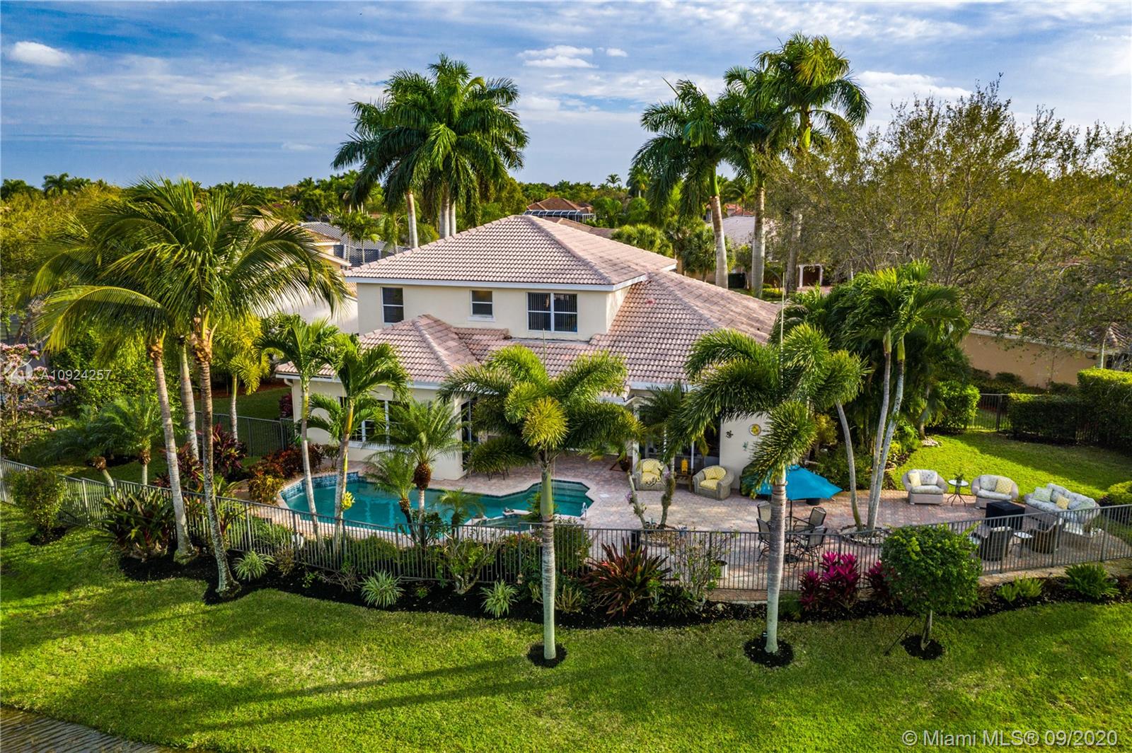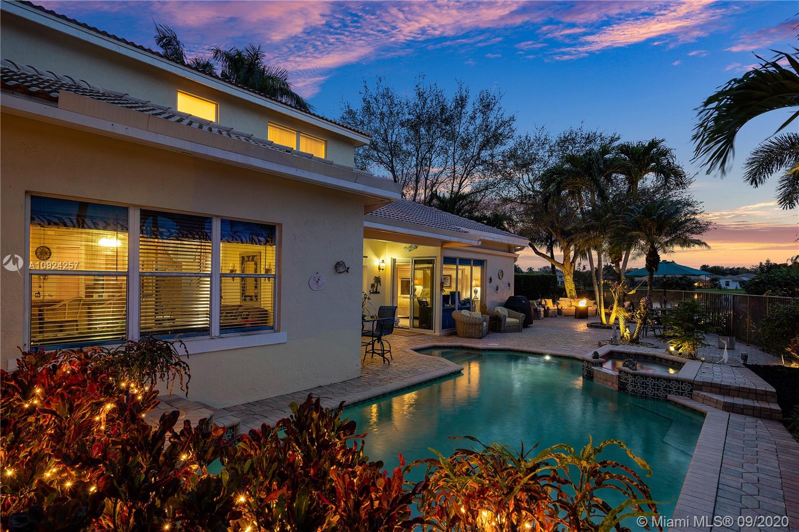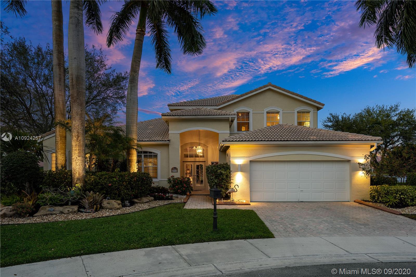 Weston Hills C.C. 16,095 sf pie shaped cul-de-sac lot w/gorgeous lake views 5B/4B 3834 Sq ft home boasts a Lg extended paved patio custom pool waterfalls new led lights, hot tub fenced Perfect for Entertaining! Surround sound system! Grand Master BR 1st Fl w/3 BR upstairs w/5th BR downstairs used as office/den w/custom closets/built-in Lg neutral diagonal Tile throughout, Carpet in BR. Spacious, Huge dine in Gourmet Kitchen w Granite/New Appliances/extra tall cabinetry/wine cooler/Lg island & Bar/Built in Elec. Sweeper/Vacuum System Formal Dining & Living Room WHCC an exclusive family-oriented community in City of Weston w/2 pristine 18-hole championship golf courses, known as Weston Hills Golf and Country Club. "A" rated schools and easy access to the hwy. AC's 5 yrs. Appraised 9/2020.