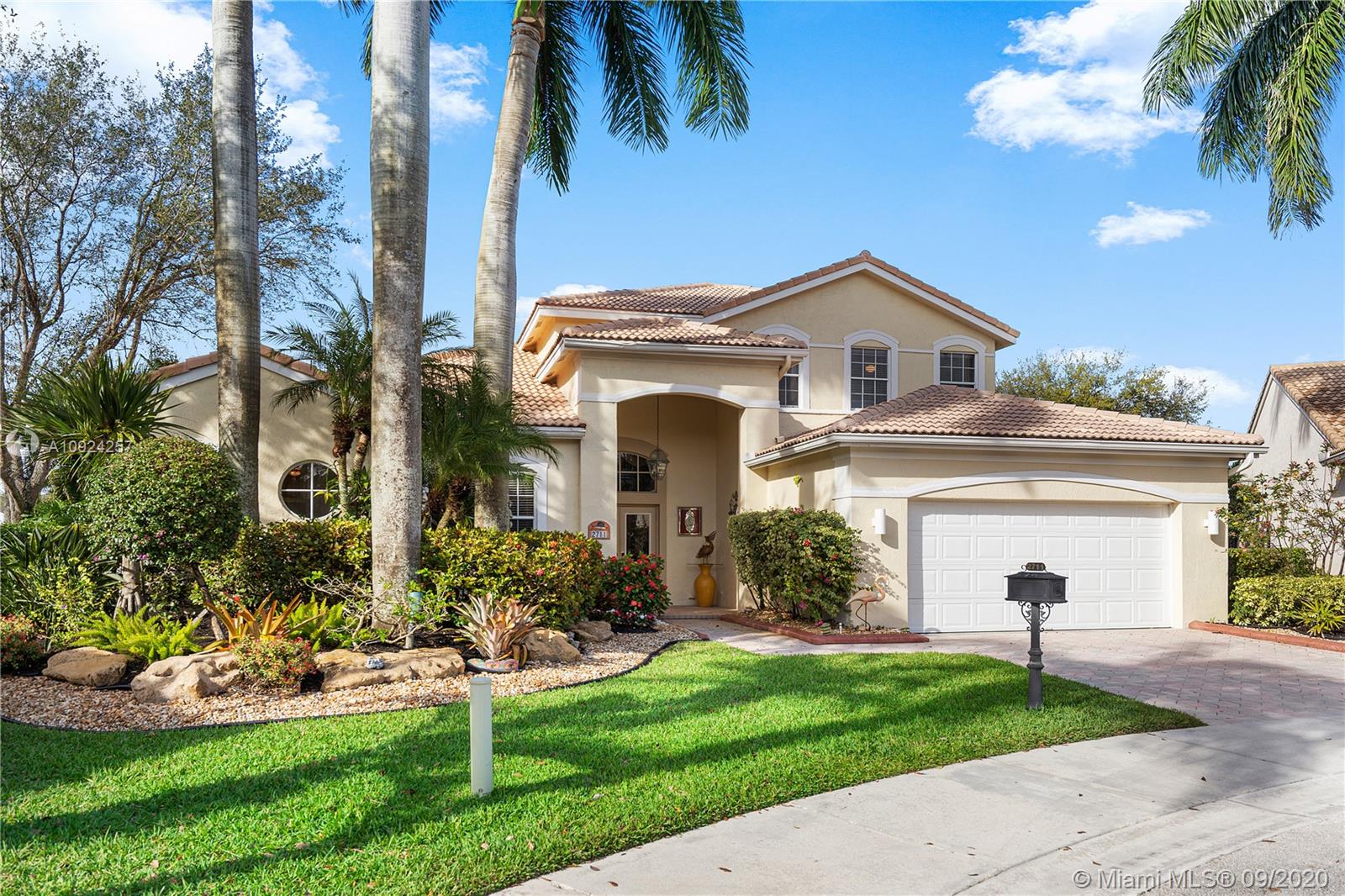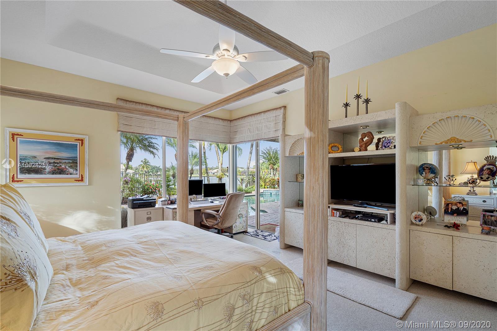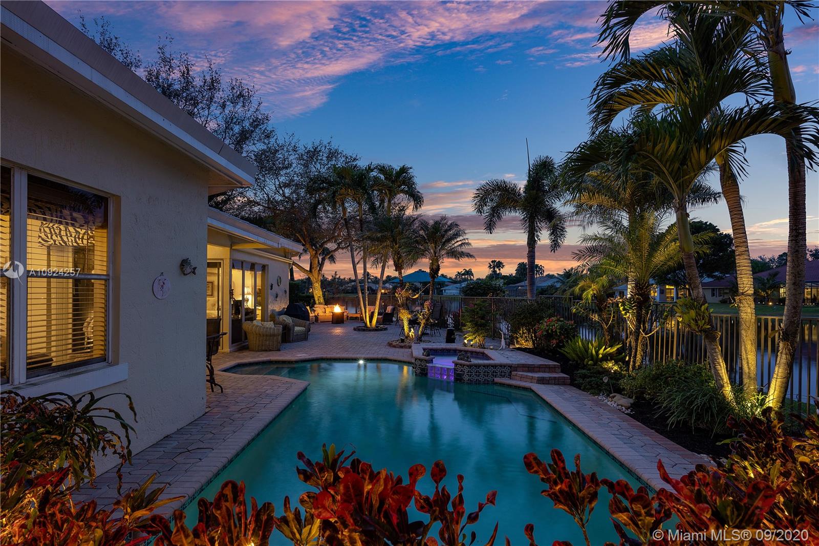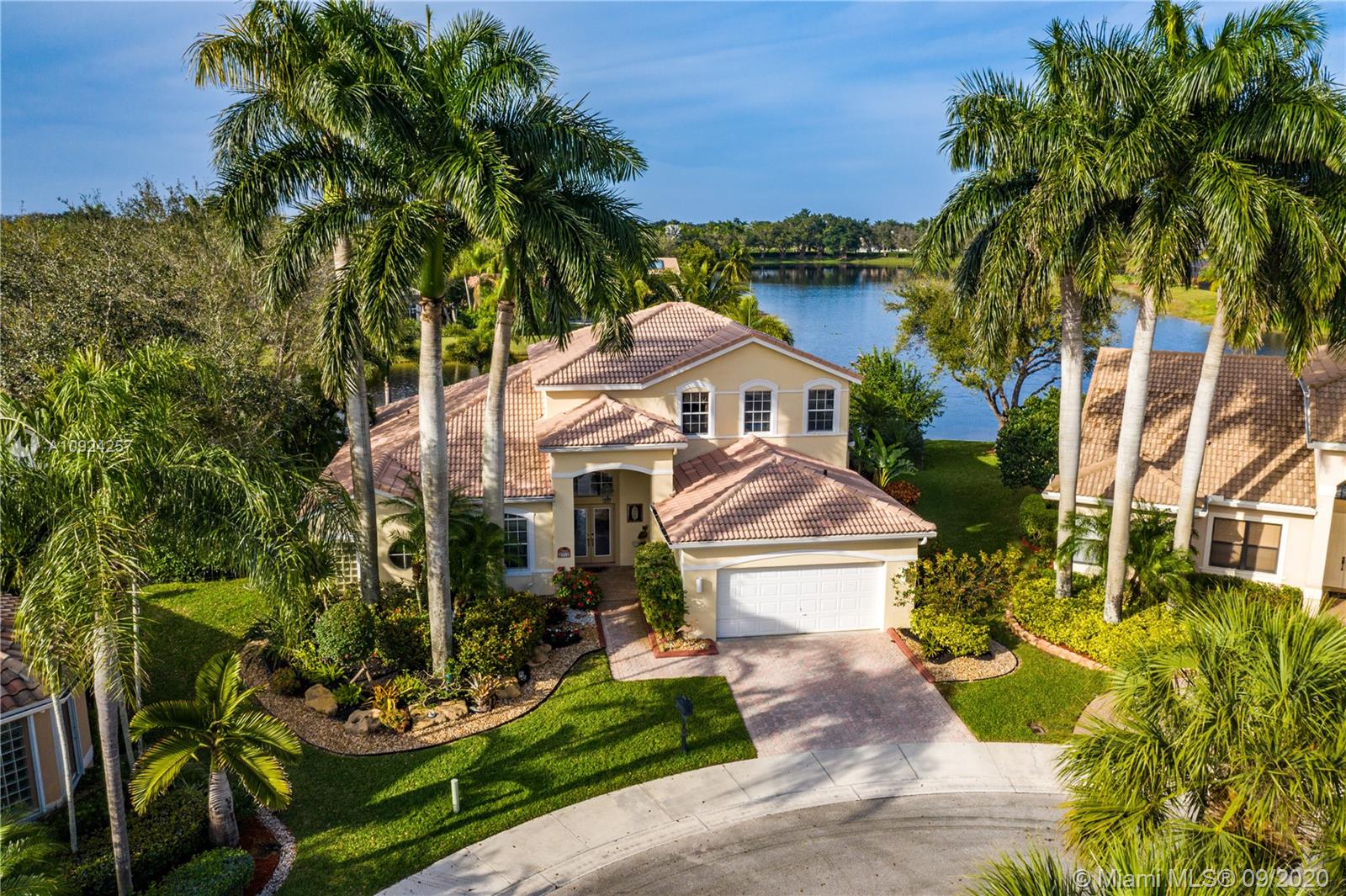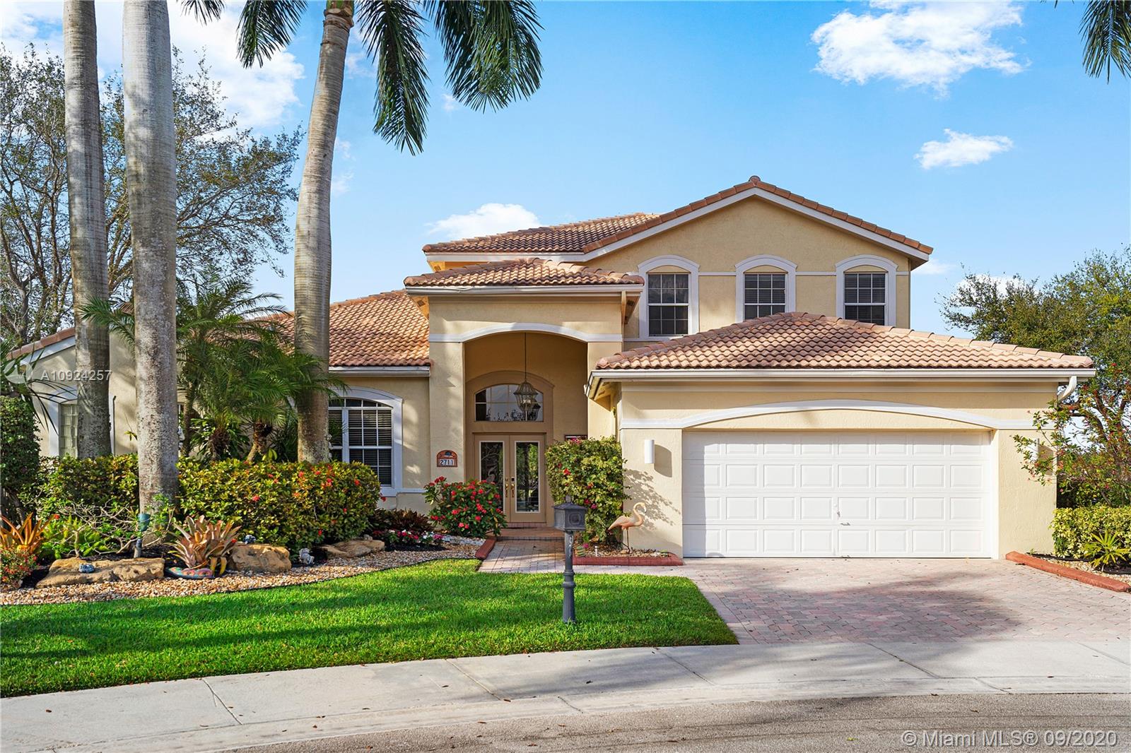Weston Hills C.C. 16,095 sf pie shaped cul-de-sac lot w/gorgeous lake views 5B/4B 3834 Sq ft home boasts a Lg extended paved patio custom pool waterfalls new led lights, hot tub fenced Perfect for Entertaining! Surround sound system! Grand Master BR 1st Fl w/3 BR upstairs w/5th BR downstairs used as office/den w/custom closets/built-in Lg neutral diagonal Tile throughout, Carpet in BR. Spacious, Huge dine in Gourmet Kitchen w Granite/New Appliances/extra tall cabinetry/wine cooler/Lg island & Bar/Built in Elec. Sweeper/Vacuum System Formal Dining & Living Room WHCC an exclusive family-oriented community in City of Weston w/2 pristine 18-hole championship golf courses, known as Weston Hills Golf and Country Club. "A" rated schools and easy access to the hwy. AC's 5 yrs. Appraised 9/2020.