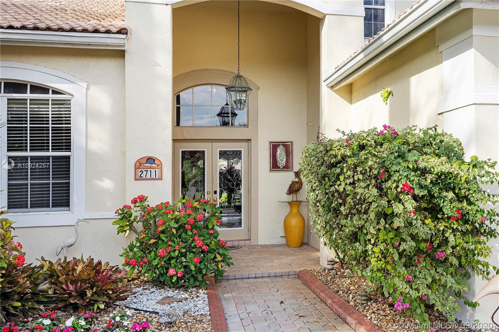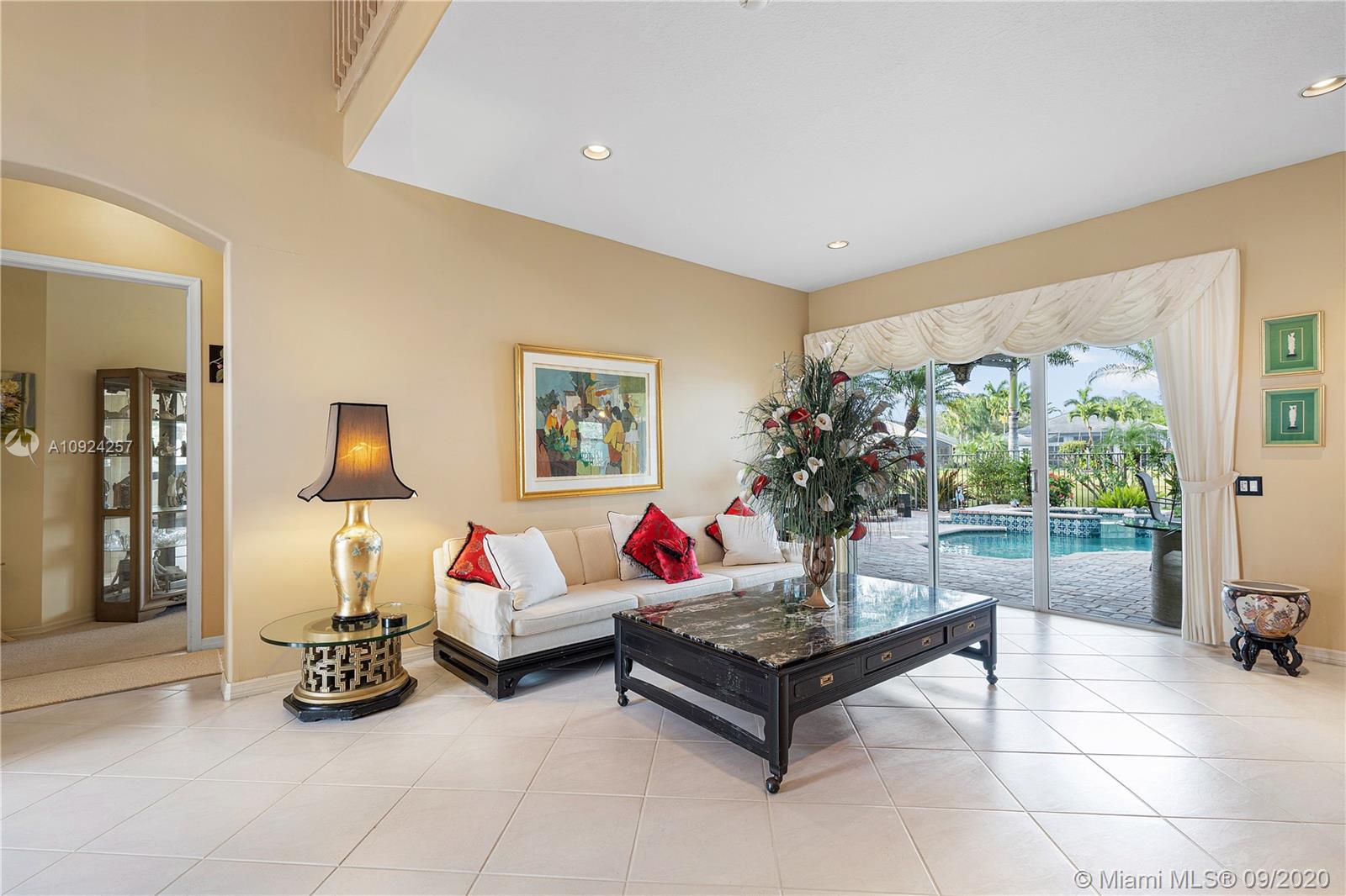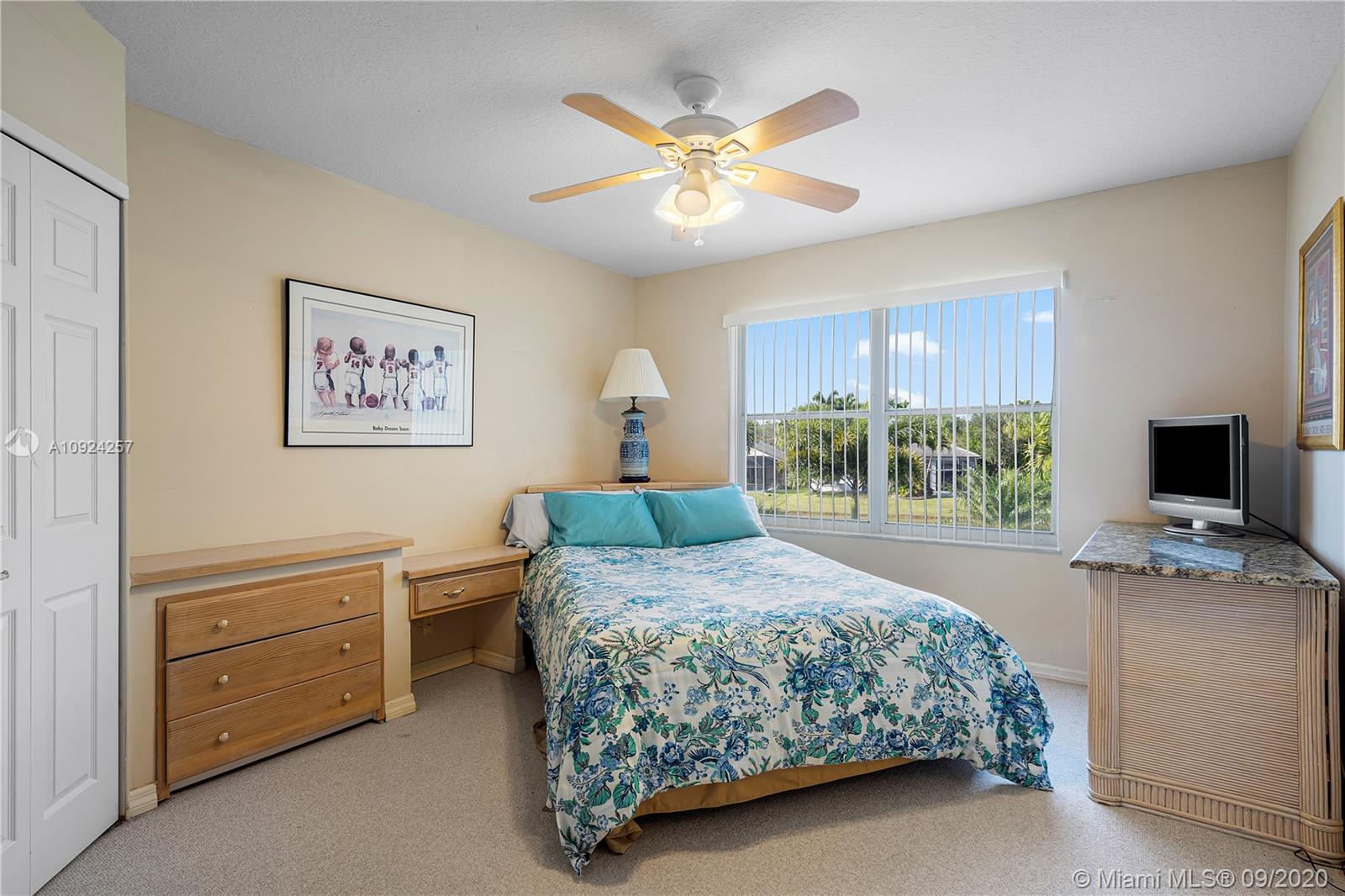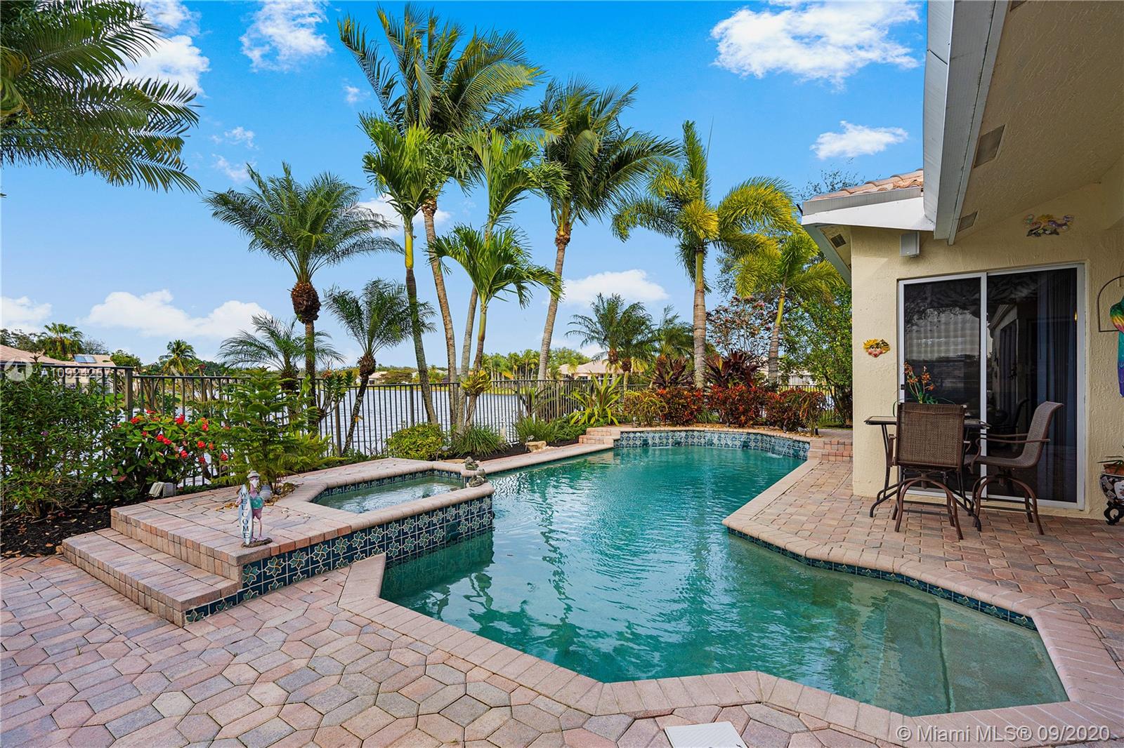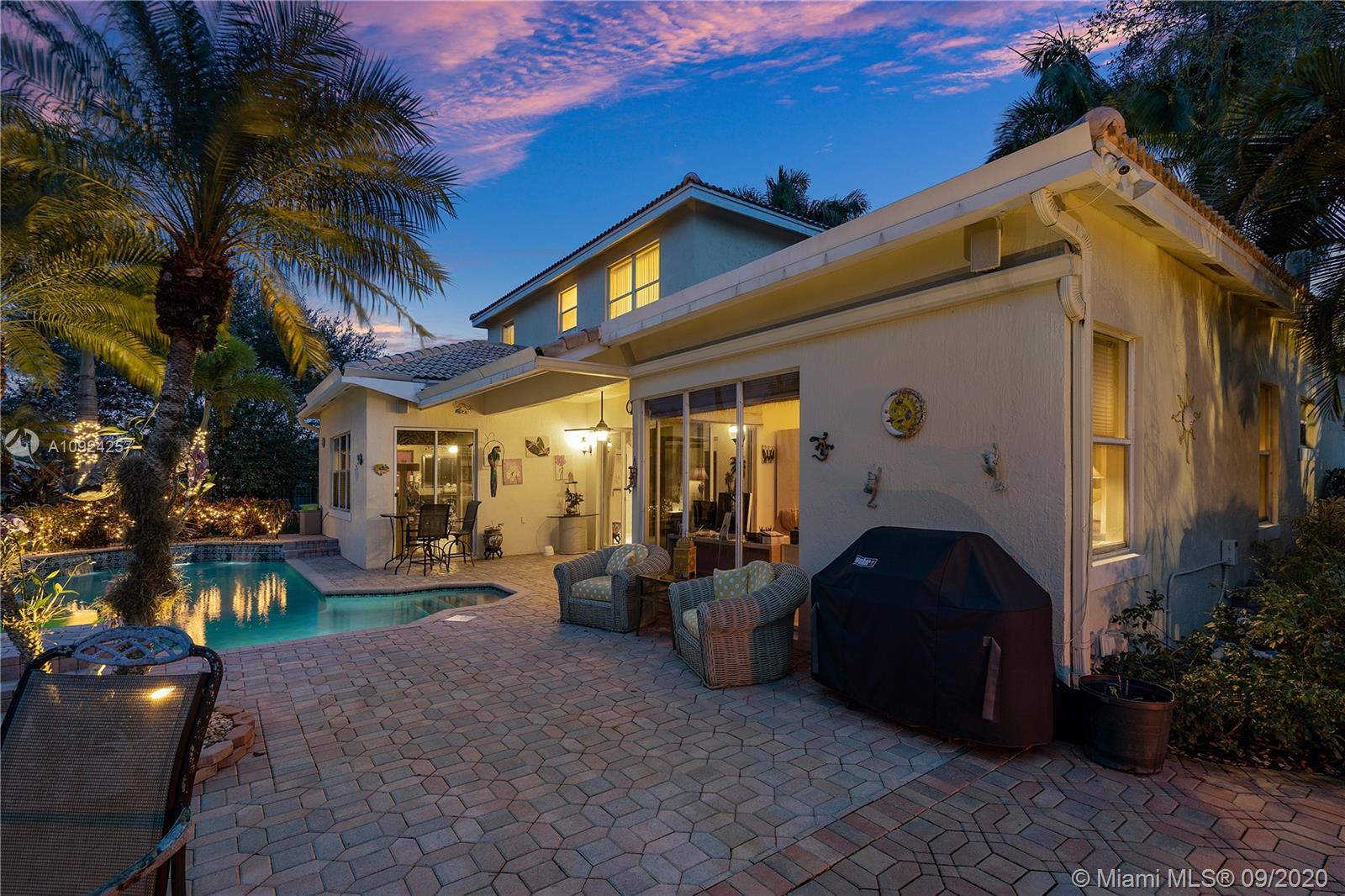 Weston Hills C.C. 16,095 sf pie shaped cul-de-sac lot w/gorgeous lake views 5B/4B 3834 Sq ft home boasts a Lg extended paved patio custom pool waterfalls new led lights, hot tub fenced Perfect for Entertaining! Surround sound system! Grand Master BR 1st Fl w/3 BR upstairs w/5th BR downstairs used as office/den w/custom closets/built-in Lg neutral diagonal Tile throughout, Carpet in BR. Spacious, Huge dine in Gourmet Kitchen w Granite/New Appliances/extra tall cabinetry/wine cooler/Lg island & Bar/Built in Elec. Sweeper/Vacuum System Formal Dining & Living Room WHCC an exclusive family-oriented community in City of Weston w/2 pristine 18-hole championship golf courses, known as Weston Hills Golf and Country Club. "A" rated schools and easy access to the hwy. AC's 5 yrs. Appraised 9/2020.