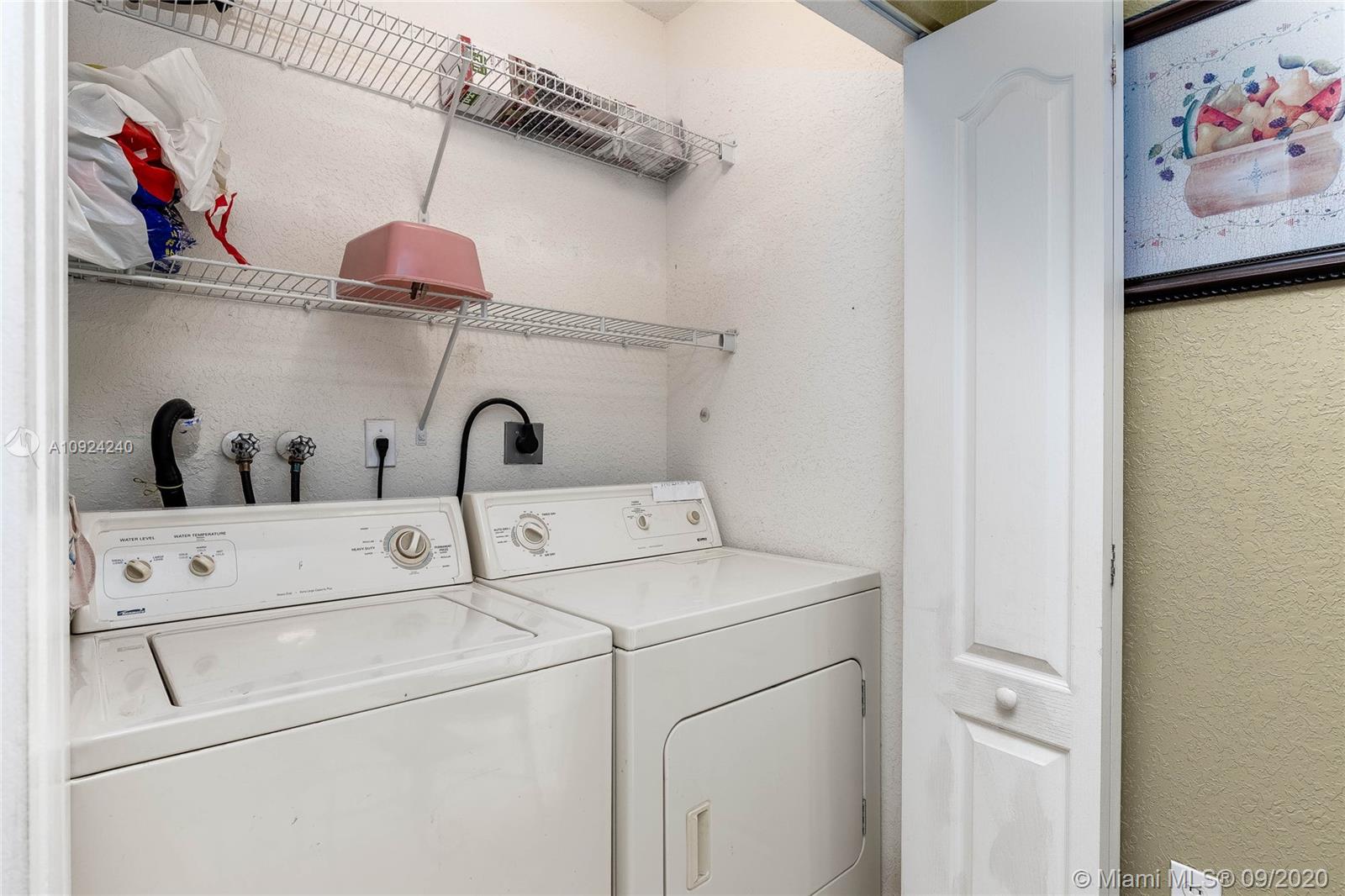 Beautiful and meticulously maintained 2 bedrooms, 2.5 bathrooms Townhouse in the community of Villas Canarias II in Hialeah Gardens. The unit has tiles throughout the first and second floor. Staircase has carpets that are extremely clean. Large master bedroom with balcony and on suite bathroom, 2nd bedroom has roomy deep closet, storage closet under staircase, New Hot Water heater 2019 washer/dryer in the unit, Accordian shutters on all windows and sliding doors, 2 parking spaces right in front of unit, low HOA (covers exterior, no amenities), covered patio with great space for entertaining. This gem is located near Westland Mall, major highways (I-75 and 836 expressway), Miami Dade College, restaurants, shops, supermarkets and much more. No special assessments, Community has NO RESERVES