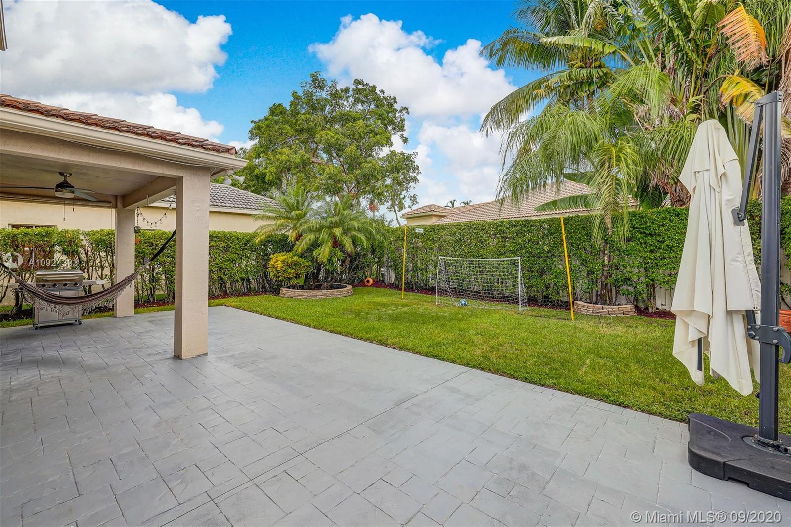 Open and bright floor plan, 5 beds, 3.5 baths home in The Meadows. Over-sized patio with plenty room for a pool, covered area & remote-controlled awning. Beautiful kitchen, breakfast area, modern granite counter tops & back splash, upgraded SS appliances, Reverse Osmosis WF. Bright Master bedroom/bathroom. Custom-made built-in closets. Indoor laundry room with cabinet storage. 2 attic storages. Accordion Shutters. Smart phone-controlled AC Thermostat and Garage door opener. Freshly painted outside. Rain gutters. Gated community with Swimming Pool, Basketball Court and Playground. Walking distance to Elementary School, and just steps to Middle/High School Bus Stop. Great Location. Enjoy beautiful landscape & walking path around amazing lake. Excellent condition, Ready to Move In!