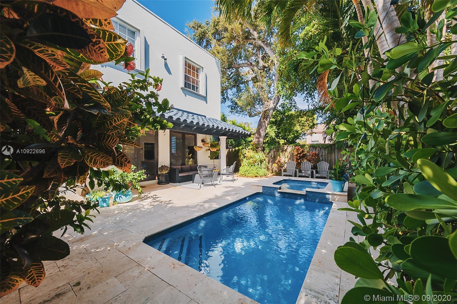 This 2 story tropical paradise in the heart of Coconut Grove can be yours! 4 Bedroom, 2 ½ bath pool home. The main floor features eat-in remodeled custom wood Chef’s kitchen with gas stove, Jenn-Air appliances, quartzite counter tops, integrated refrigerator, built-in natural walnut dining table, coffee bar area with wine fridge. Italian White Oak wood floors throughout first floor and bedroom. Large laundry room with storage. The outdoor entertainment space encompasses a covered terrace, travertine pool deck, jacuzzi, Argentinian style BBQ charcoal/wood grill and luscious landscaping. Security cameras throughout property. 2 Electric vehicle charging stations. Walking distance to parks, bay, shops and restaurants.