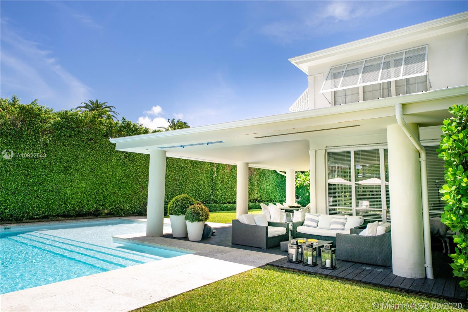 Palm Beach meets Miami Beach! Situated in one of Miami’s most exclusive gated communities, Sunset Island 3, this stately & sophisticated home boasts spacious light & bright interiors, 3,823 Total SF, 4bds & 3 ba on oversized 11,475 SF corner lot. Professional lush landscaping w/ soaring manicured hedges surrounds stunning covered terrace, pool area & green space affording the utmost privacy. Top-of-the-line lighting by Kreon illumination throughout. Gourmet Kitchen w/ Miele appliances & custom Pogenpohl cabinetry. Designer bathrooms by Agape, Boffi and Vola. Garage converted into large den/party room w/ separate entrance. Walk to all your favorites, less than a mile from Sunset Harbour, Dining, Shopping, Publix / Fresh Market, Barry’s, family friendly parks, Golf Course & Lincoln Rd..