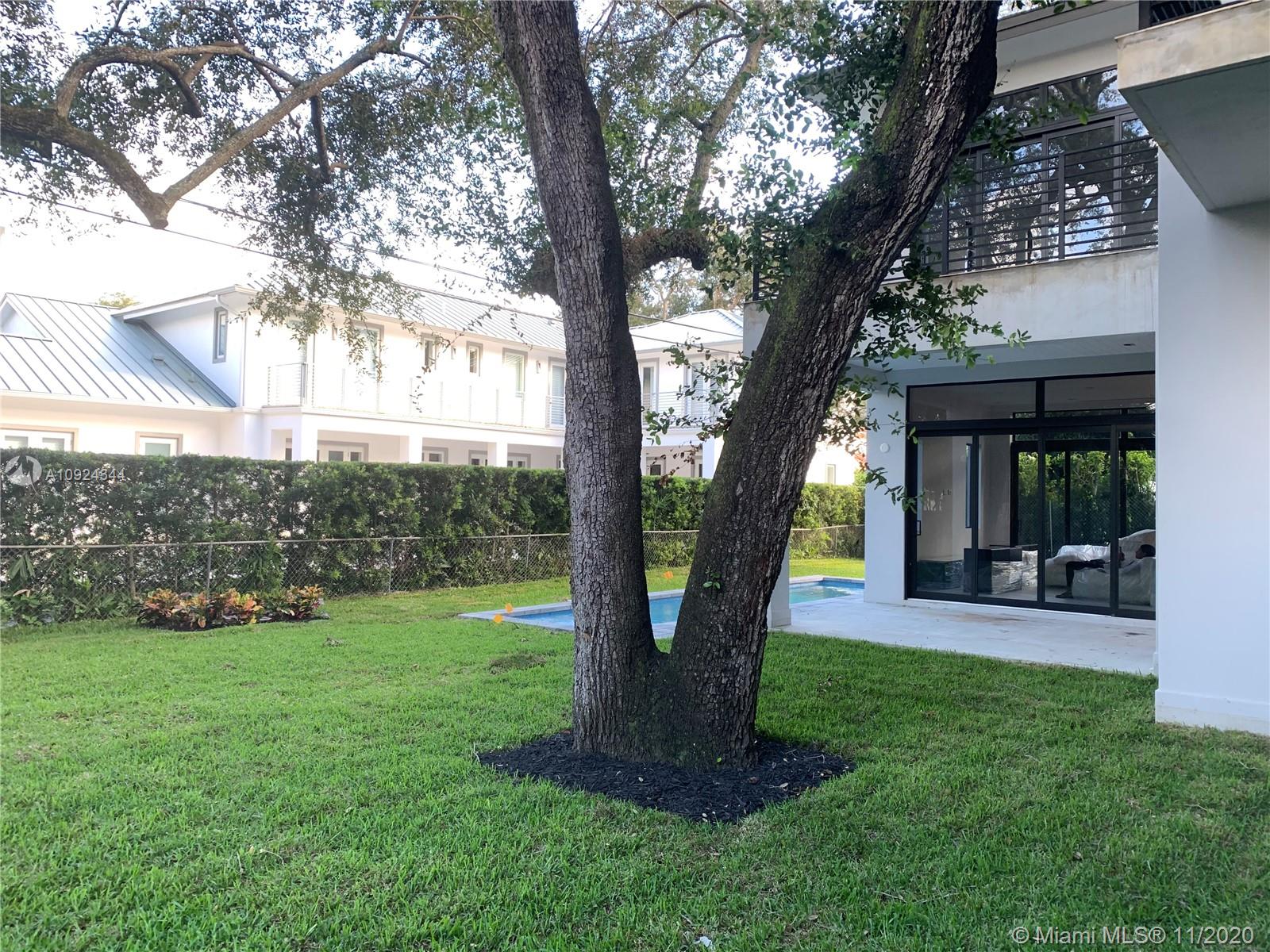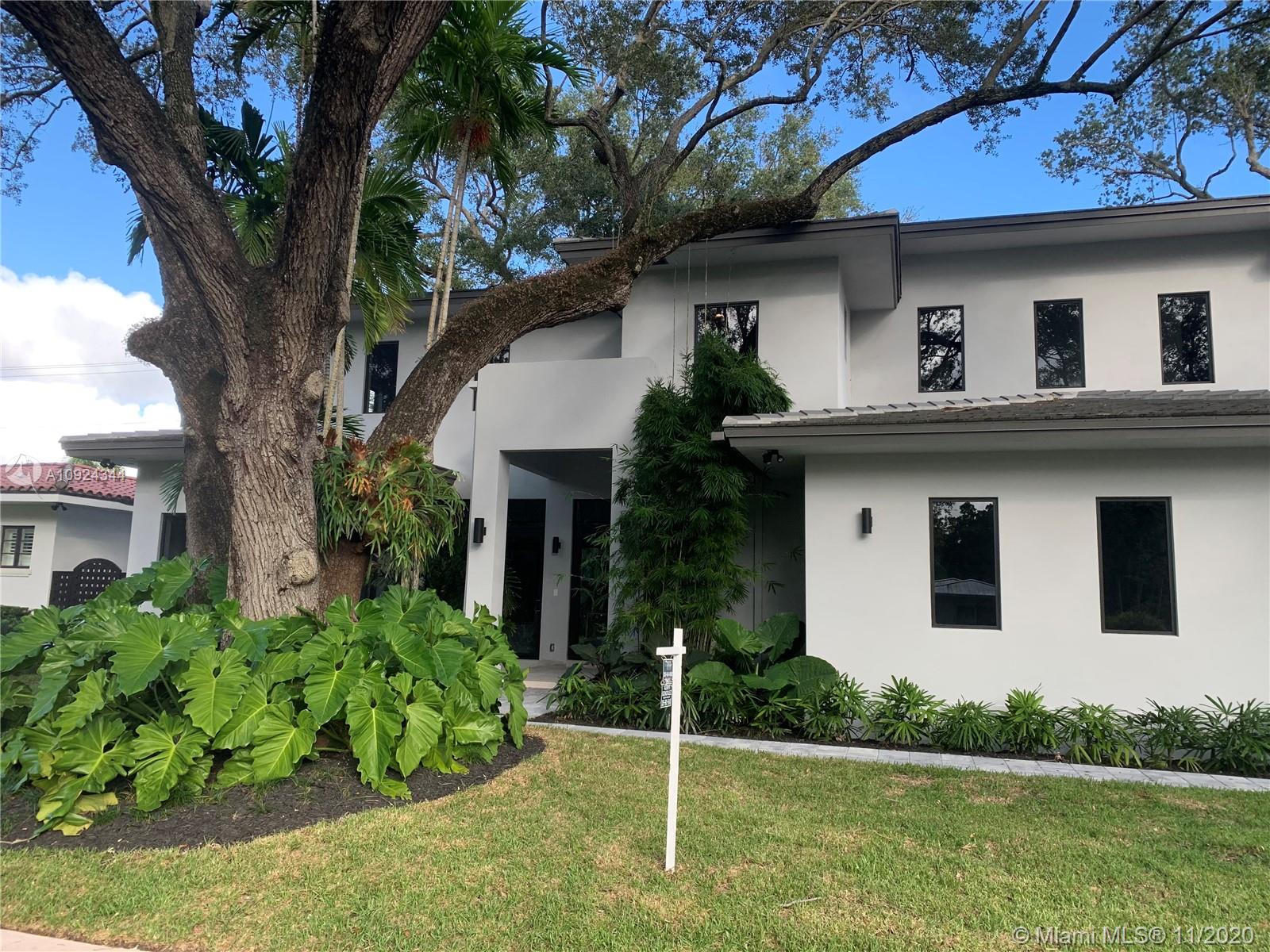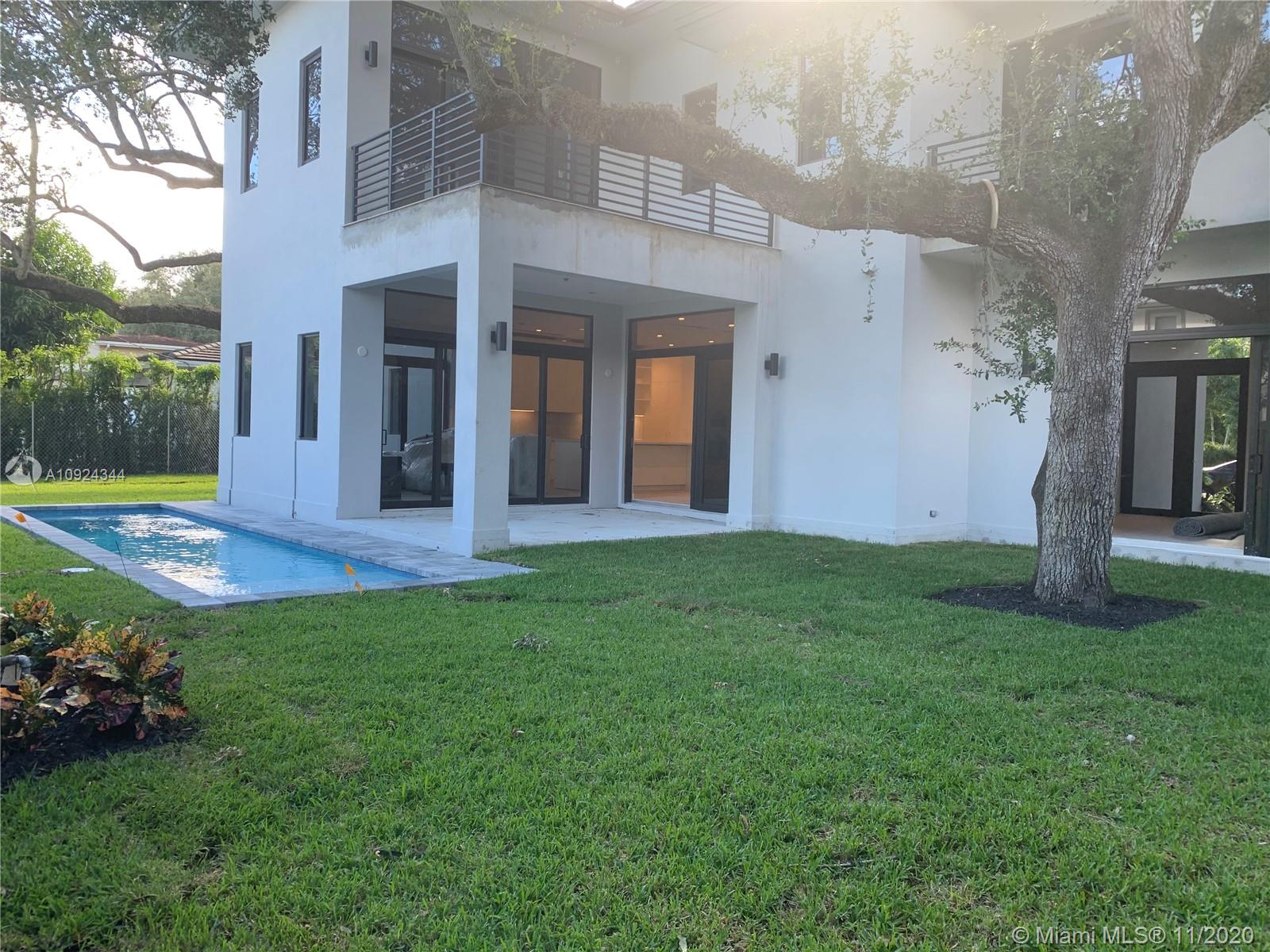 Brand new construction almost ready! Stunning contemporary design features 6 bedrooms 6 & 1/2 baths, situated among mature oaks, lap pool and lush tropical vibe. Perfectly located on a quiet picturesque South Coral Gables street. Clean modern lines and open spaces offer an effortless indoor outdoor transition for entertaining. Showcase gourmet kitchen with Meile appliances highlights the open concept. Italian porcelain tile and European wide plank oak floors, luxurious master and three additional suites all on 2nd floor, guest suite and maid/gym on 1st floor. 305 Luxury Living at its best.