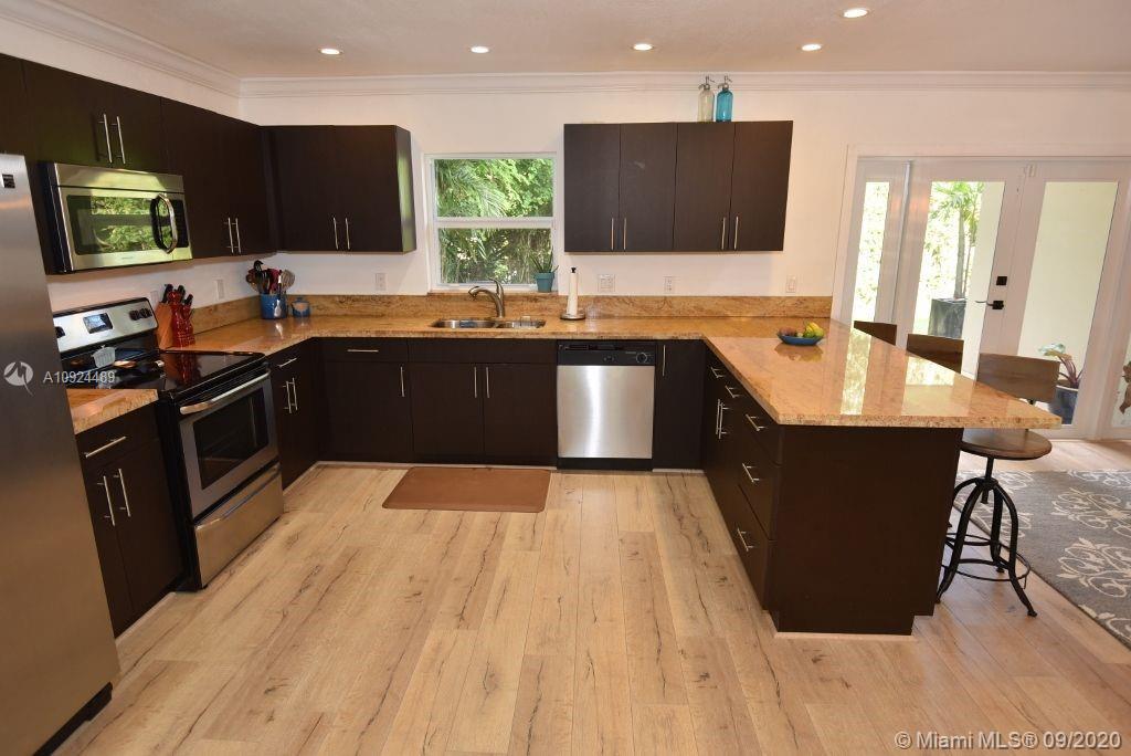 Updated in Coral Gables! Come see this 1978 built 3Bdrm/2 Baths/ 1C-gar with over 1,600 SF home that has been very tastefully updated with: New kitchen & SS Appliances, a snack/Bar-counter top, that totally says South Florida casual, ceramic tile floors that look like wood, all Impact windows/Doors, inside Laundryroom with new LG Washer/Dryer & Pantry, French Doors lead to your nice patio with a fenced backyard with your own avocado tree. The roof was replaced 6 years ago! Look at the pictures online!