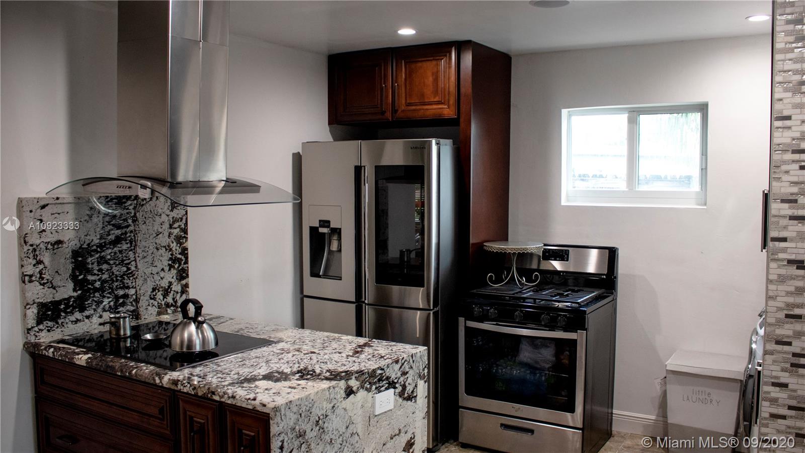 This updated gem with plenty of patio space is located in central Hollywood, just a short drive from the beach, airport, and the Hardrock Casino. Kitchen has a induction cooktop laying ontop of a granite piece with a gorgeous waterfall edge! All granite countertops in the kitchen as well backsplash. Fridge, Dishwasher, Double Oven is stainless with Samsung technology in addition to washer and dryer, all included. Cabinets in all the kitchen are charming Italian red wood with a conveniently placed lazy Susan. Recently replaced A/C system, as well as high impact doors and windows throughout the house. A large portion of the roof has been replaced along with new gutter system all around! Both bathrooms have been updated with granite vanities, and the guest bathroom has jet powered bathtub.