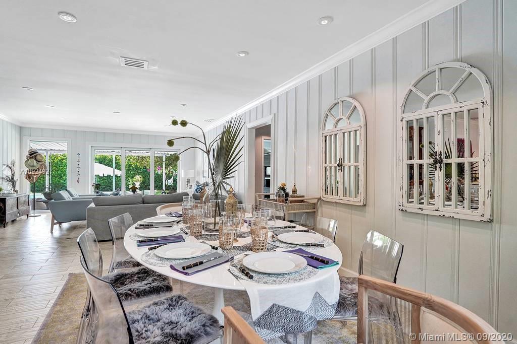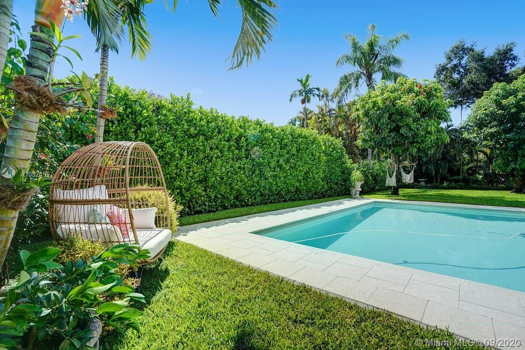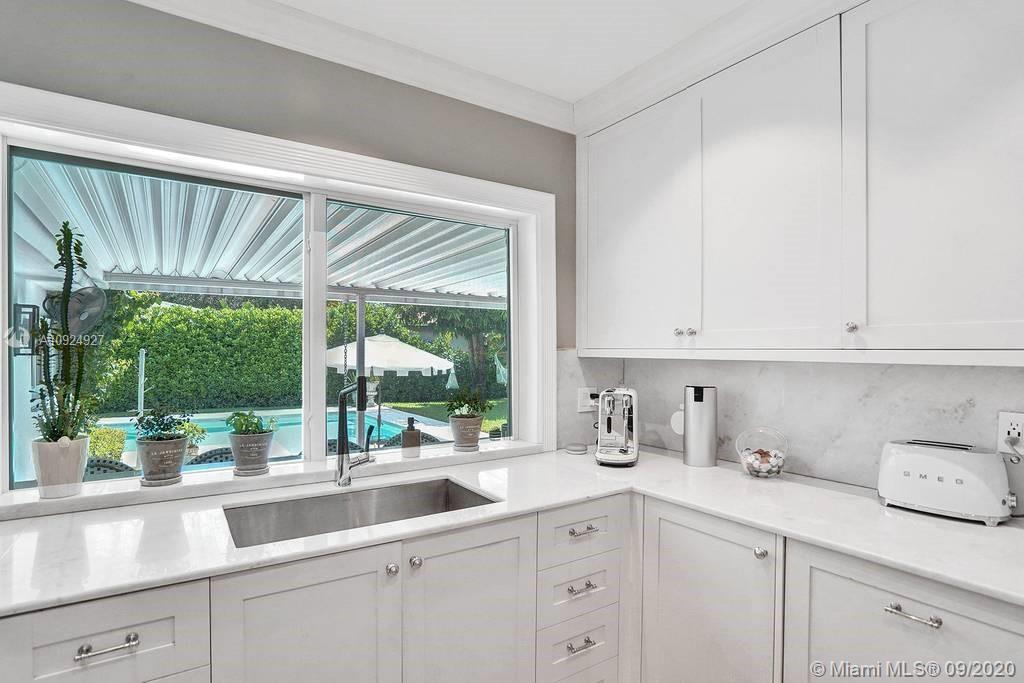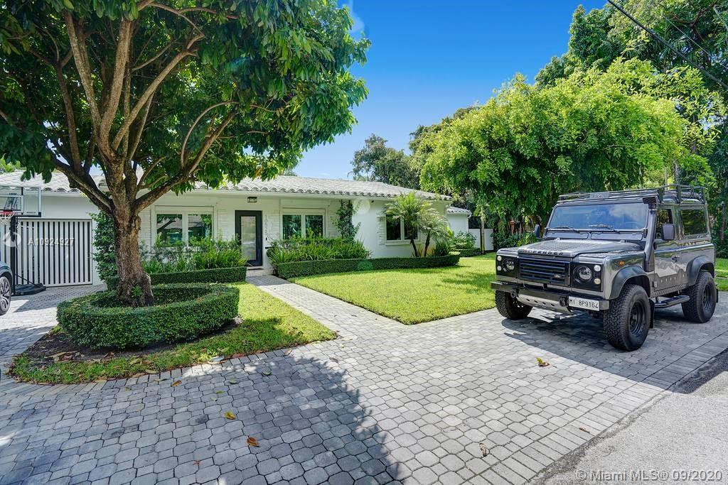 STUNNING AND IMMACULATE 3/2 PERFECT FOR ENTERTAINING IN THE HEART OF MIAMI SHORES!. Updated home boasts a gorgeously manicured OVERSIZED LOT like a Tuscan getaway. Soak in NEW HEATED SALT WATER POOL or relax under the pergola with new high top counter. Formal living room, family room and dining area with beautiful light and a bright white kitchen with European appliances. Spacious Master bedroom, en-suite bathroom, walk in closet, and additional large wardrobe closet. 2 other bedrooms are well sized and very bright. Includes one car garage and a separate room perfect for “Home Office”. Upgrades include built-in home generator, smart home functions and PGT High Impact Windows. Impeccable landscaping, quiet cul-de-sac, conveniently located to the shops and restaurants of Miami Shores.