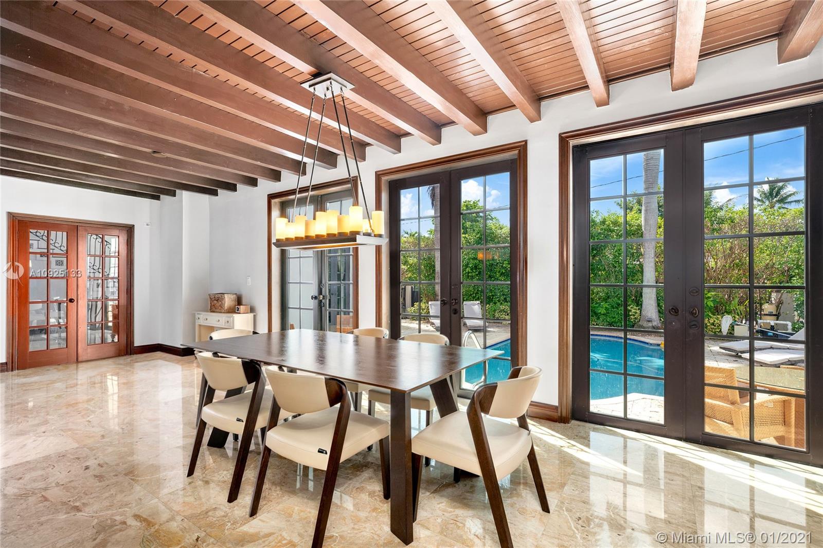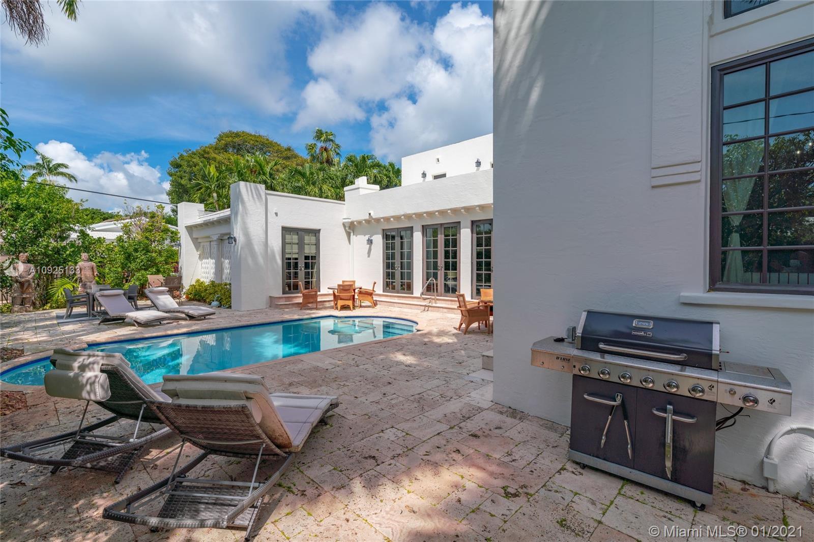 Luxury, elegance, and comfort are carried throughout this Grand Mediterranean Masterpiece. Timelessly designed with marble, granite, wood beam ceilings, and millwork, the craftsmanship of this villa is unparalleled. Entering, you’ll be greeted by the dramatic 16” foot ceilings in the main living room together with multiple teaks and arched windows bringing great room light. Keep floating to the open dining/kitchen area where once again you have great light coming in from the patio/pool area. In addition to this expansive open-concept space, the grand kitchen island is perfect for entertaining your family and guests. The perfect flow of this 5-bedroom home is ideal for a large family. You'll be happy to call this your next home.