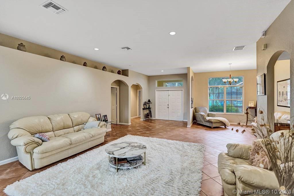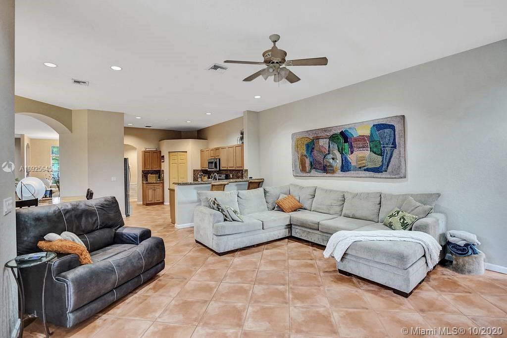 Triple Split 5 Bedroom 3 Full Bathroom Home In The Prestigious Community Of The Ridges with a guard gated entrance, walking distance to top schools this home features tiled floors throughout, wide open floor plan! 5th bedroom is being used as an office! Relax on the screened covered patio perfect for outside entertaining! **NEW IN 2020 - water heater, refrigerator in garage, microwave, ice maker, washing machine, pool pump, dishwasher** Association requires all pick up trucks to be in garage at night!