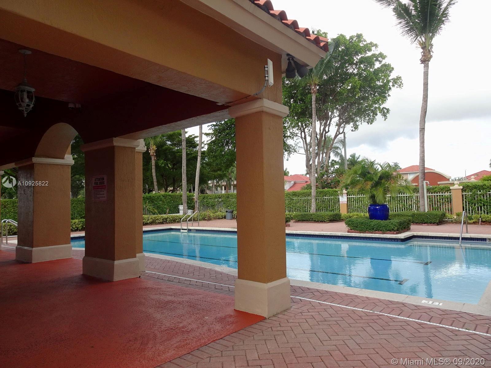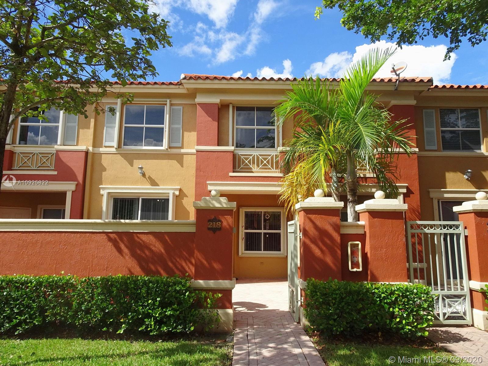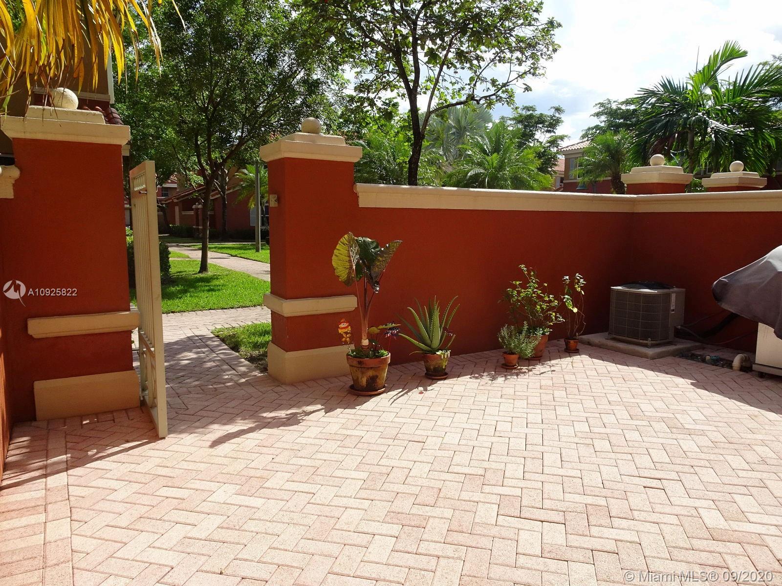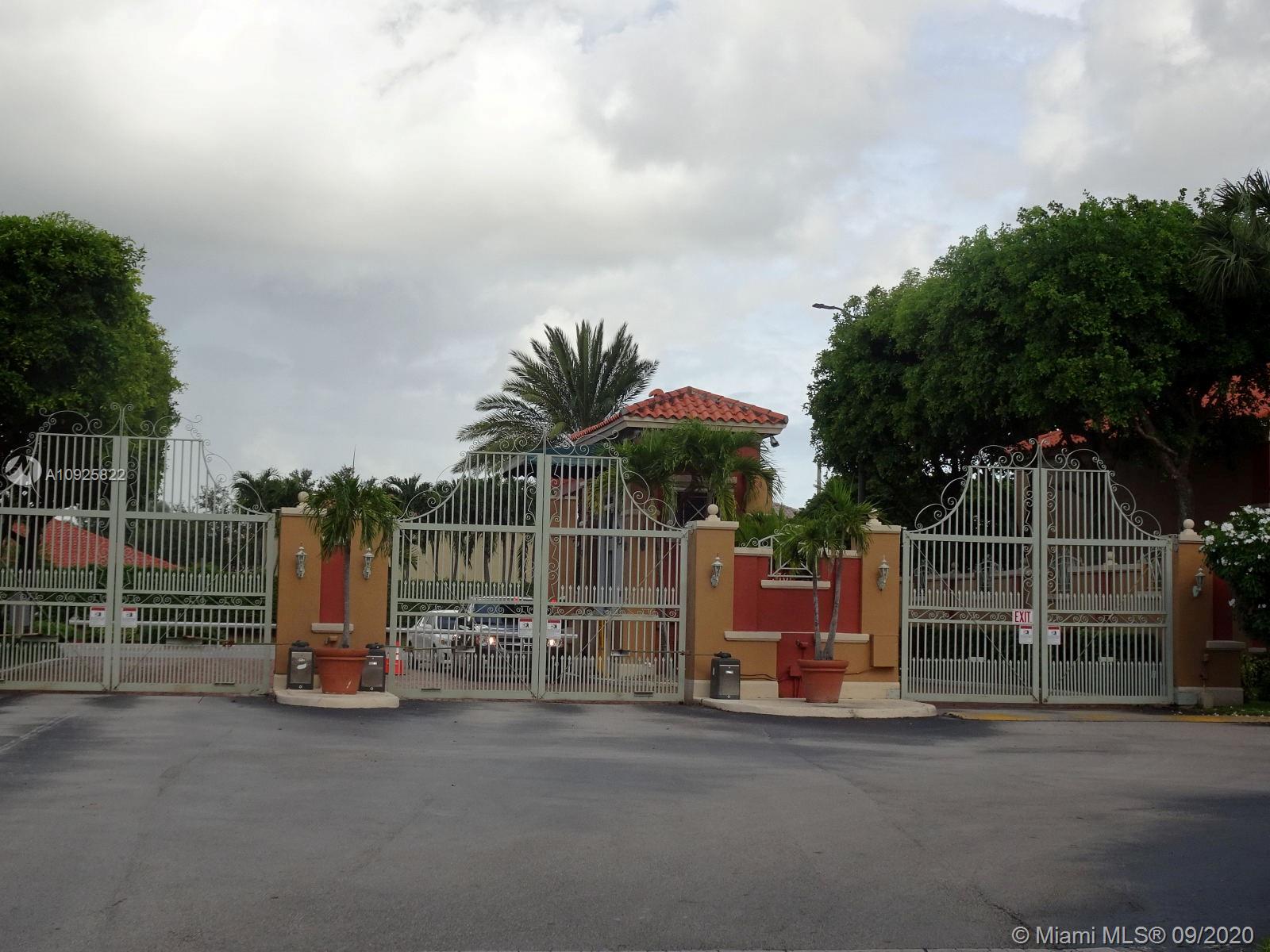Superb Location close to Eugenia B. Thomas school, FL turnpike exits, Doral Meadows & Legacy Parks, etc... Guard & Gated Community, 2-story condo townhome style with private gate, front entrance leading to a beautiful oversized front porch/courtyard with pavers (area as big as a patio), 2 bedroom/2.5 Bath, tile and laminate wood floors, Stainless Steel Appliances, Kitchen Granite counter top, snack counter, full size washer/dryer, spacious family and dining area, Accordion Shutters for hurricane protection, 2 cars maximum allowed, plenty guest parking, living area 980 sqft., HOA payment includes: water, roof replacement & exterior insurance. Community swimming pool, children playground, inside park, and more.... MLS Request to Listing Agent for Private In-Person Tour.