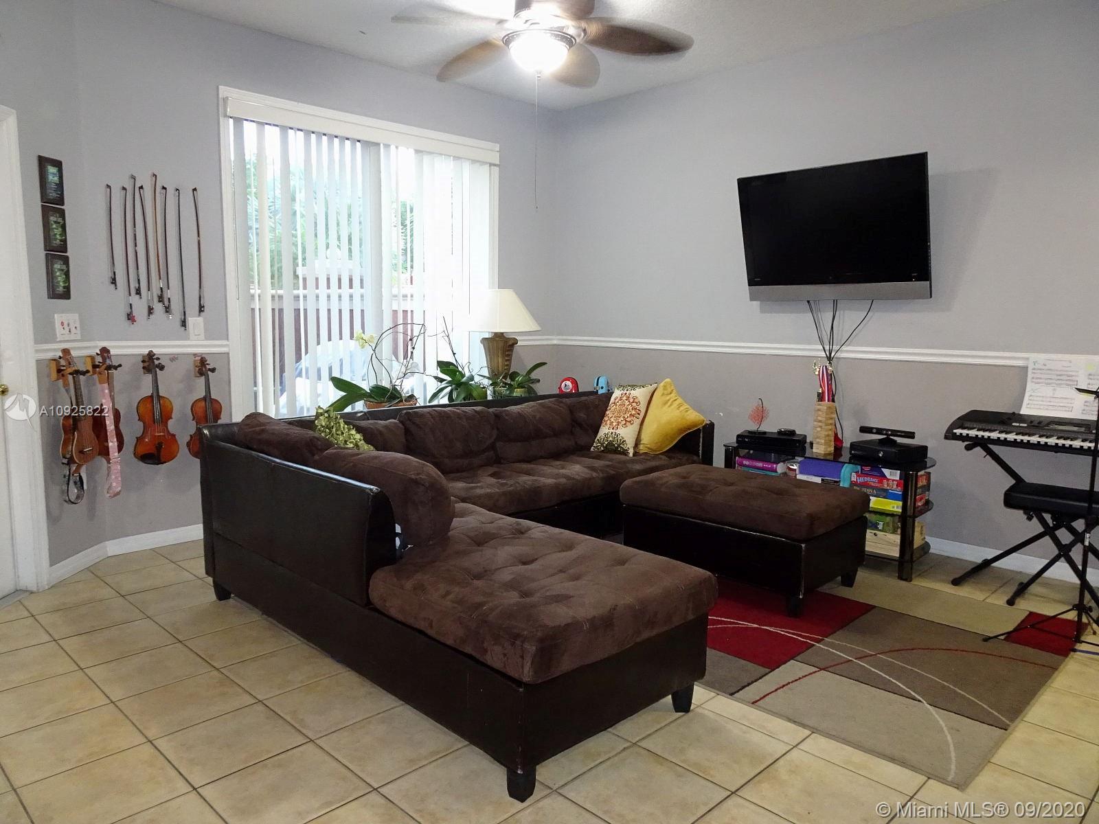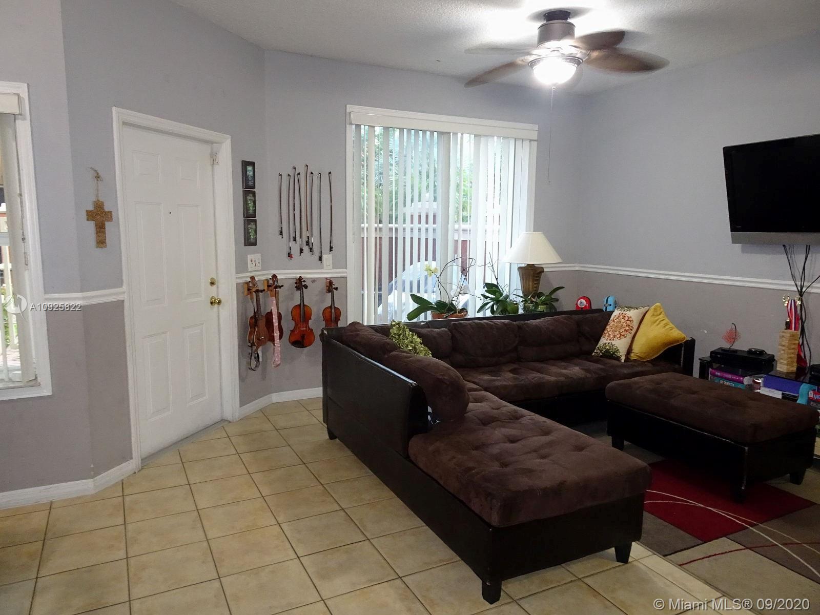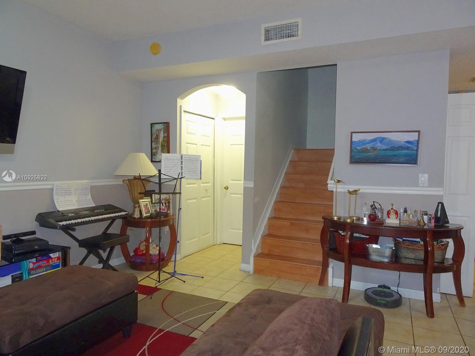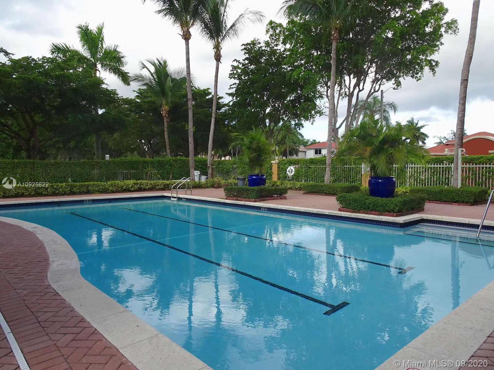 Superb Location close to Eugenia B. Thomas school, FL turnpike exits, Doral Meadows & Legacy Parks, etc... Guard & Gated Community, 2-story condo townhome style with private gate, front entrance leading to a beautiful oversized front porch/courtyard with pavers (area as big as a patio), 2 bedroom/2.5 Bath, tile and laminate wood floors, Stainless Steel Appliances, Kitchen Granite counter top, snack counter, full size washer/dryer, spacious family and dining area, Accordion Shutters for hurricane protection, 2 cars maximum allowed, plenty guest parking, living area 980 sqft., HOA payment includes: water, roof replacement & exterior insurance. Community swimming pool, children playground, inside park, and more.... MLS Request to Listing Agent for Private In-Person Tour.