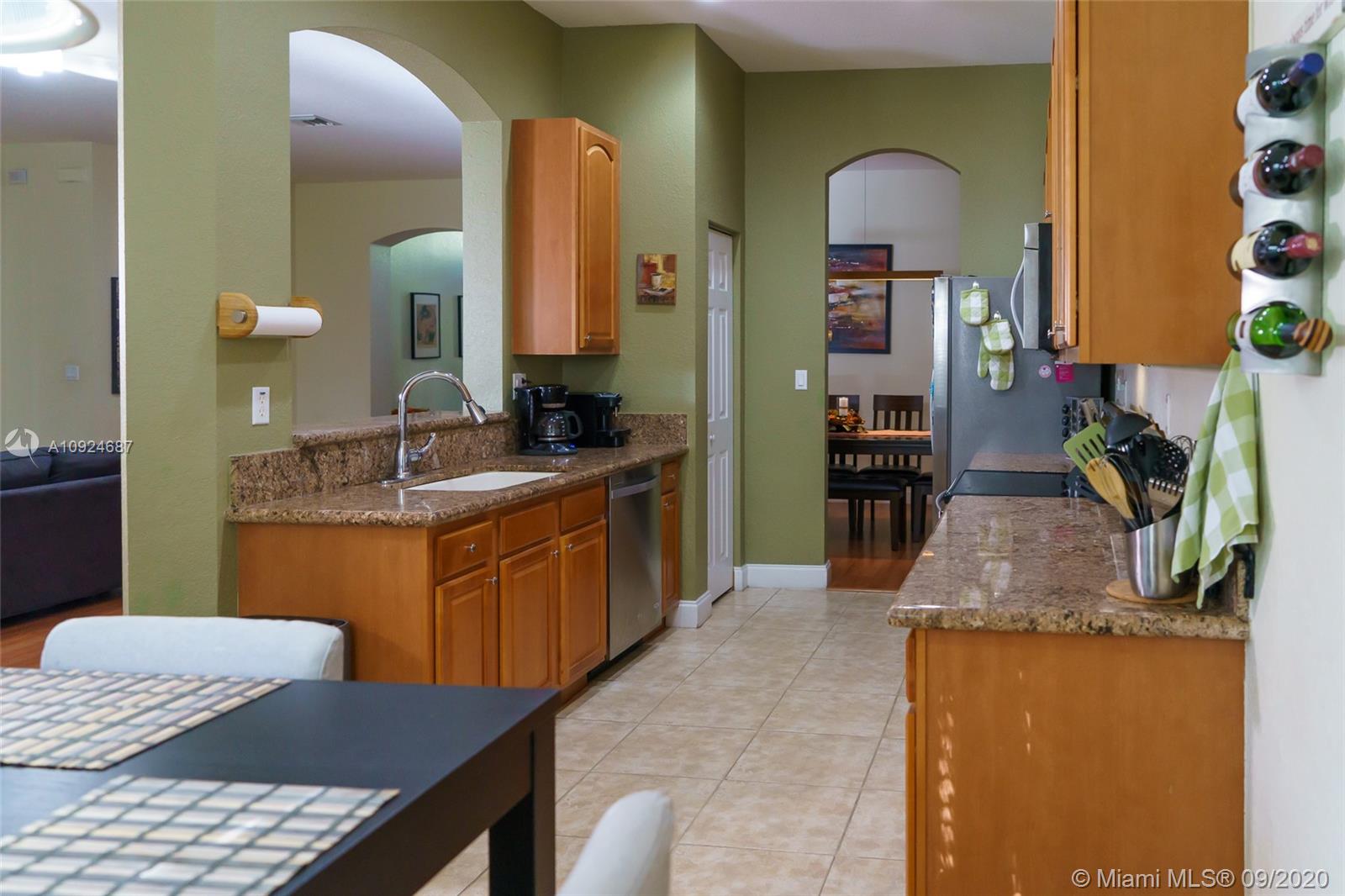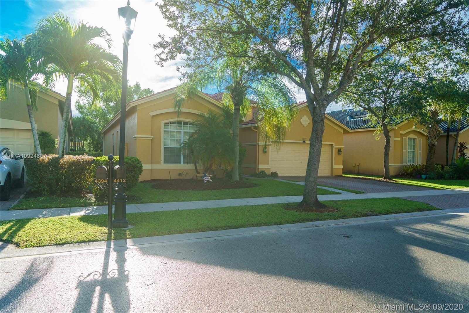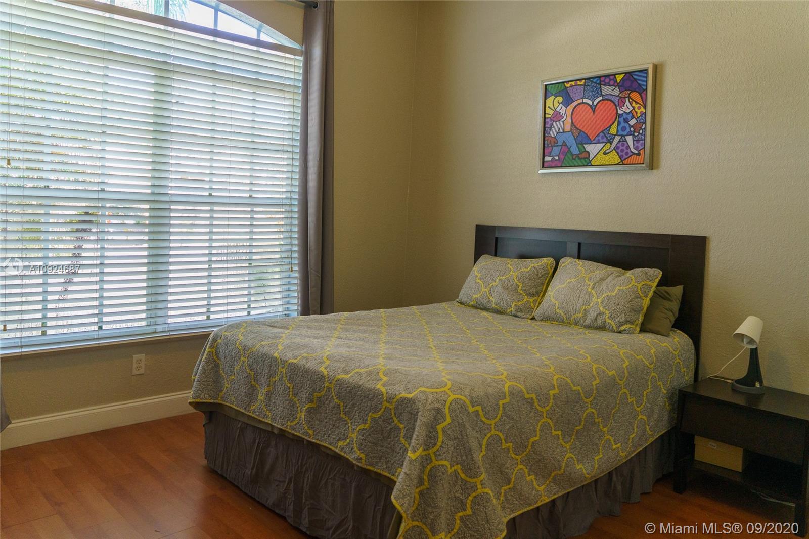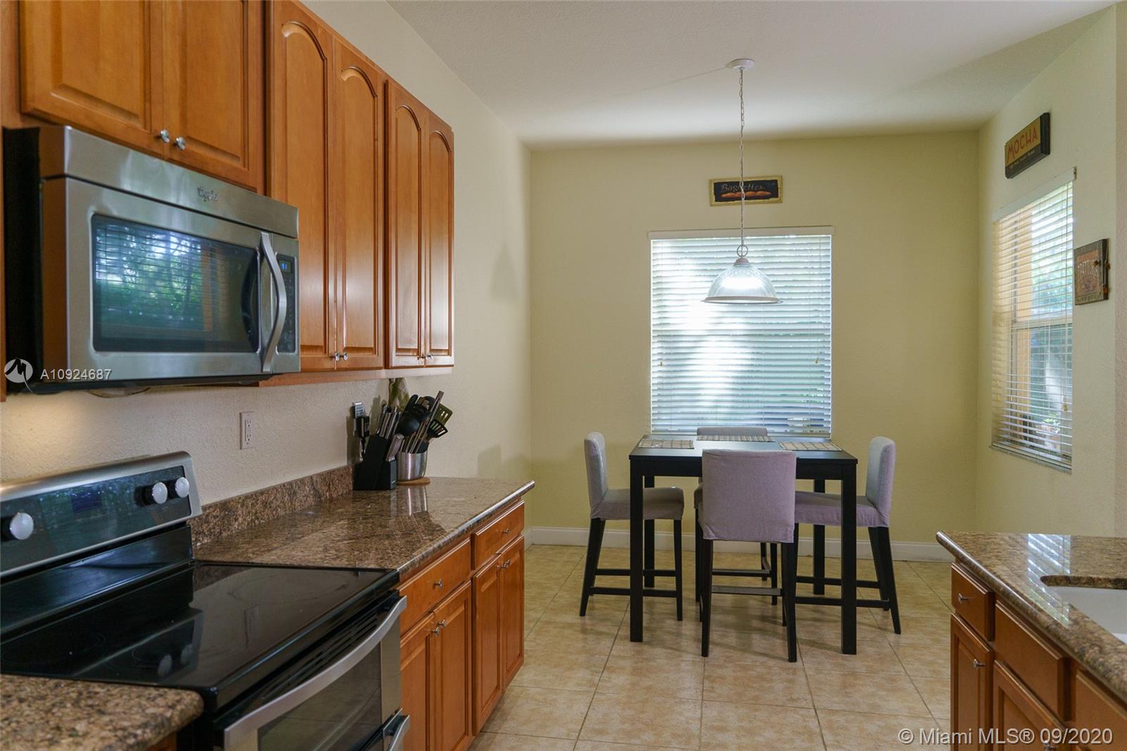 Gorgeous home with 3 Bedroom & 2 Bath with 2 car garage in the desired community Isles at Weston. Great layout. Spacious living and dining areas. Ceramic tile in the kitchen and bathrooms and wood laminate in all living areas. Stainless steel appliances with granite counters throughout the kitchen. Clubhouse with a community pool, playground, gym, and game room. "A" school rating. HOA includes cable, internet, alarm, and 24 hours, security guard. Seller to pay for the title and to choose the Title company.