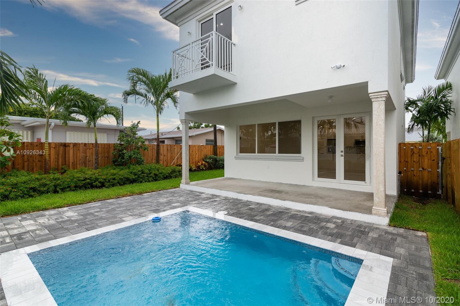 2020 New Construction East Hollywood Pool Home! MOVE IN READY NOW! Features 1,884 sqft Liv Area, 4 bedroom 3.5 bathroom with 1 car garage. Modern white with stainless steel features. Steel hand railed stairs. Expansive 24x48 porcelain tiled floors with soft bur-bur carpet in the rooms. Open kitchen has the latest modern appliances. Quartz counter tops in kitchen and bathroom. LED hi-hats light the entire house. Voluminous 10 ft ceilings. Master bedroom with 2 walk in closets and balcony overlooking the pool. A 2nd master bedroom with walk in closet and en-suite bath. All impact glass. French Doors lead to a covered patio, sparkling pool and fully fenced yard. Auto lawn sprinkler. Custom landscaping. Minutes to beach, downtown Hollywood and airport. 1 Year Warranty. Virtual tour available!