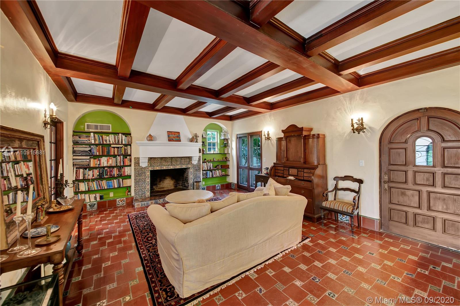 Prestigious La Gorce Golf Subdivision: 5455 Alton Road is a step back in time. 1931 Mediterranean Revival retreat exemplifies architectural integrity and updated conveniences. Walled, setback construction allows for quiet, tranquil lifestyle. 4 bedrooms +sunroom, 3 baths, plus 1/1 guest quarters. Home features vaulted ceilings, of pecky cypress w/ exposed beams, Fr doors,2 wood burning FPs & centrally placed staircase , wood floors w/mahogany inlays. Master suites on each level. Eat-in kitchen, w/ floor to ceiling cabinetry, central island, ice maker, stainless Viking double professional ovens, off kitchen laundry. Flagstone/brick patio w/ hedged, privacy fencing, overlooks golf course and gardens. Rich mature landscaping beckons one to the outdoors.